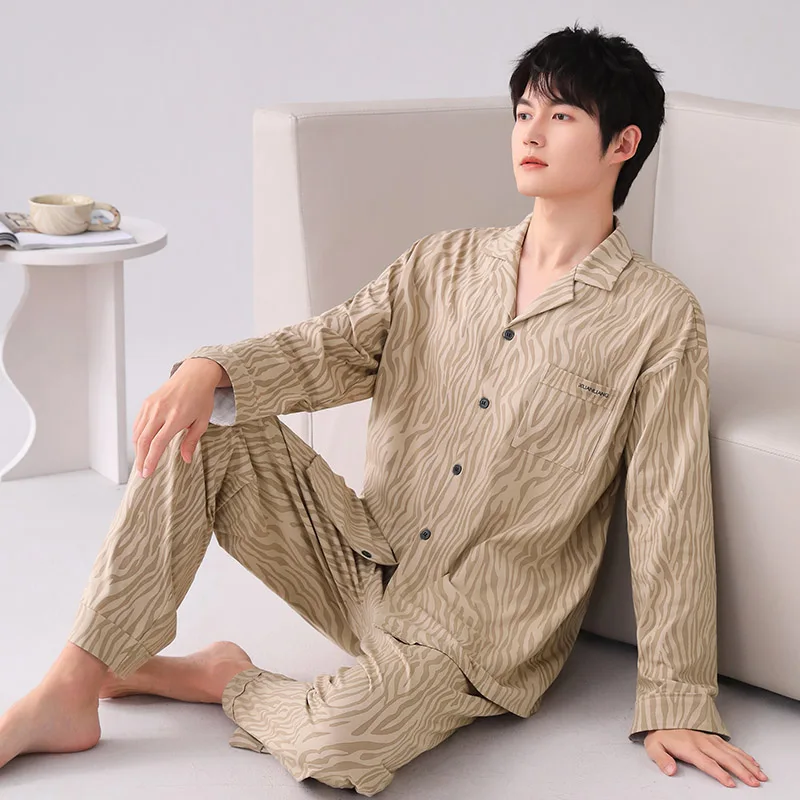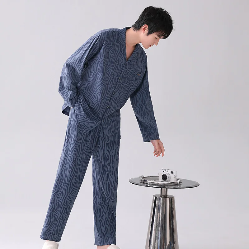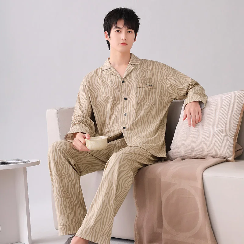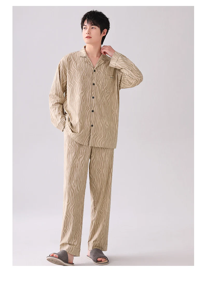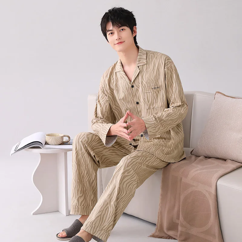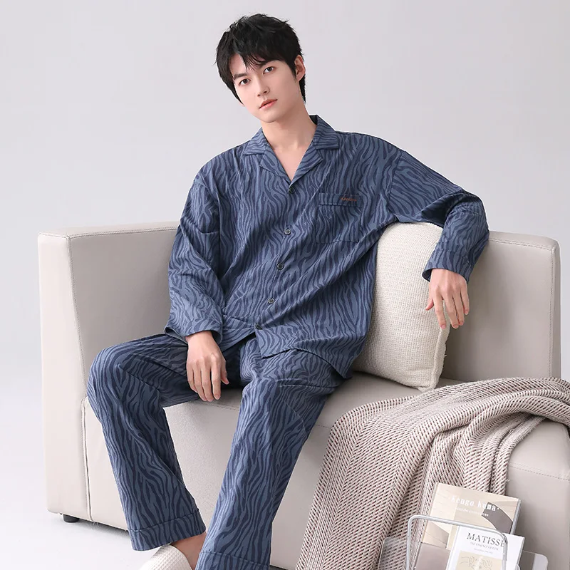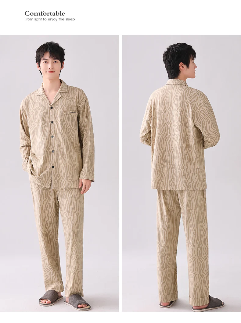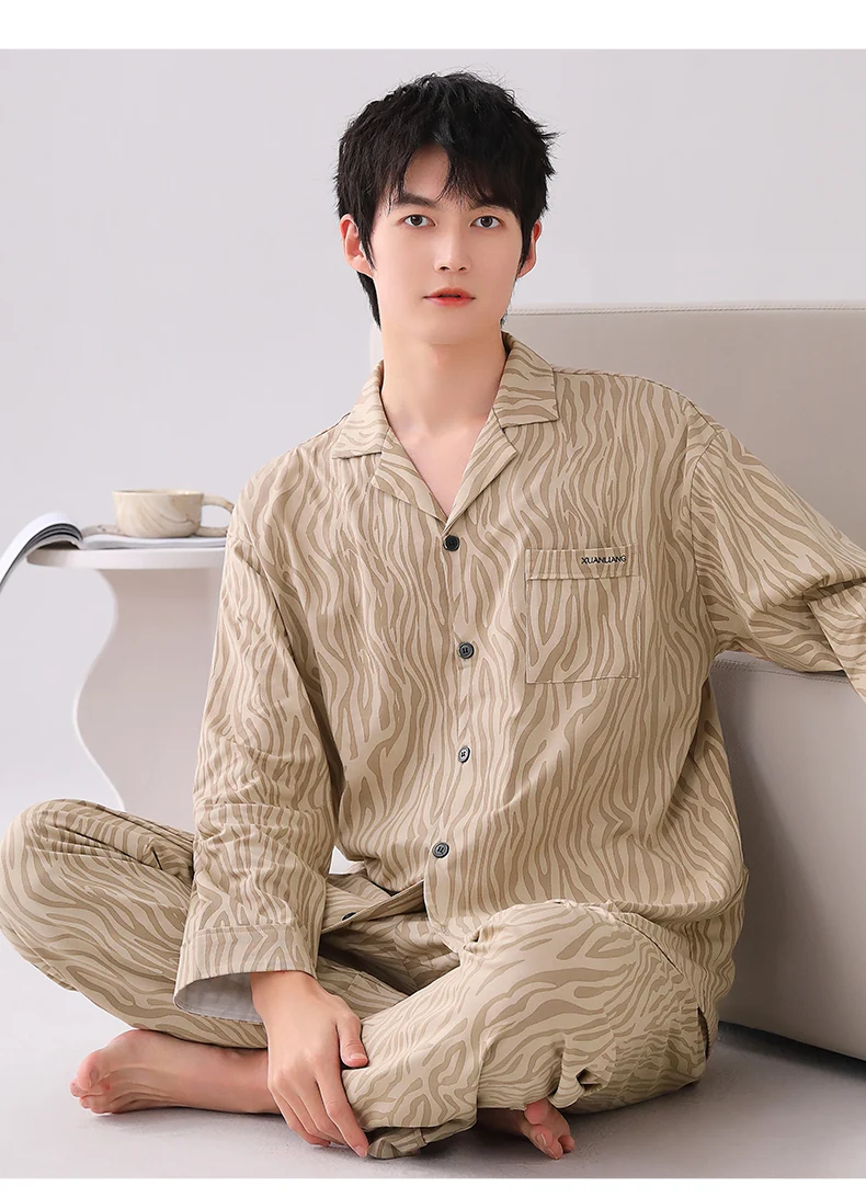 Men Pajamas Sets Cotton Pyjamas Male Button Cardigan Sleepwear Nightwear Long Sleeve Printed Casual Tracksuit Pijama Hombre