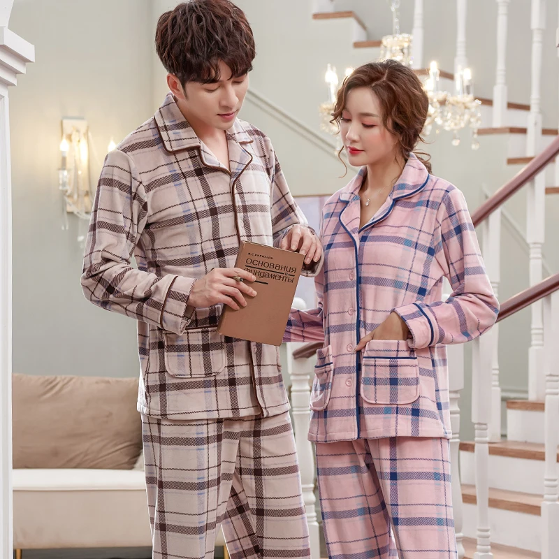 Men Pajamas Winter Island Velvet Pajama Set Big Yards 3XL Coral Fleece Casual Thick Homewear Warm Sleepwear Women Pijama Mujer