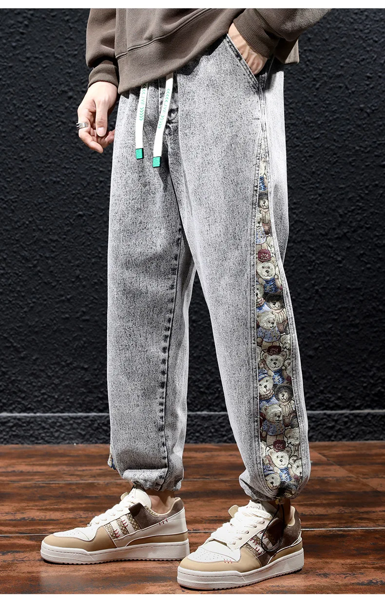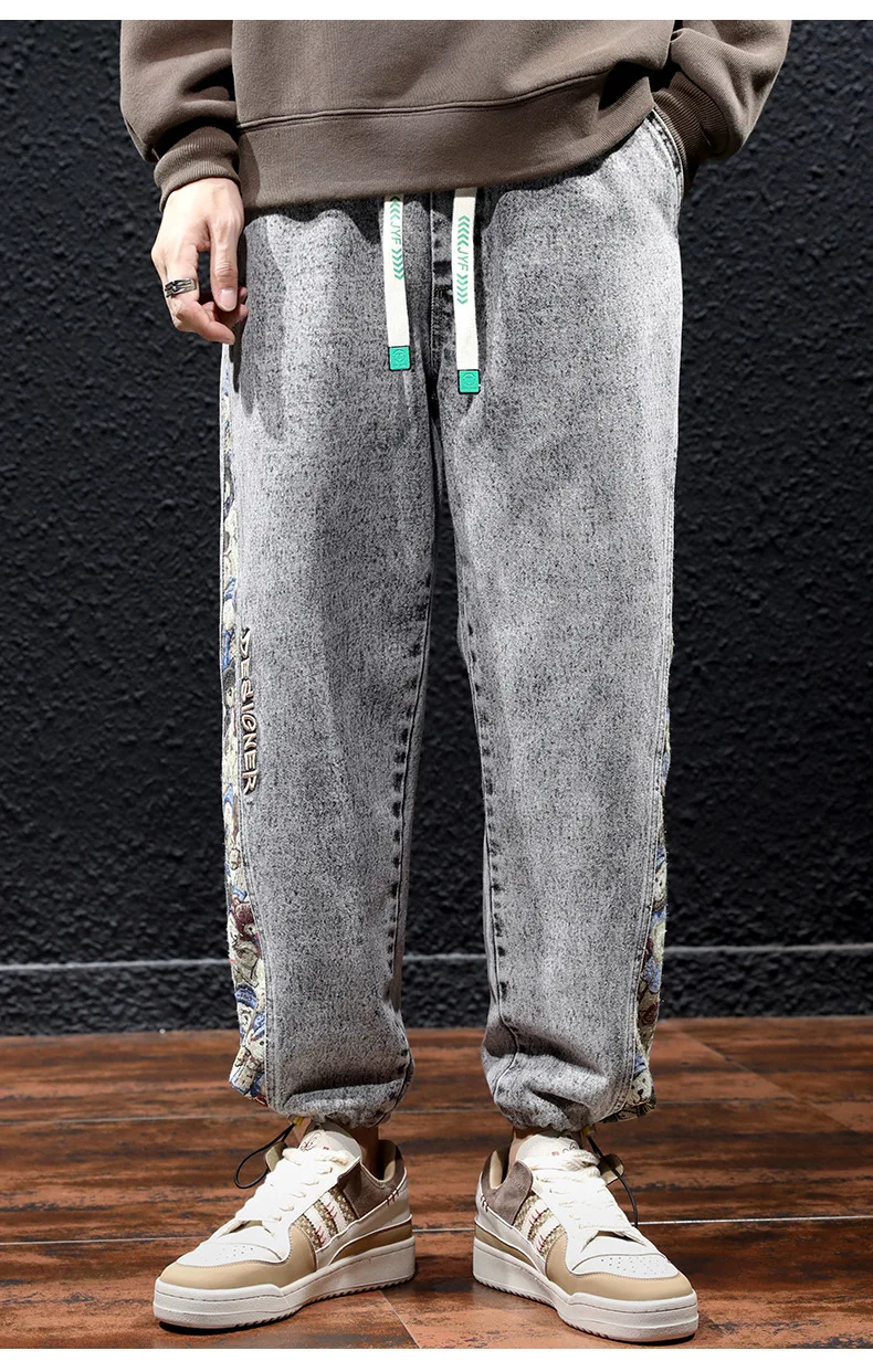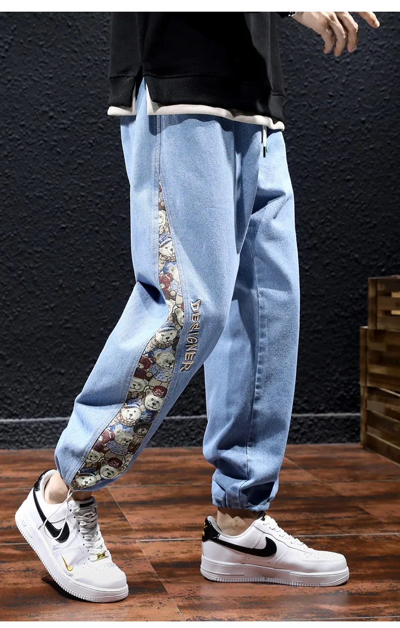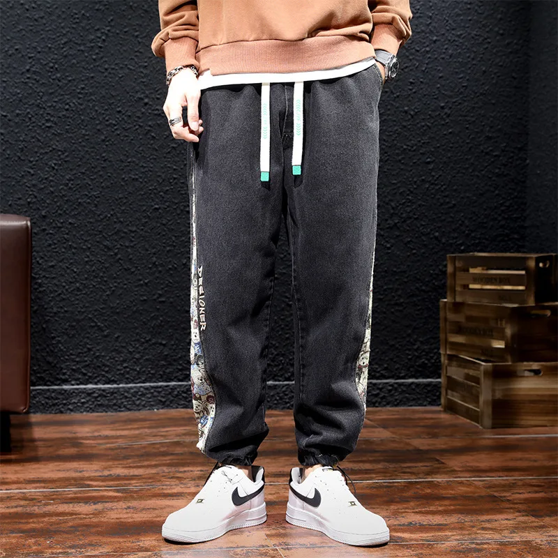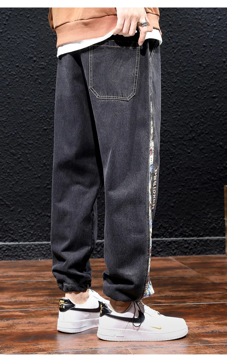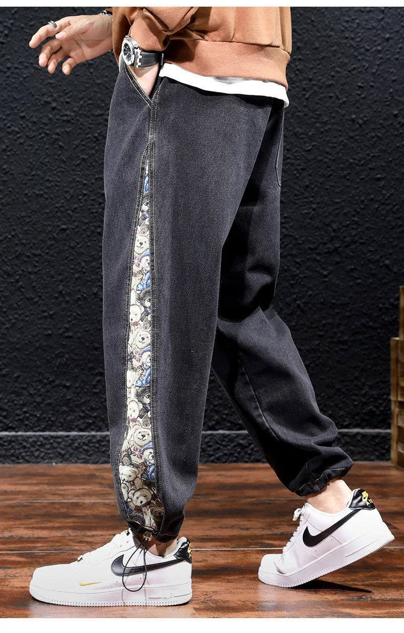 Men Plus Size 8XL Black Joggers Baggy Denim Pants Stretched Cotton Casual Thermal Jean Trousers