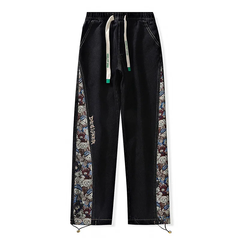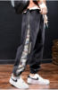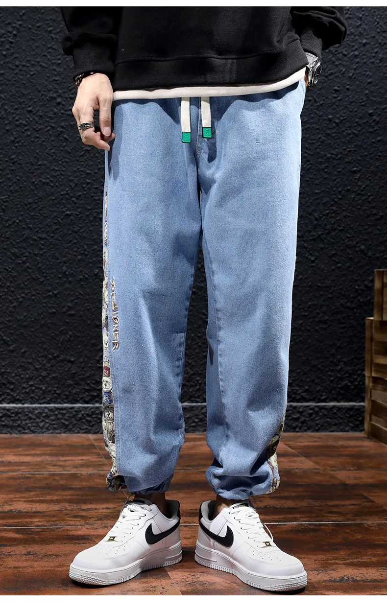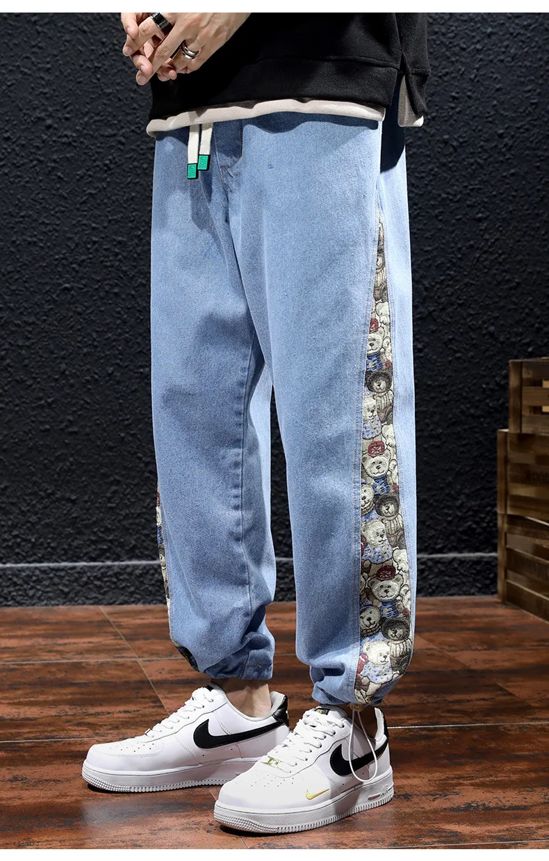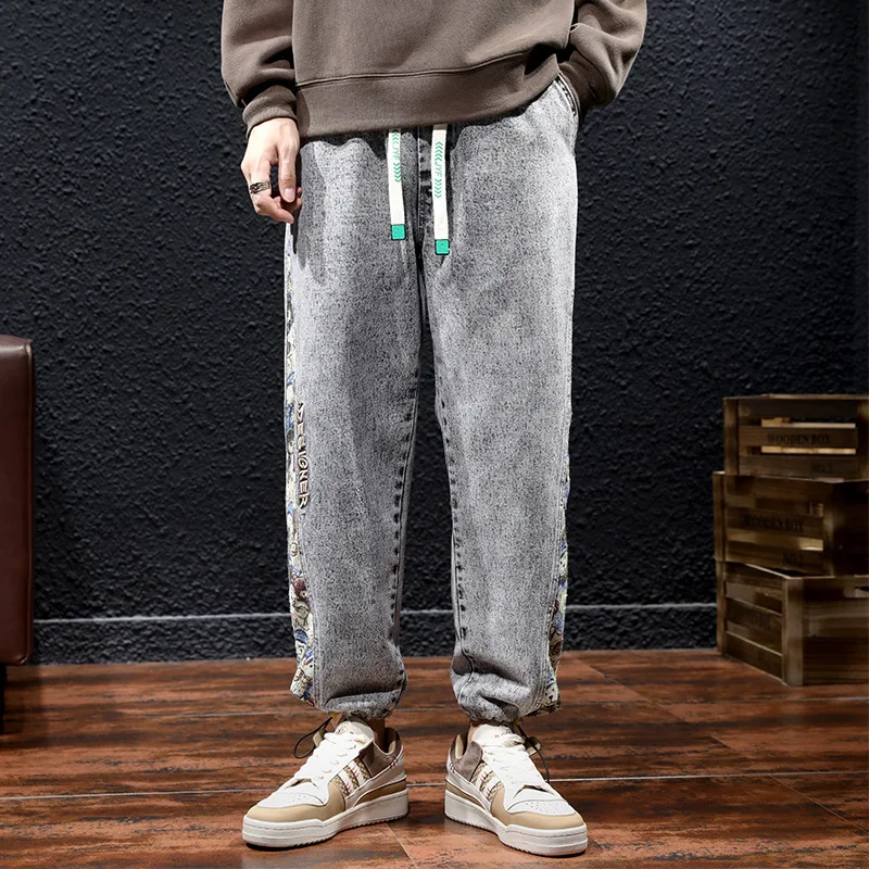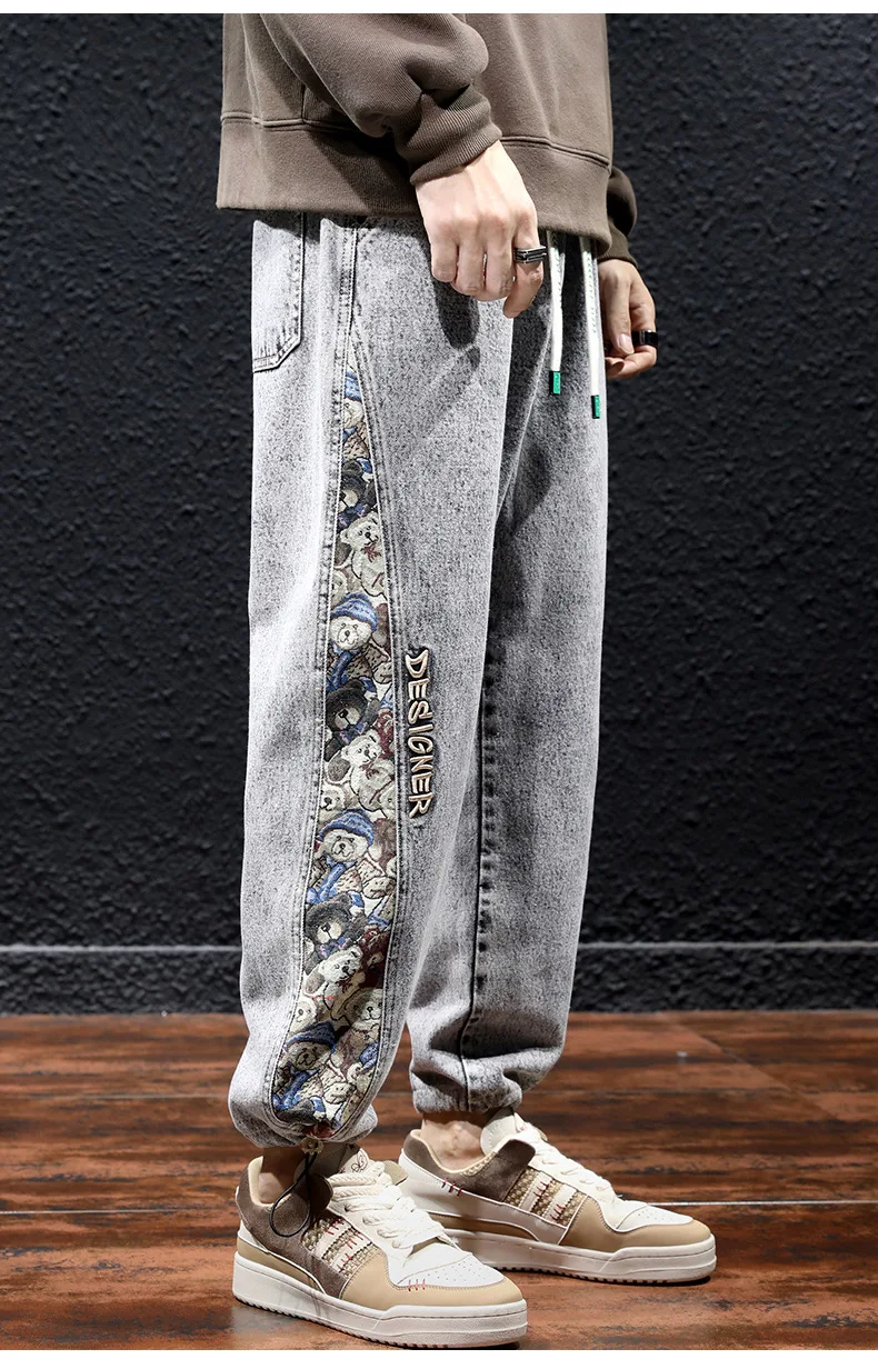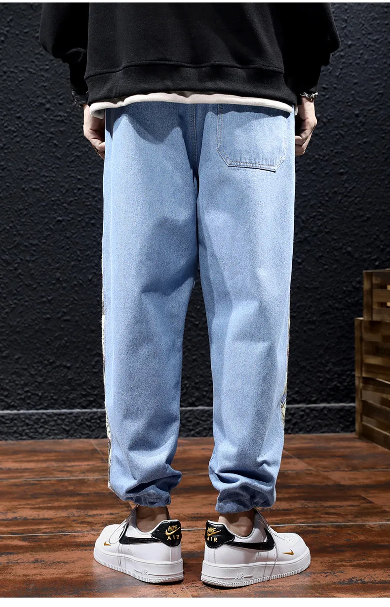 Men Plus Size 8XL Black Joggers Baggy Denim Pants Stretched Cotton Casual Thermal Jean Trousers