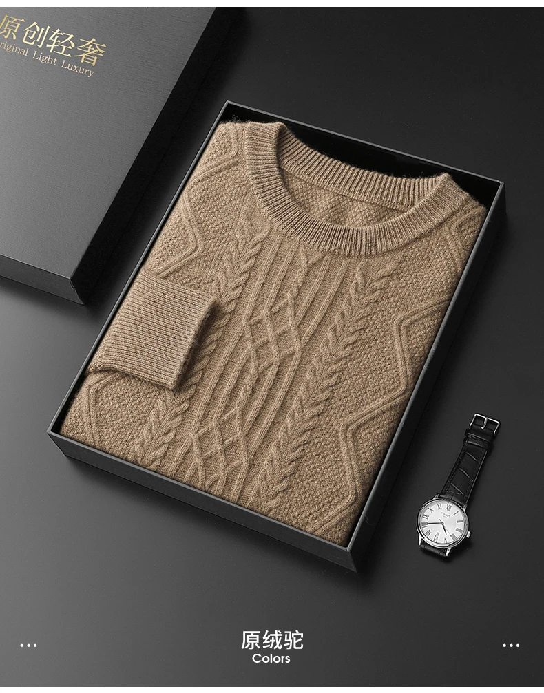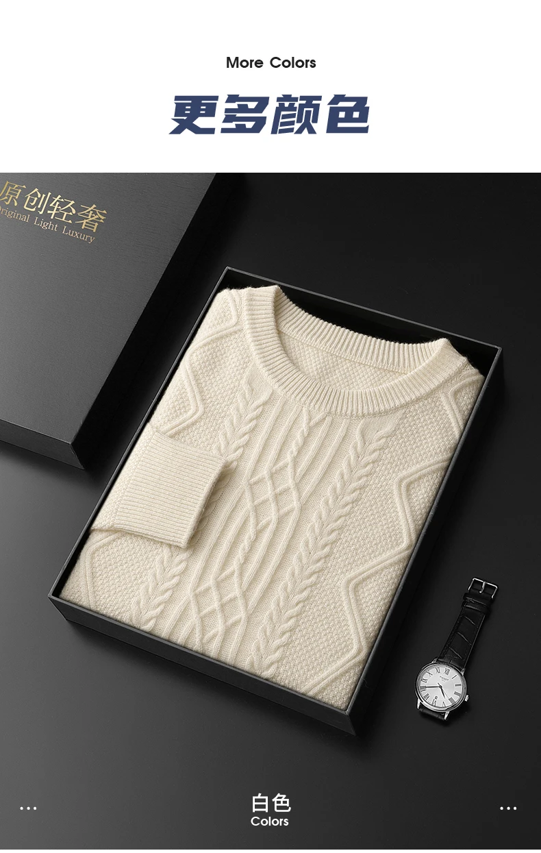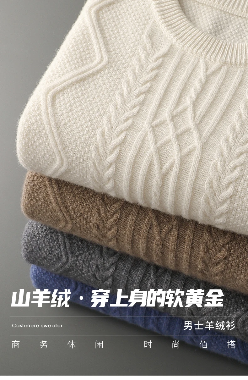 Men Pullovers 100% Cashmere Sweaters High Stretch Knitted Soft Warm 2023 Winter Male Fashion Loose Casual Tops DX01