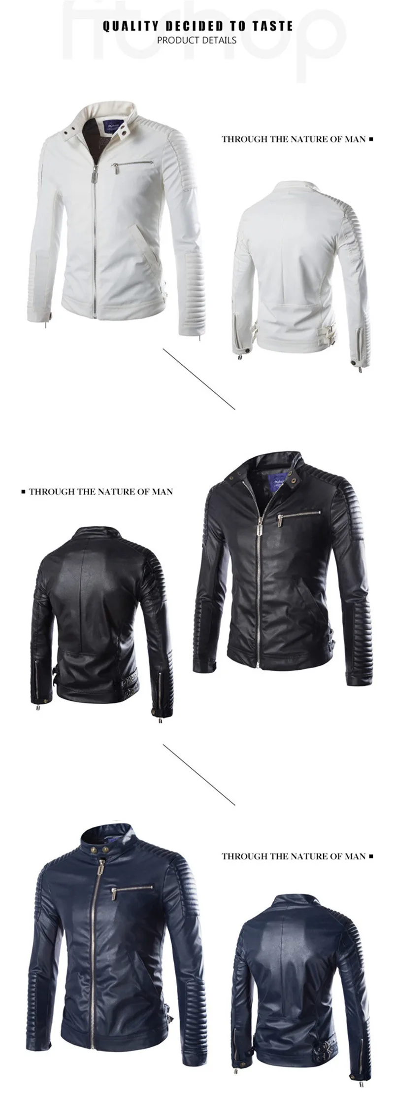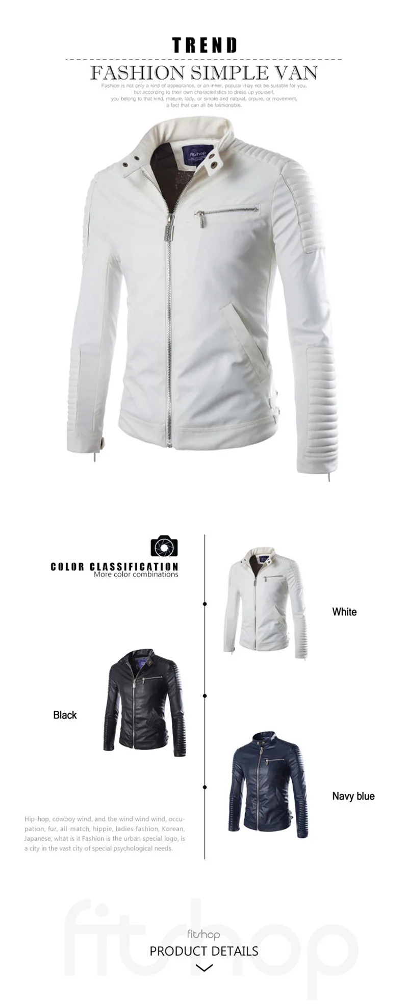 Men Punk Vintage Style Rock & Roll Casual Leather Jackets Coat Men Spring Design Motorcycle Biker Rivet White PU Leather Jackets