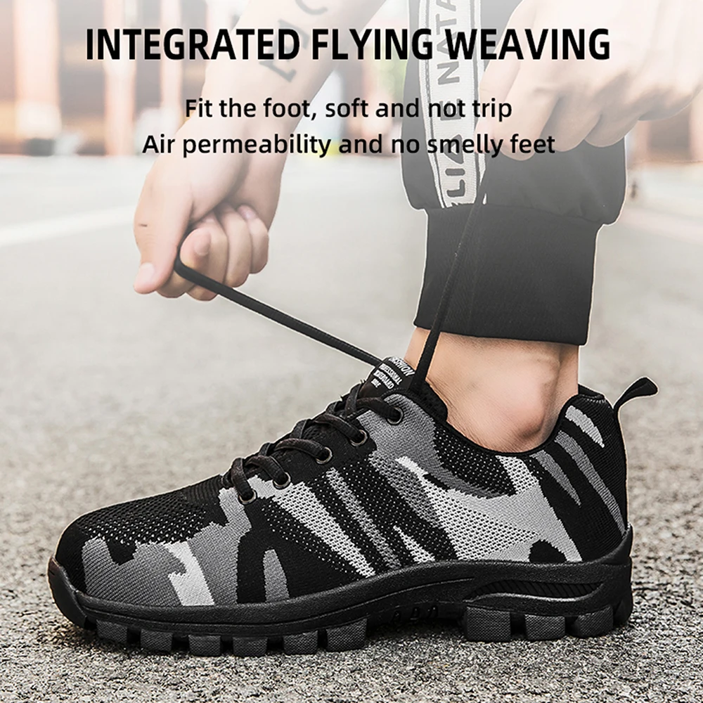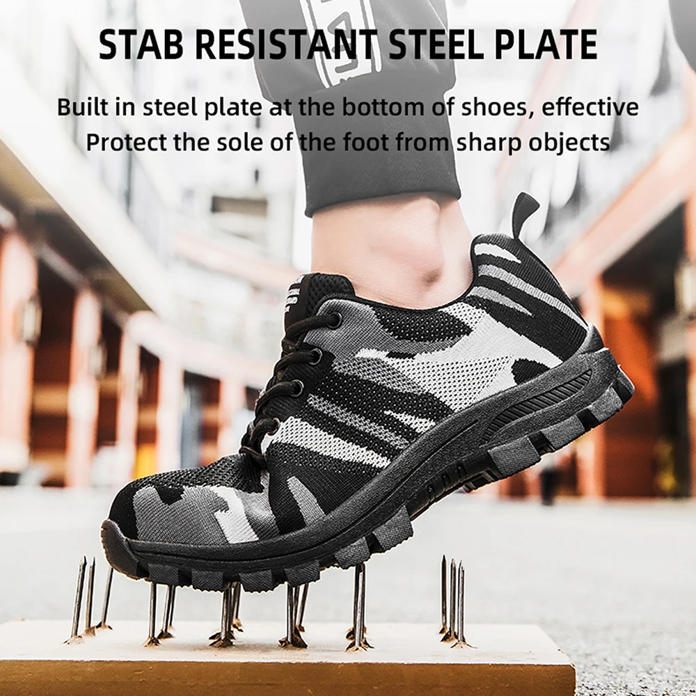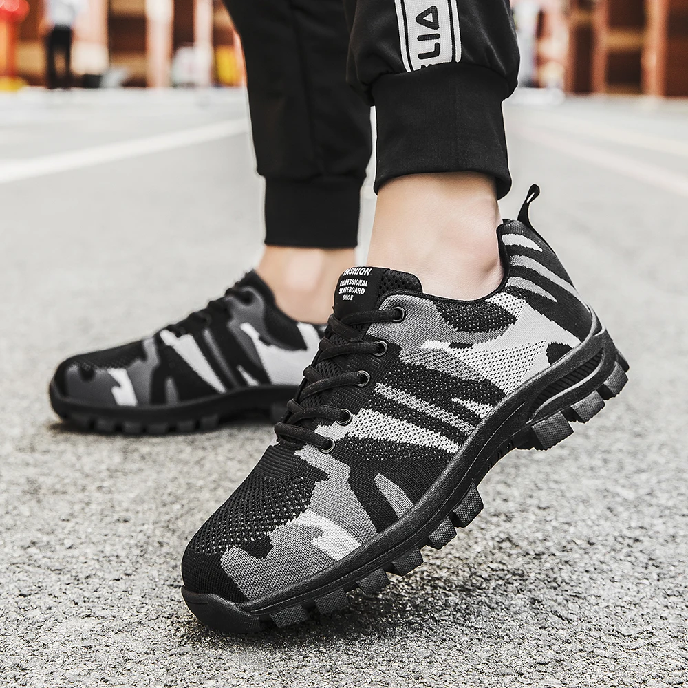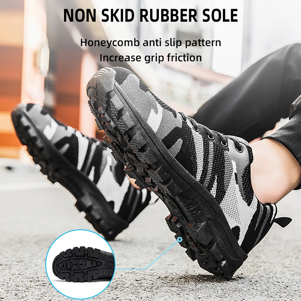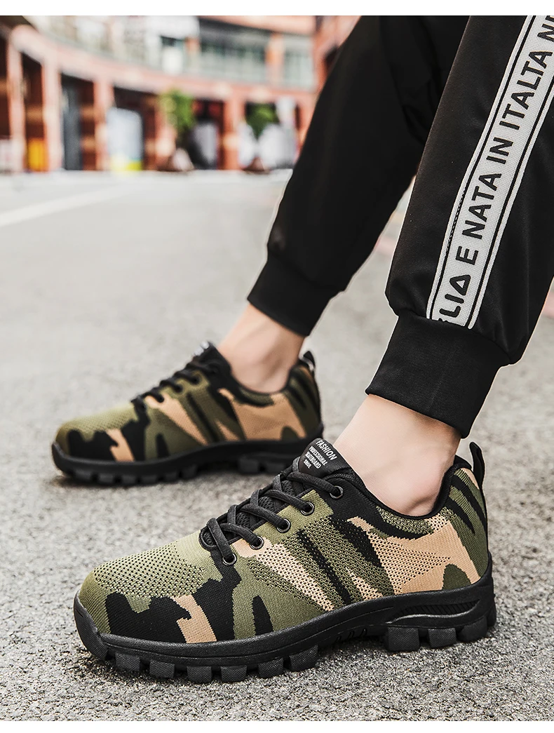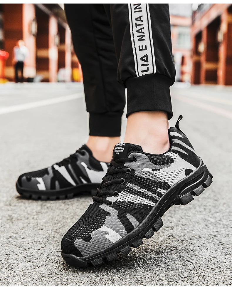 Men Safety Shoes Men Women Steel Toe Boots Indestructible Work Shoes Breathable Camouflage work Composite Toe Men EUR Size 39-46