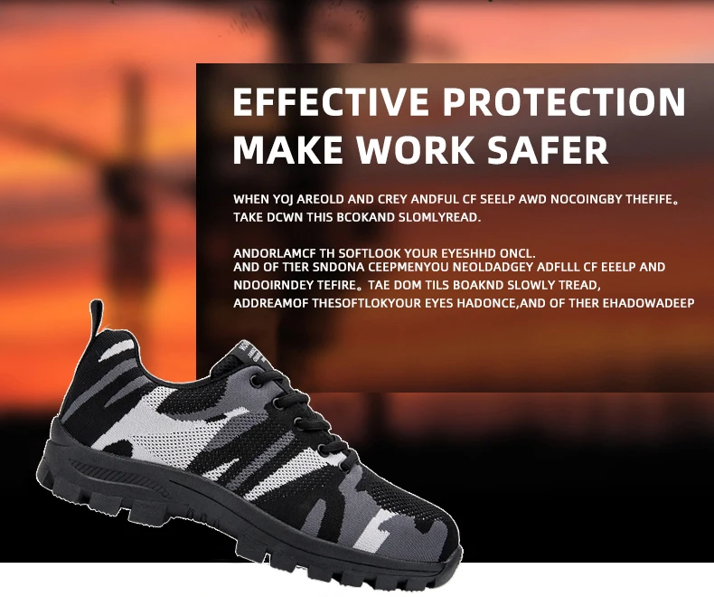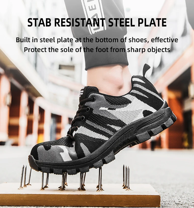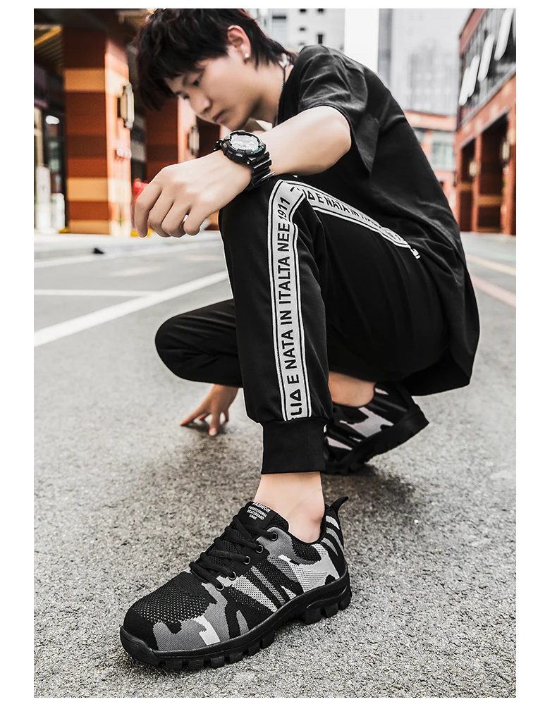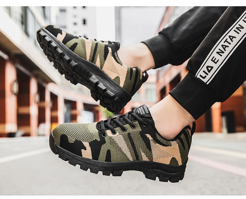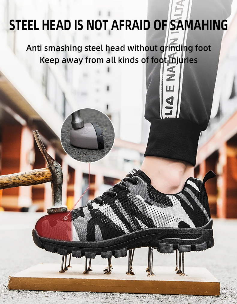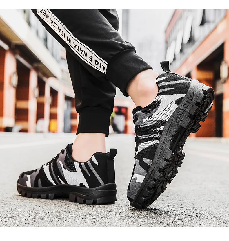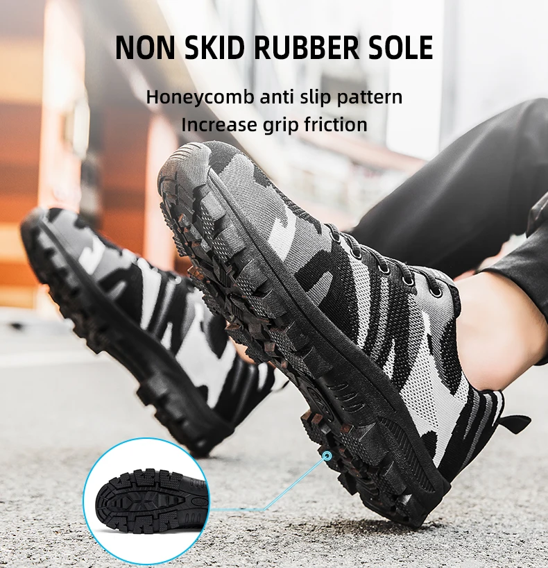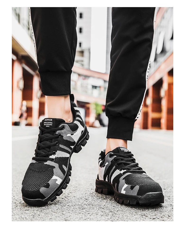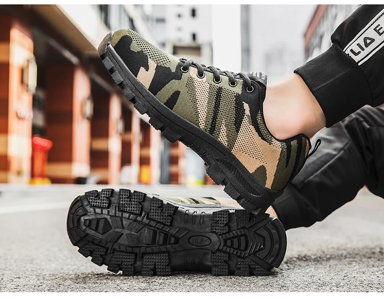 Men Safety Shoes Men Women Steel Toe Boots Indestructible Work Shoes Breathable Camouflage work Composite Toe Men EUR Size 39-46