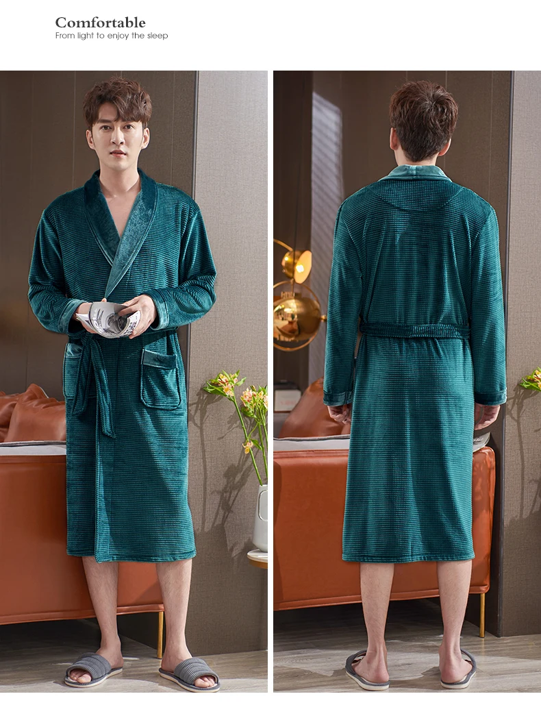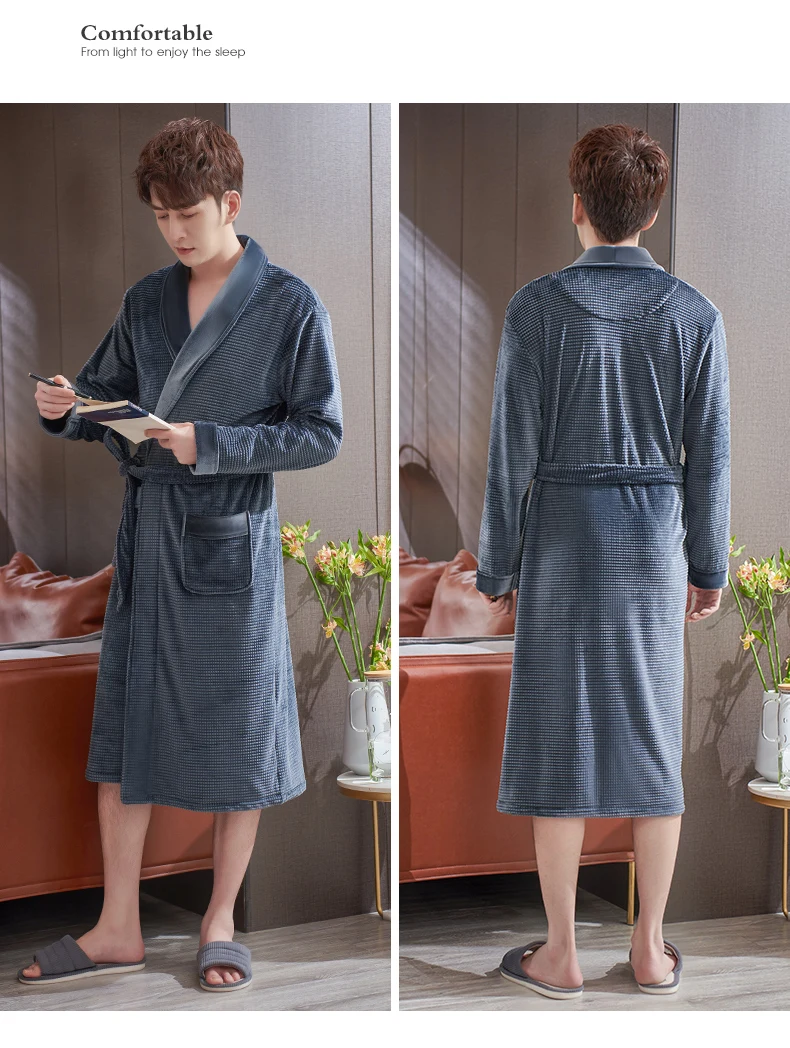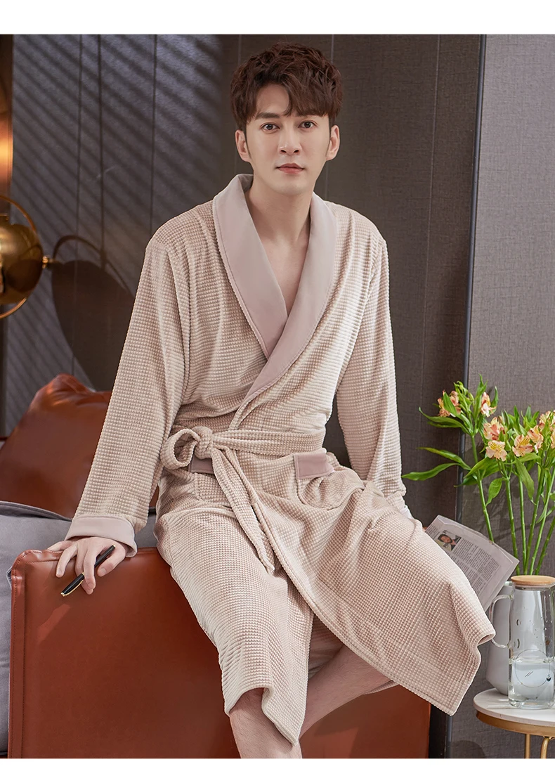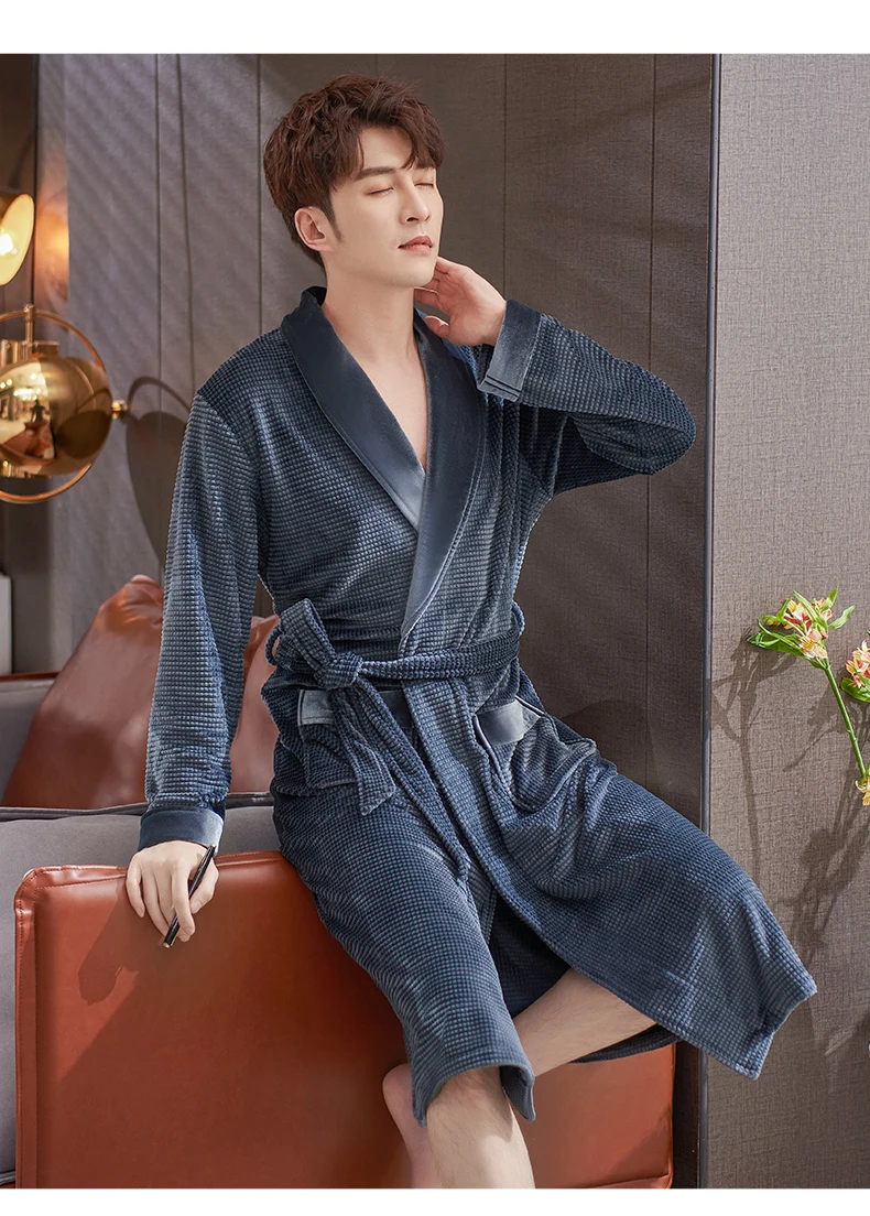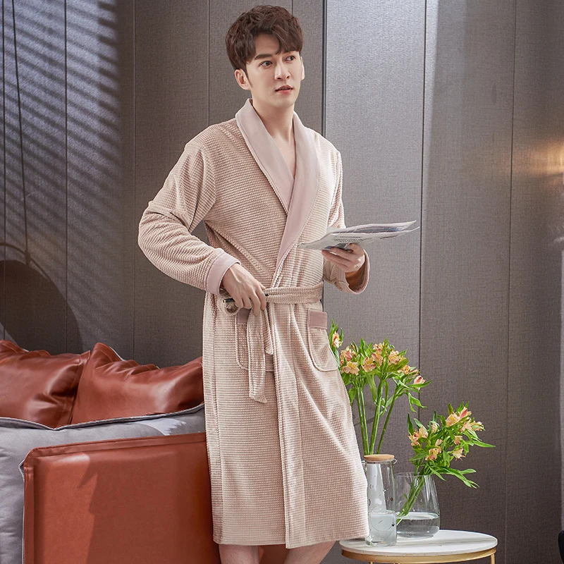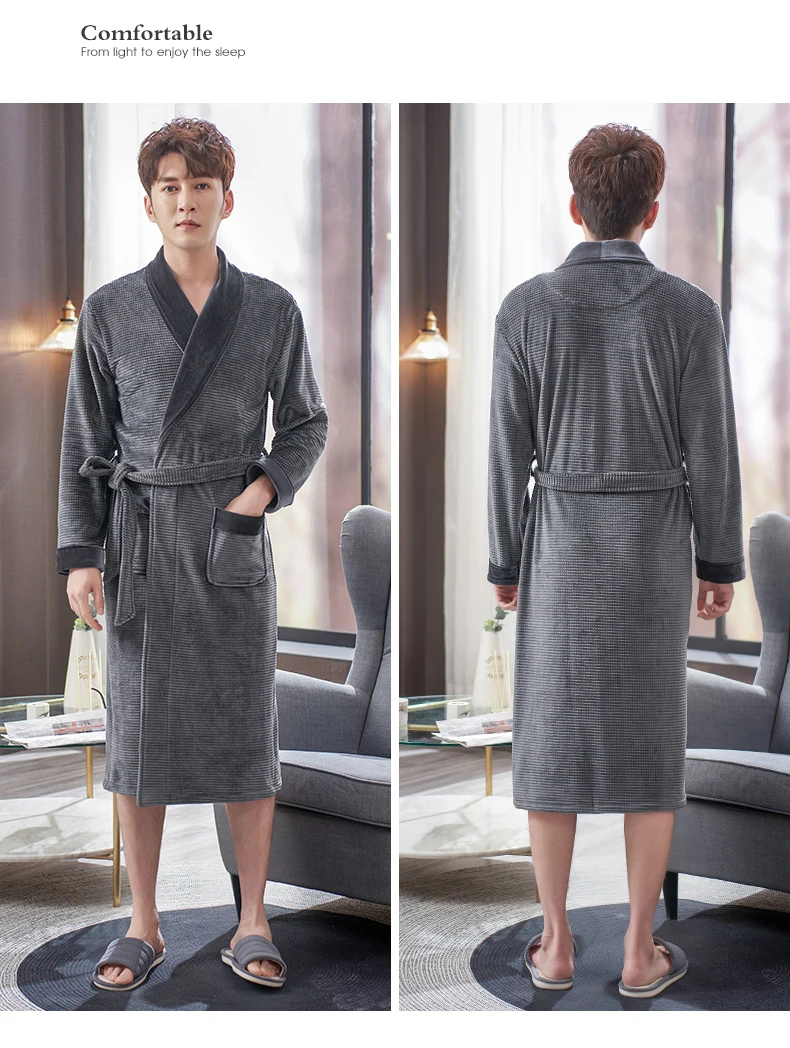 Men Sleepwear Robes Winter Flannel Thicken Terry Male Long Sleeve Kimono Warm Island Fleece Bathrobe Home Wear Peignoir Men Robe