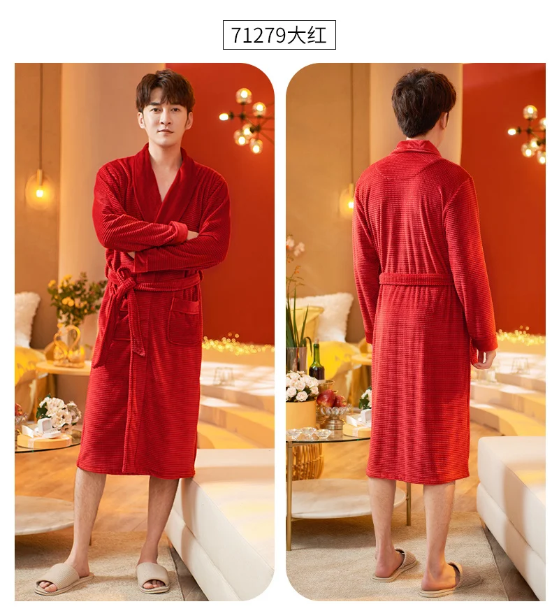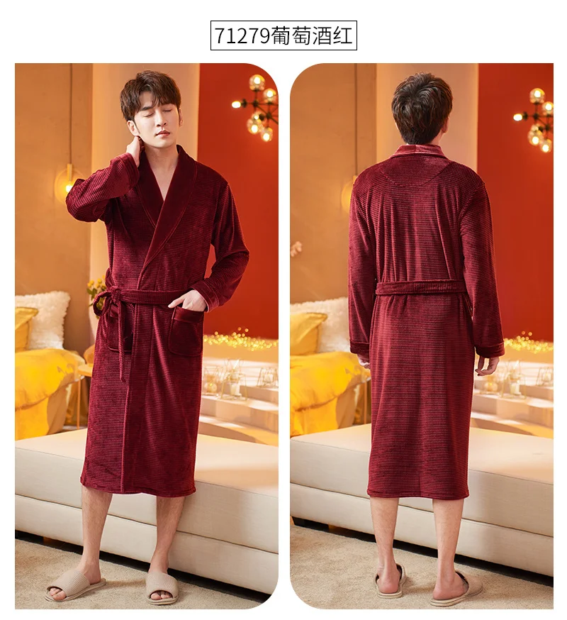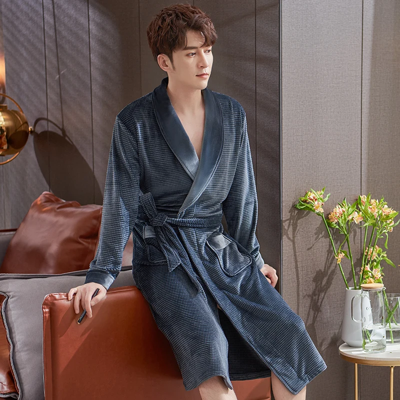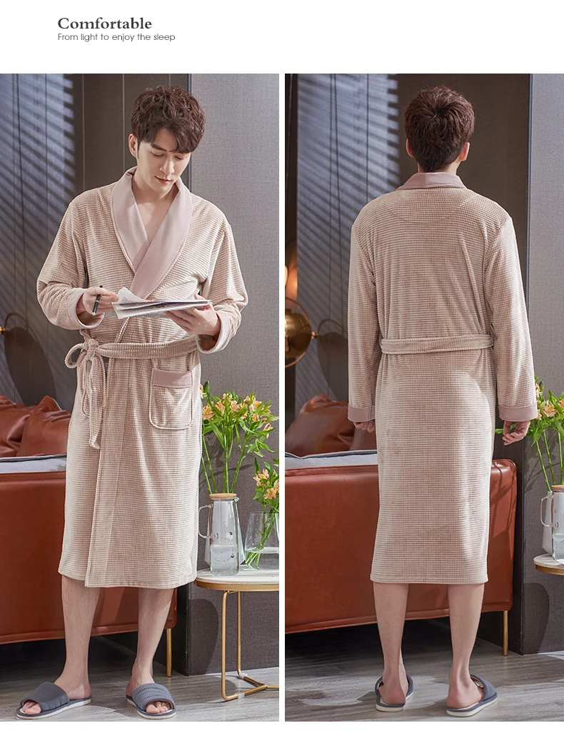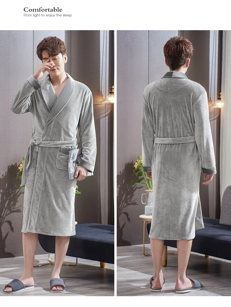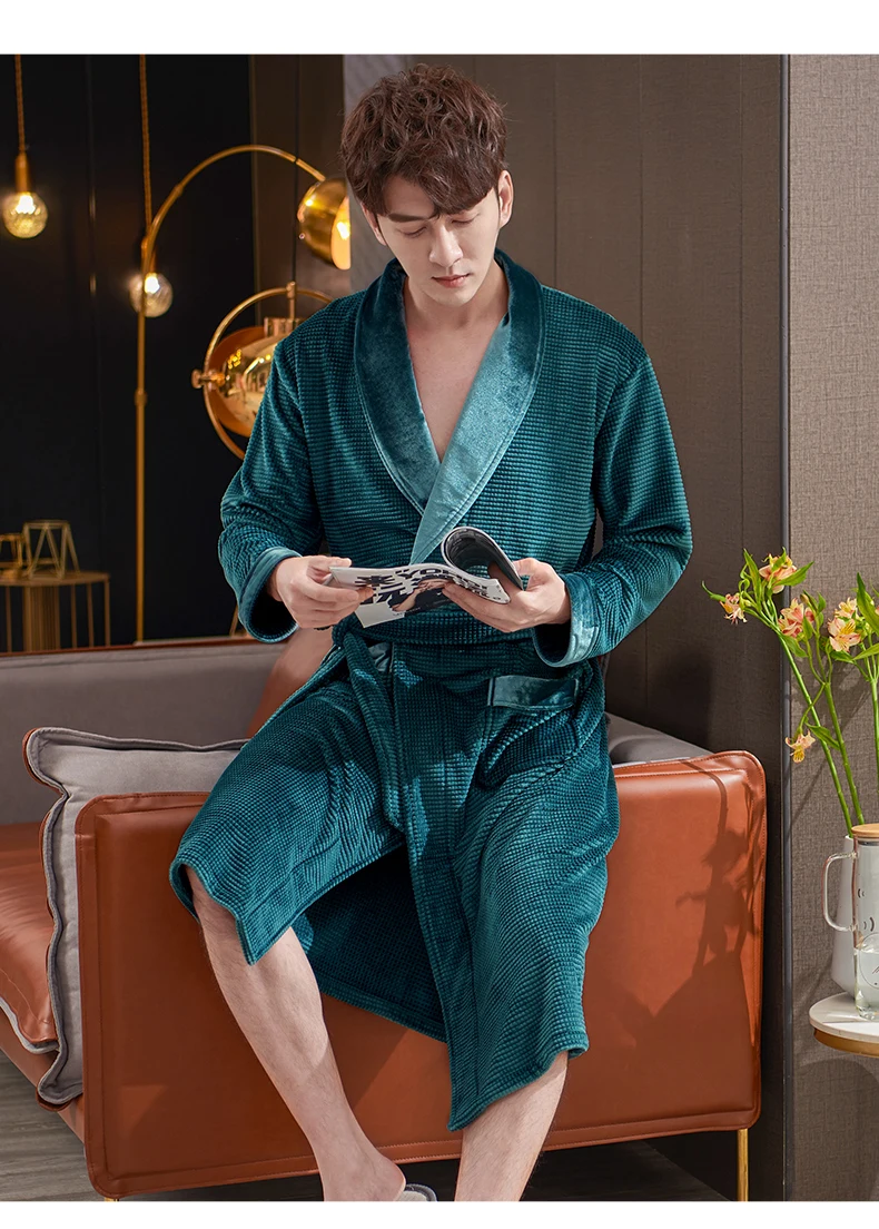 Men Sleepwear Robes Winter Flannel Thicken Terry Male Long Sleeve Kimono Warm Island Fleece Bathrobe Home Wear Peignoir Men Robe