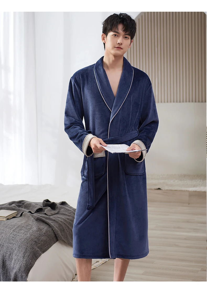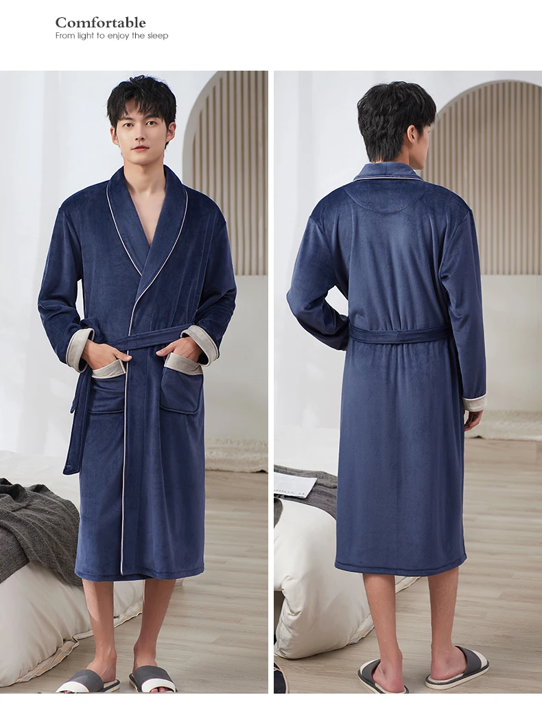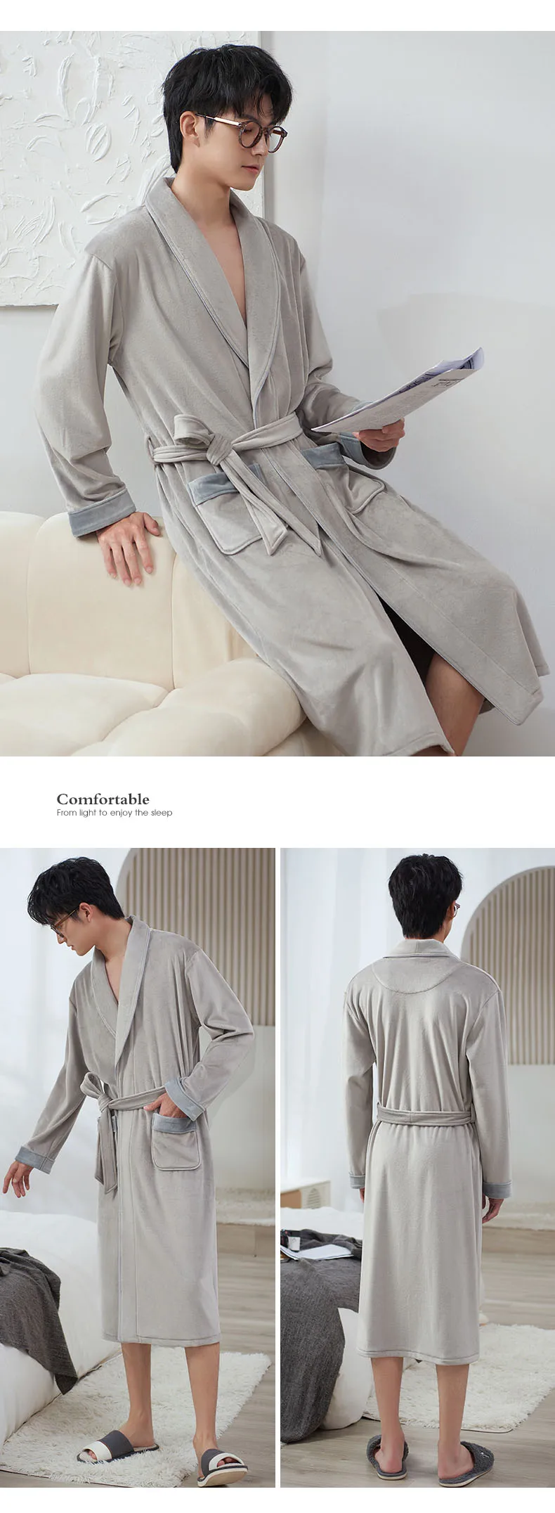 Men Sleepwear Robes Winter Island Velvet Thicken Terry Robe Male Long Sleeve Kimono Warm Bathrobe Home Wear Peignoir Men Robe