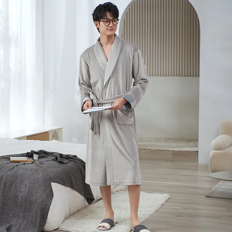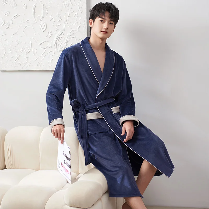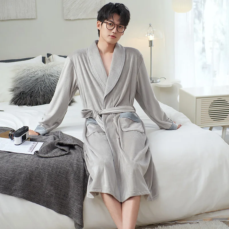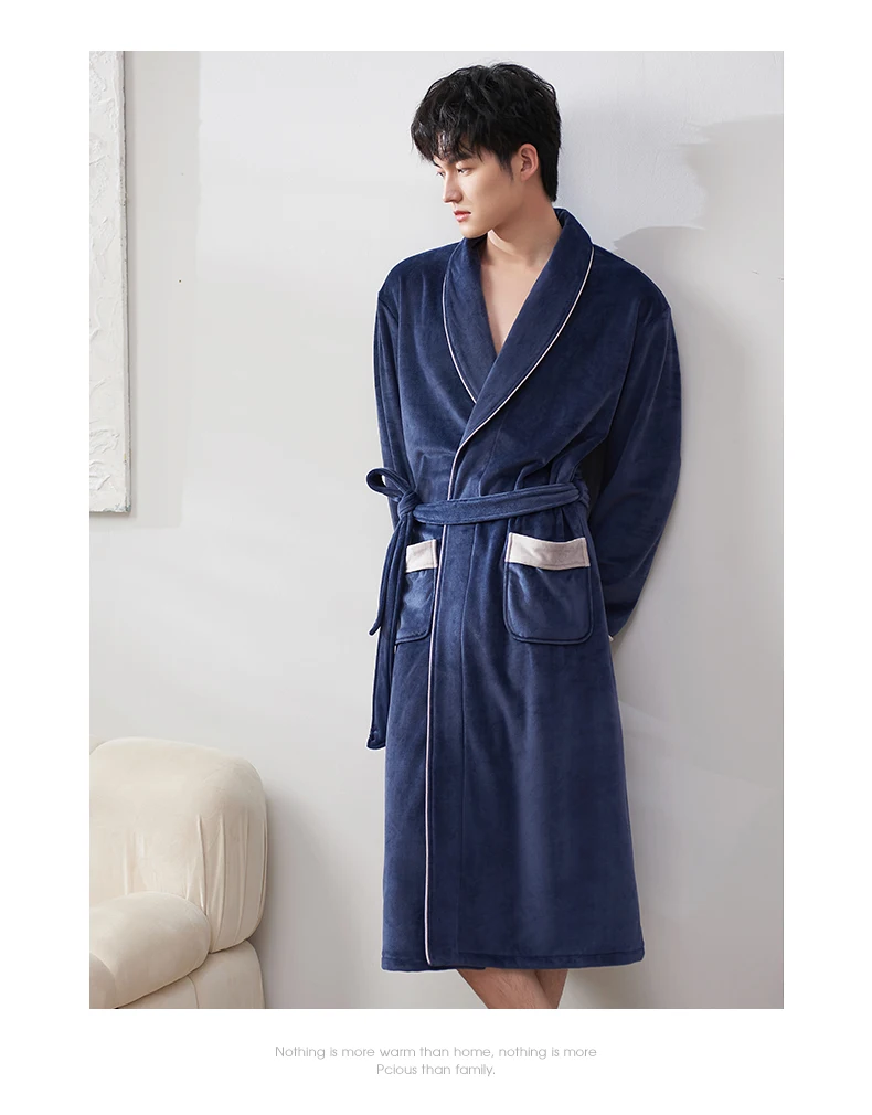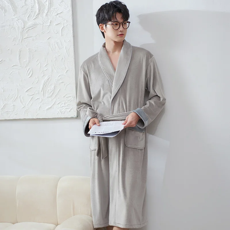 Men Sleepwear Robes Winter Island Velvet Thicken Terry Robe Male Long Sleeve Kimono Warm Bathrobe Home Wear Peignoir Men Robe