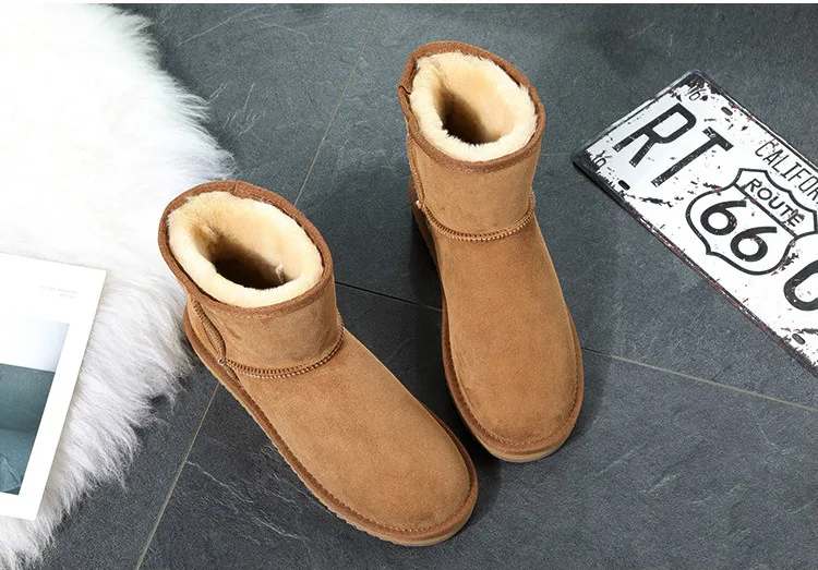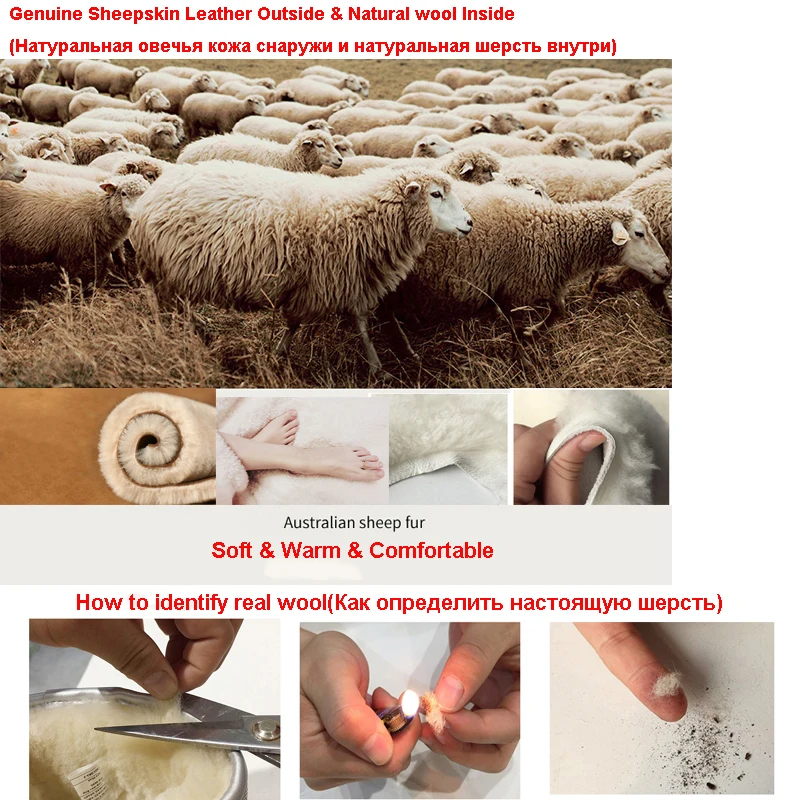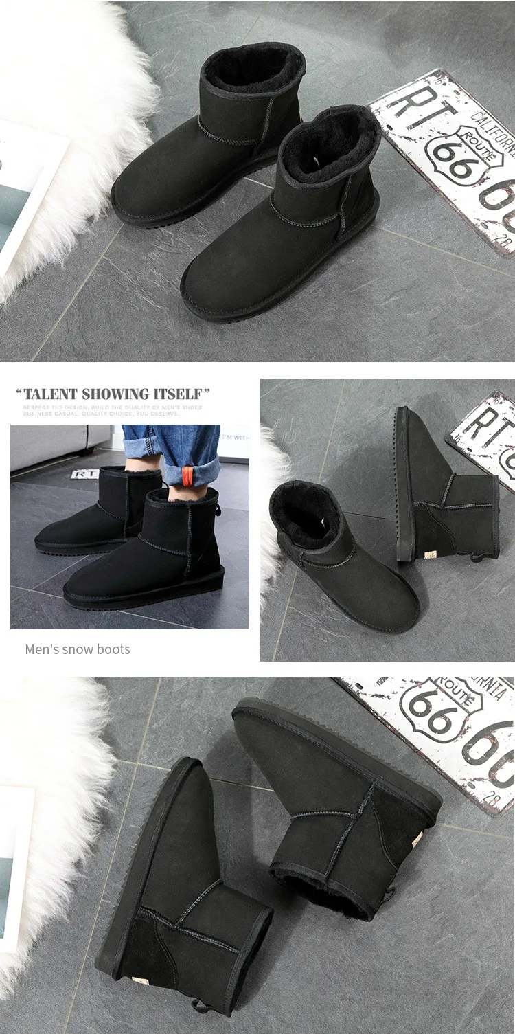 Men Snow Boots Classic Fashion Ankle Boots Warm Natural Fur Man’s Boots Shoes Genuine Sheepskin Leather Winter Warm Wool Shoes