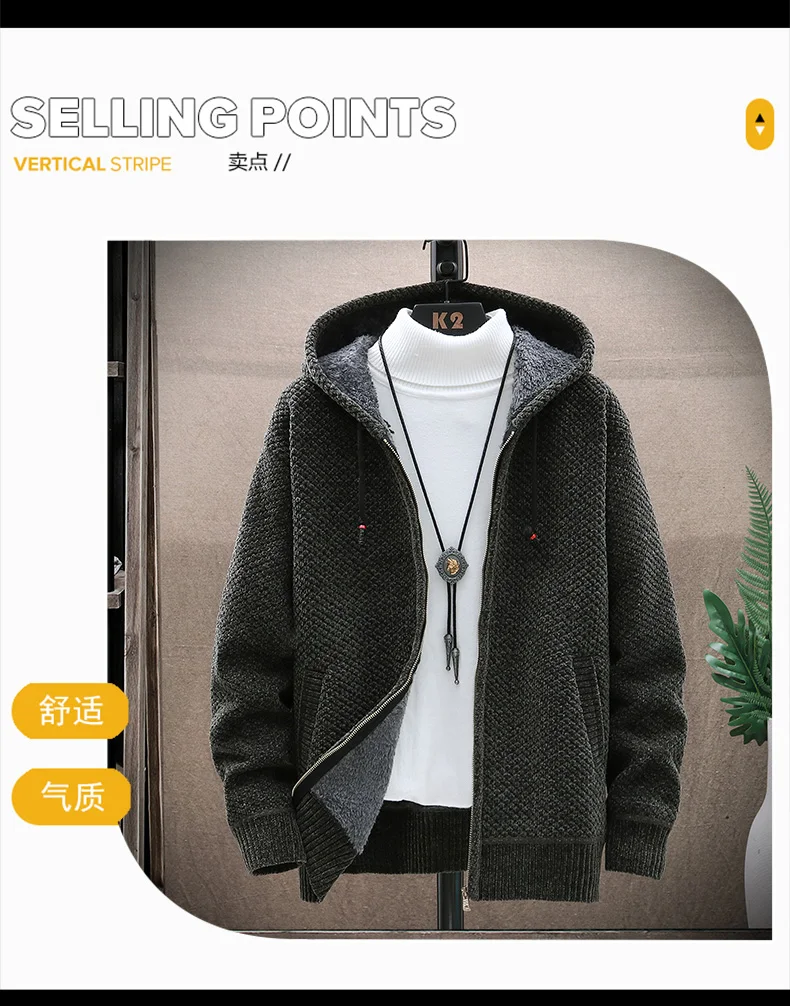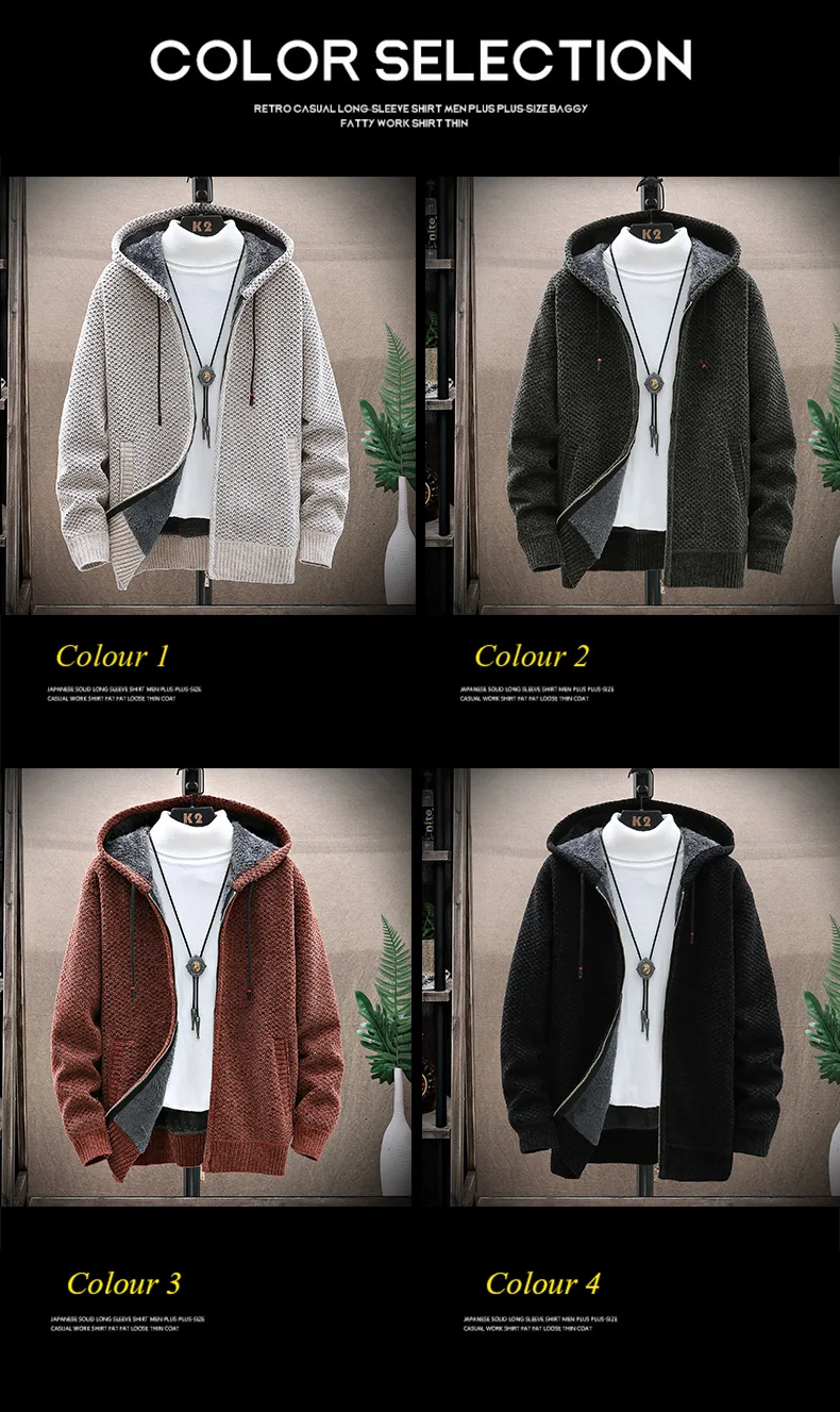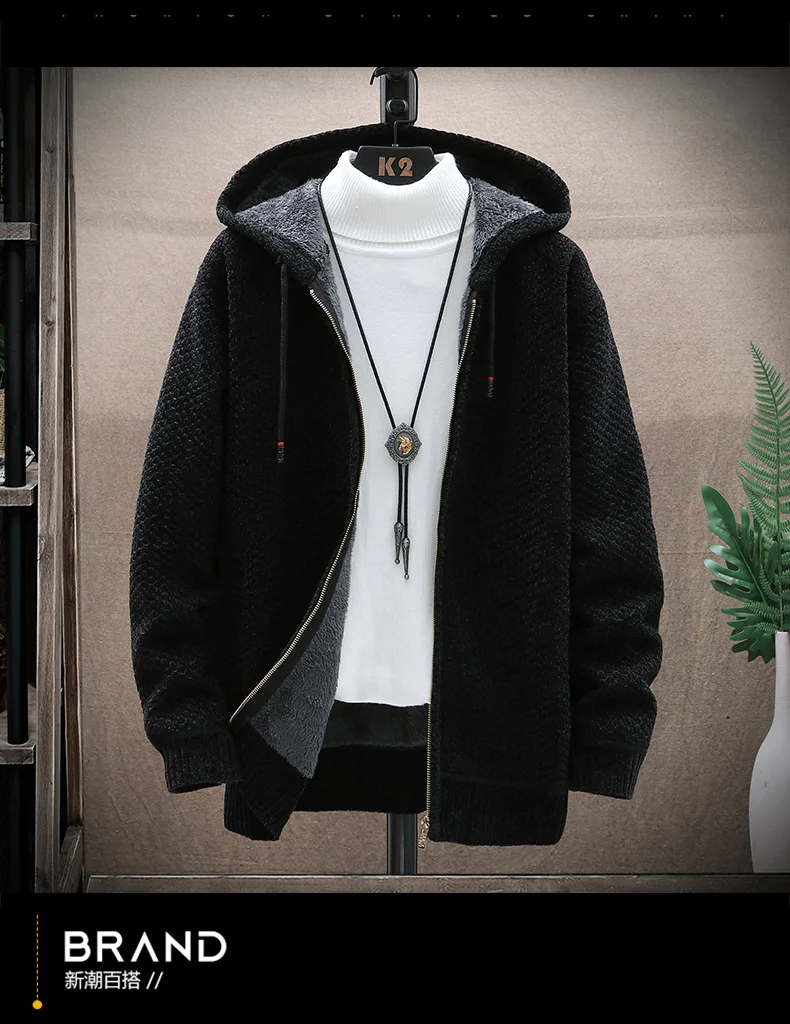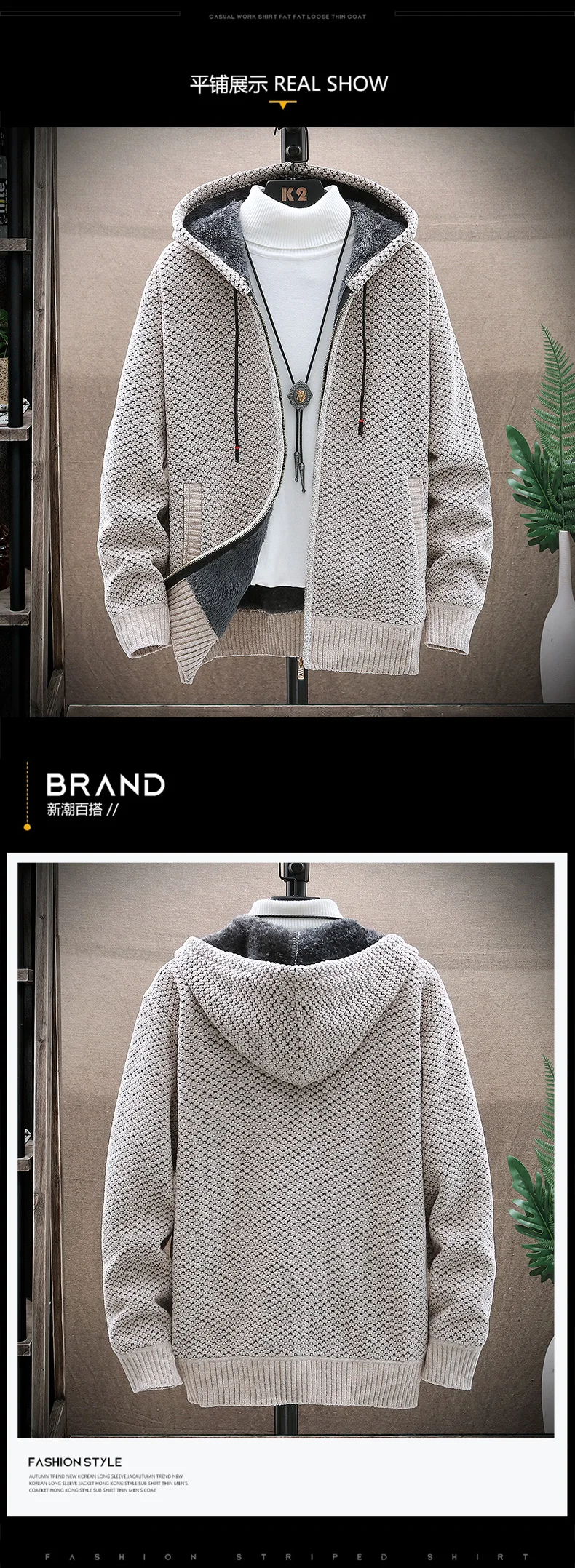 Men Soild Color Cardigan Men Hooded Casual Sweater Outwear Autumn Winter Male Fleece Warm Sweatercoats M-3XL