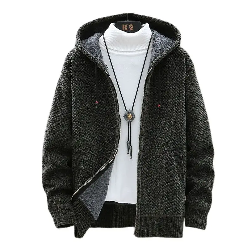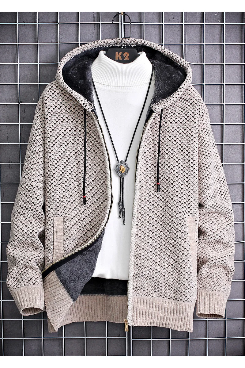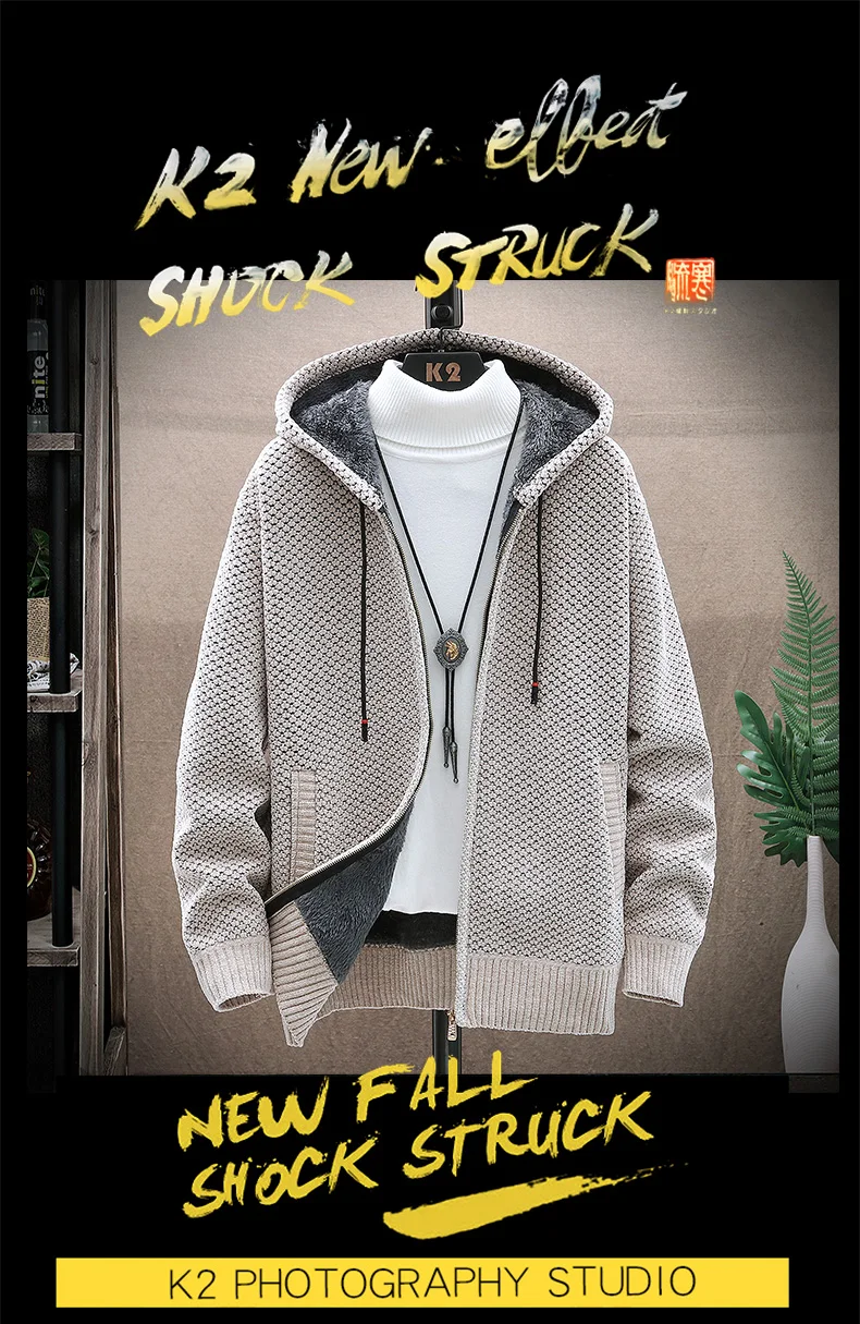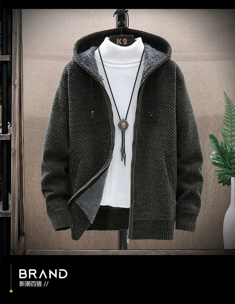 Men Soild Color Cardigan Men Hooded Casual Sweater Outwear Autumn Winter Male Fleece Warm Sweatercoats M-3XL