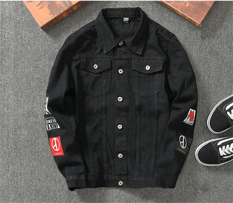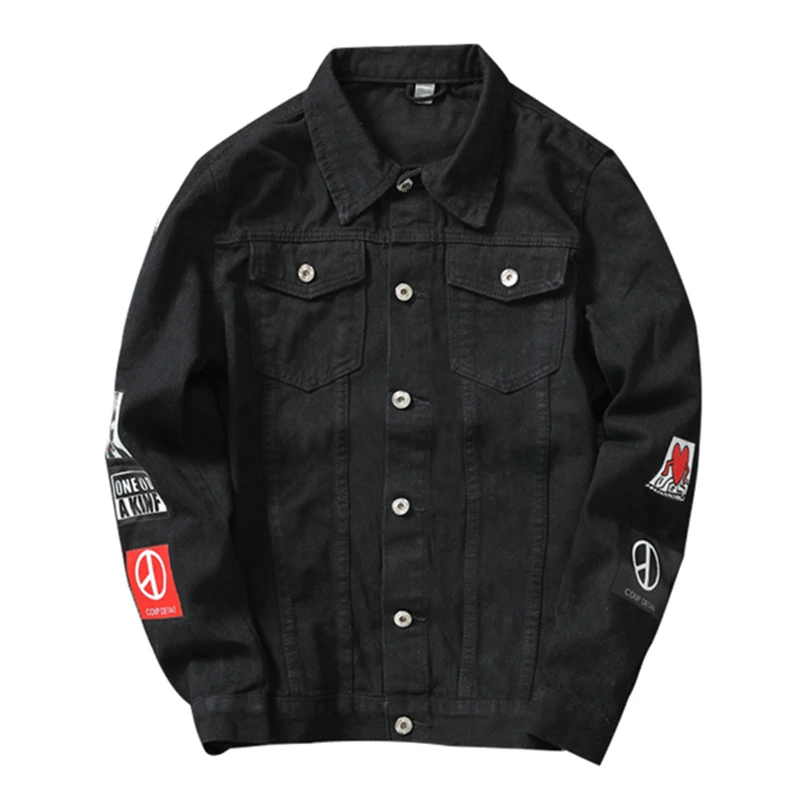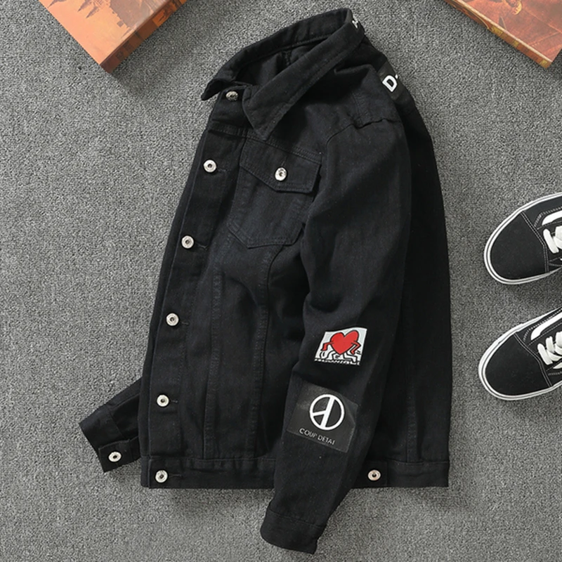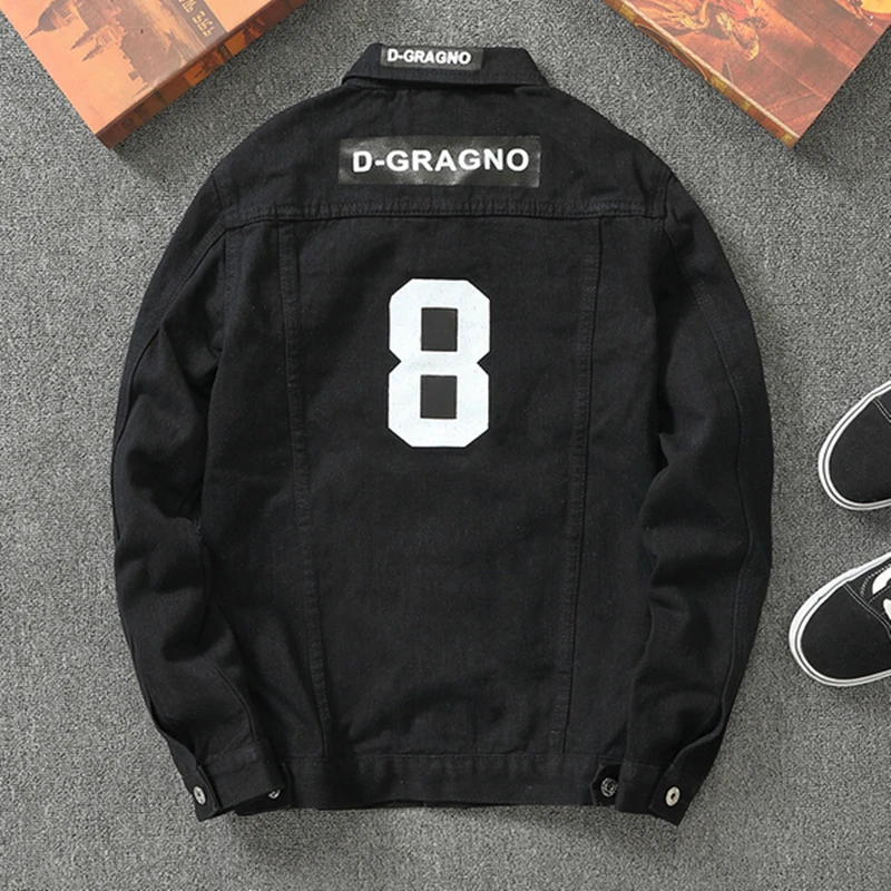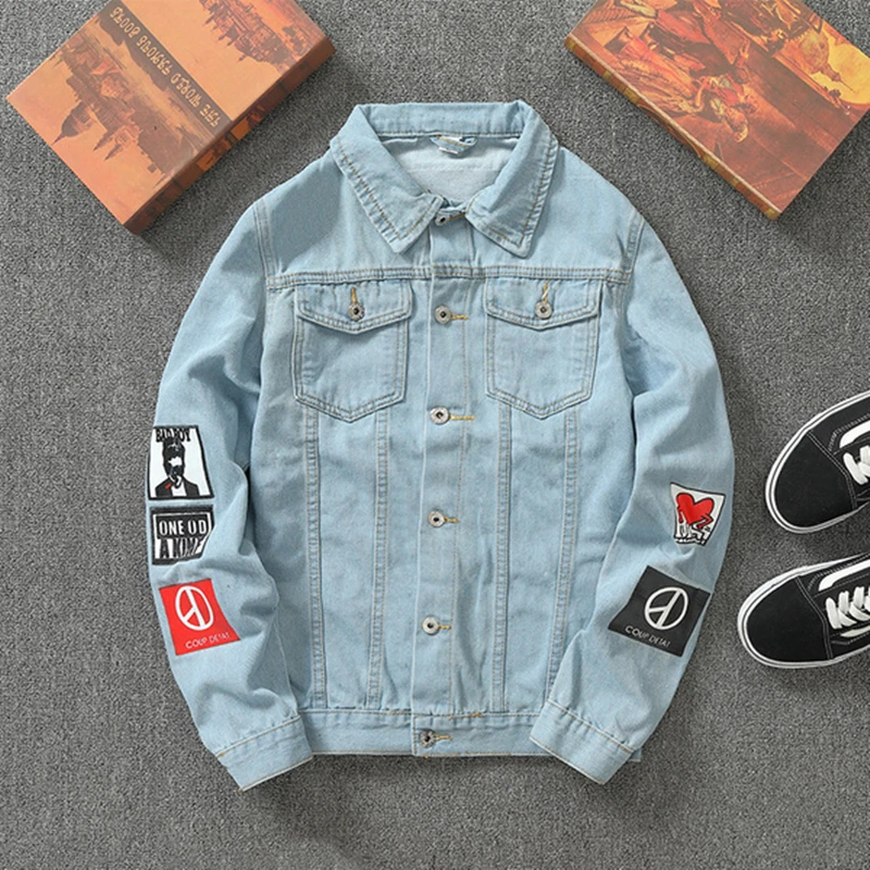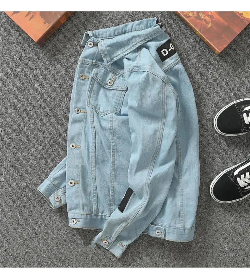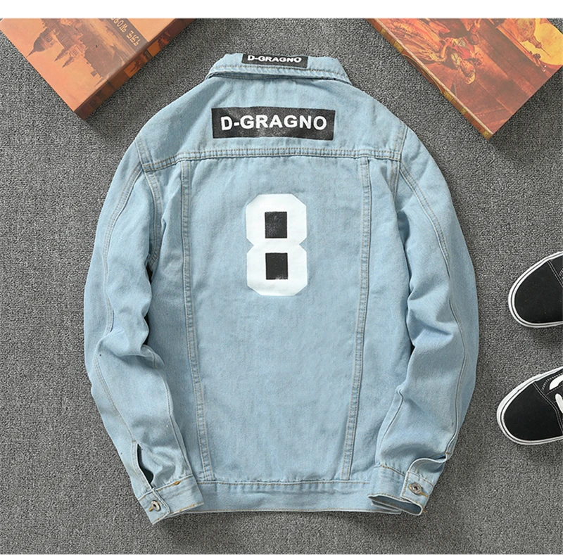 Men Stylish Autumn Denim Jacket Cowboy Slim Fit Bomber Outwear Jacket Denim Coat Clothing Men’s Jean Jacket Hip Hop Print Coat