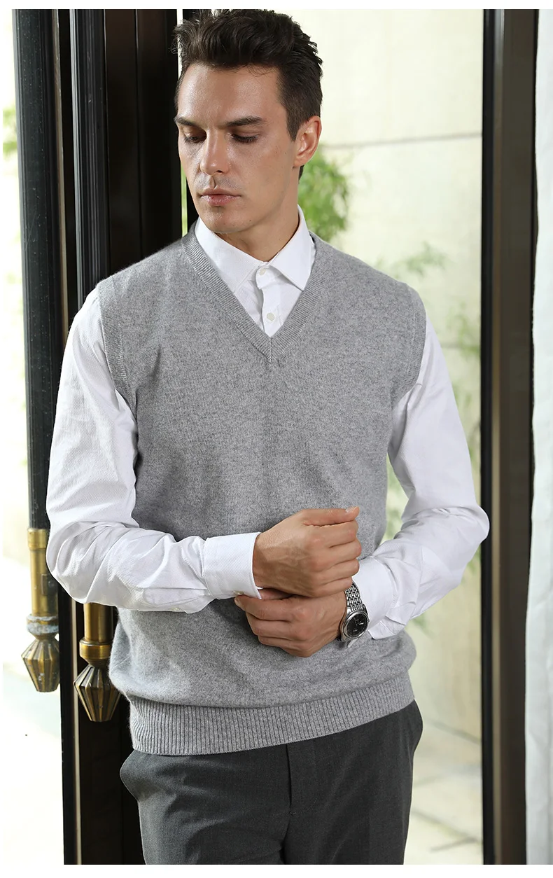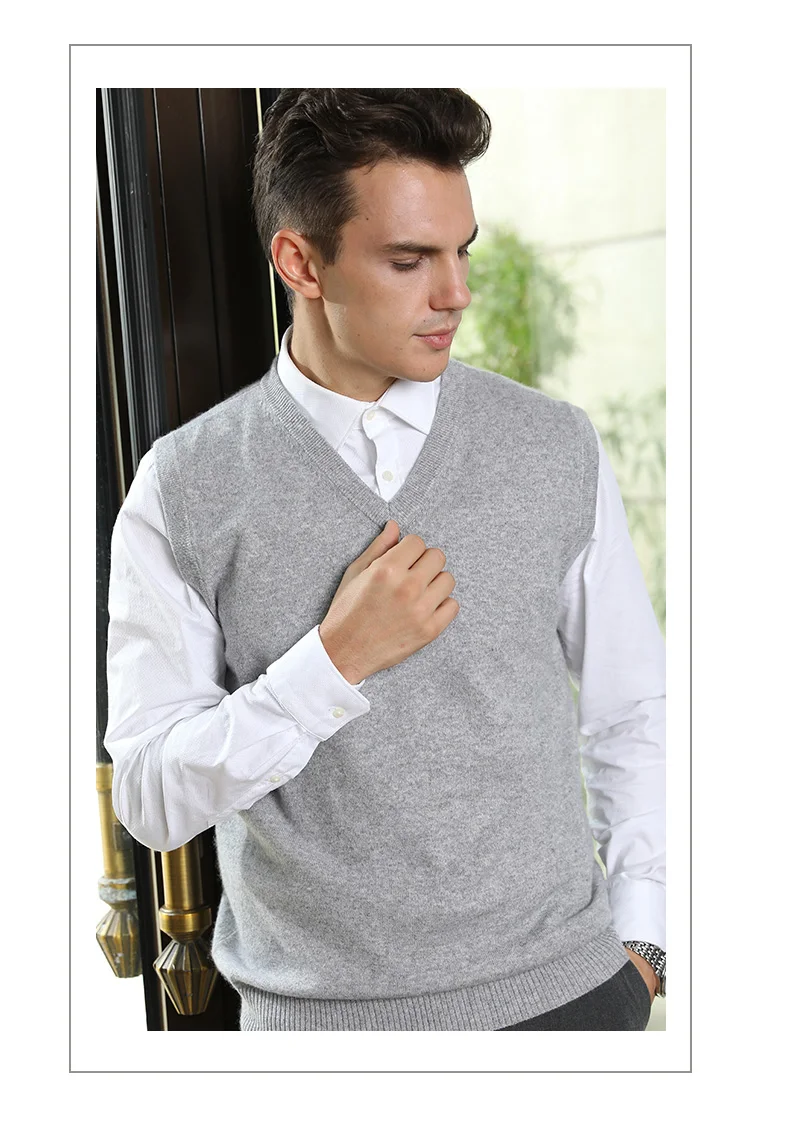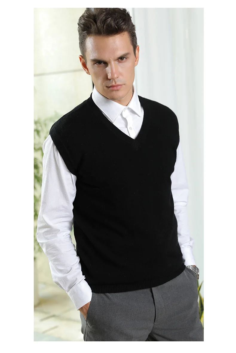 Men Sweaters 100% Pure Cashmere Jumpers Sleeveless Vneck Pullovers Hot Sale 5Colors Sweater Winter New Knitwear Man Clothes Tops free shipping