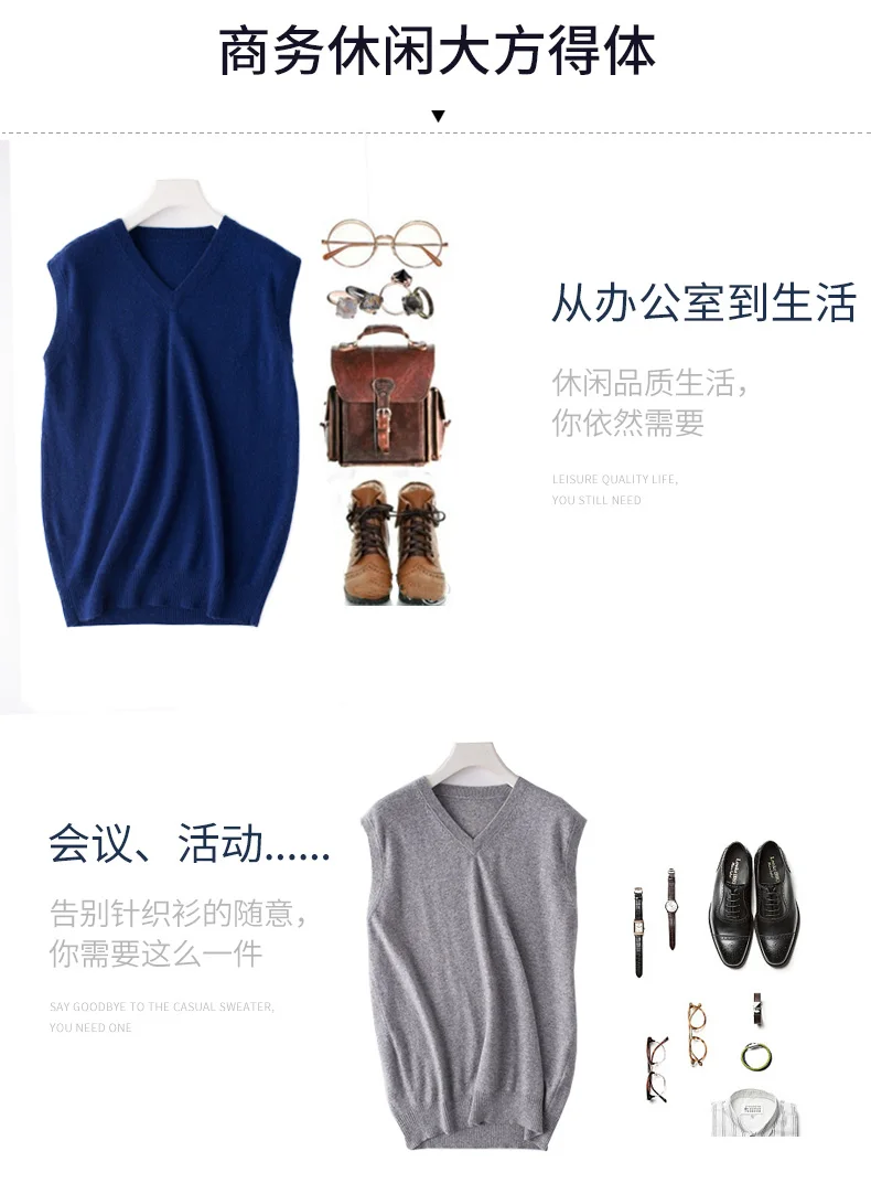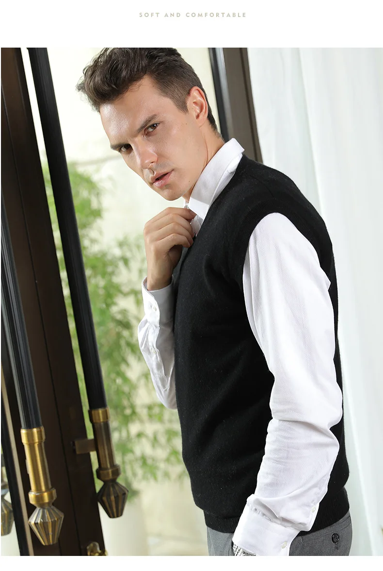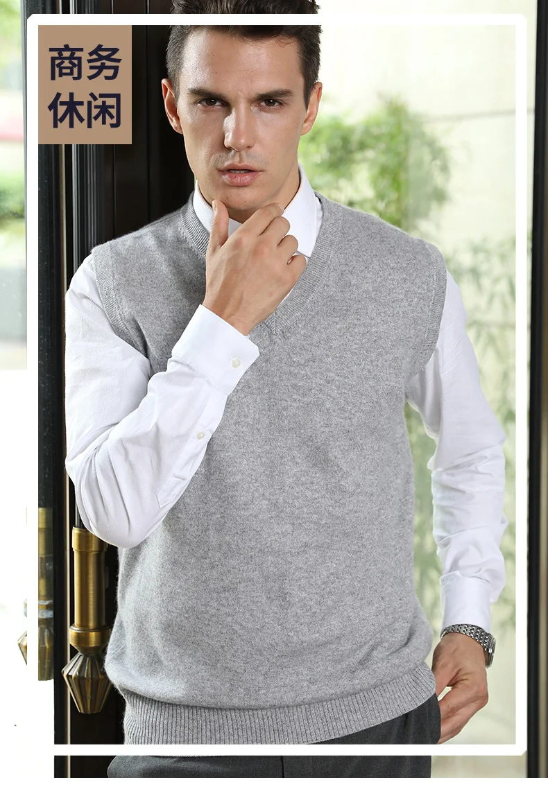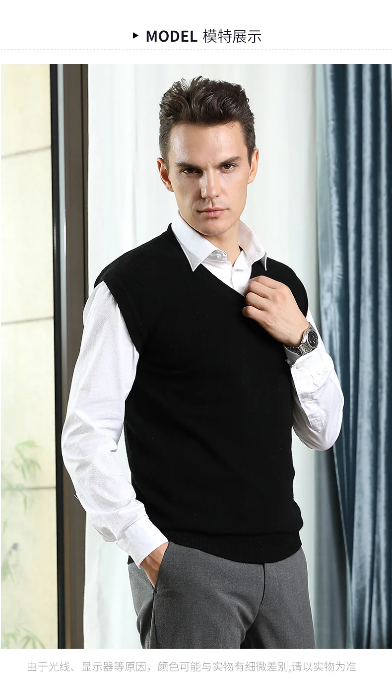 Men Sweaters 100% Pure Cashmere Jumpers Sleeveless Vneck Pullovers Hot Sale 5Colors Sweater Winter New Knitwear Man Clothes Tops free shipping