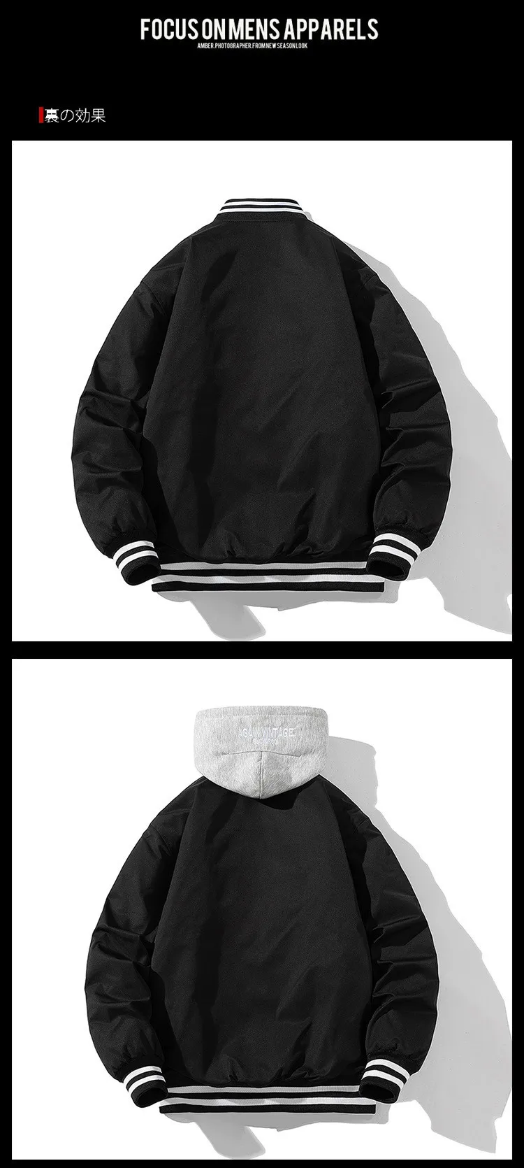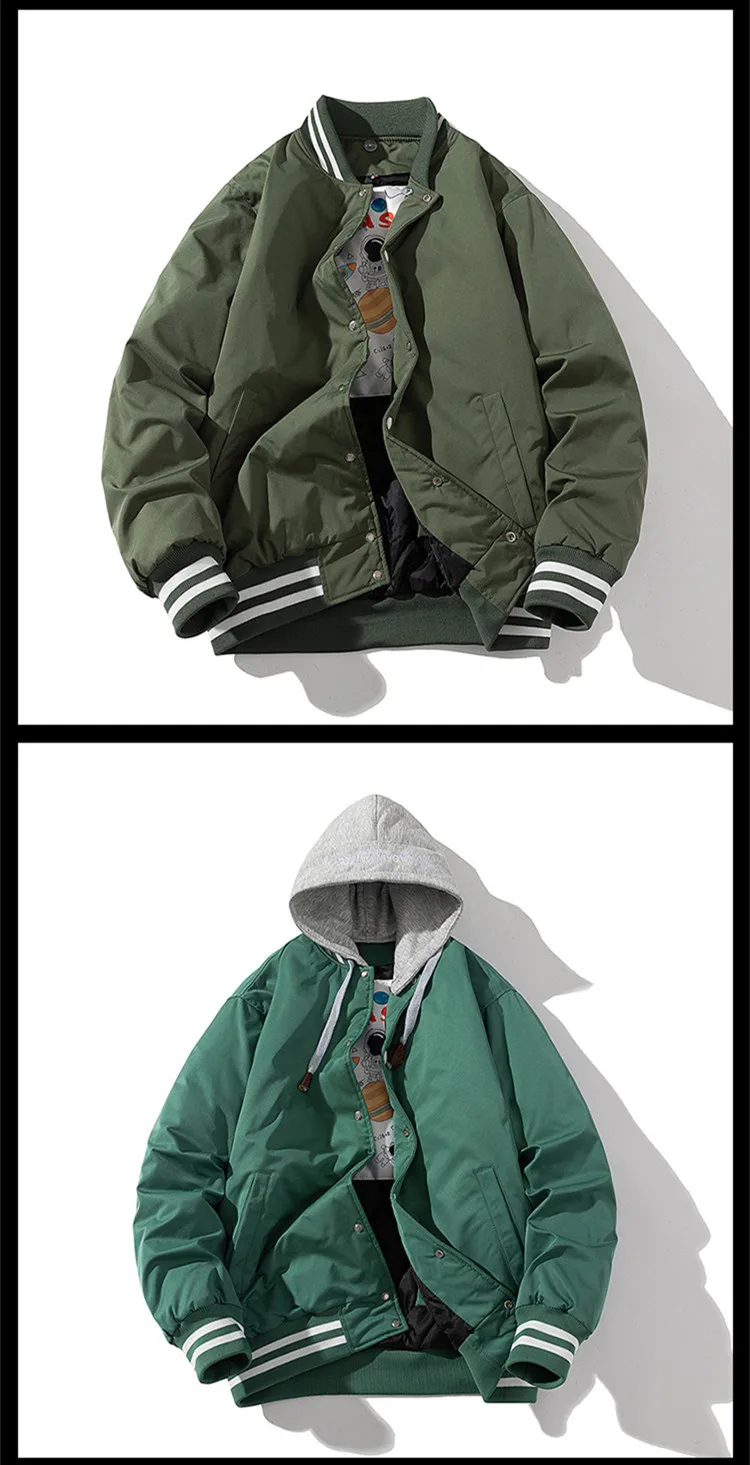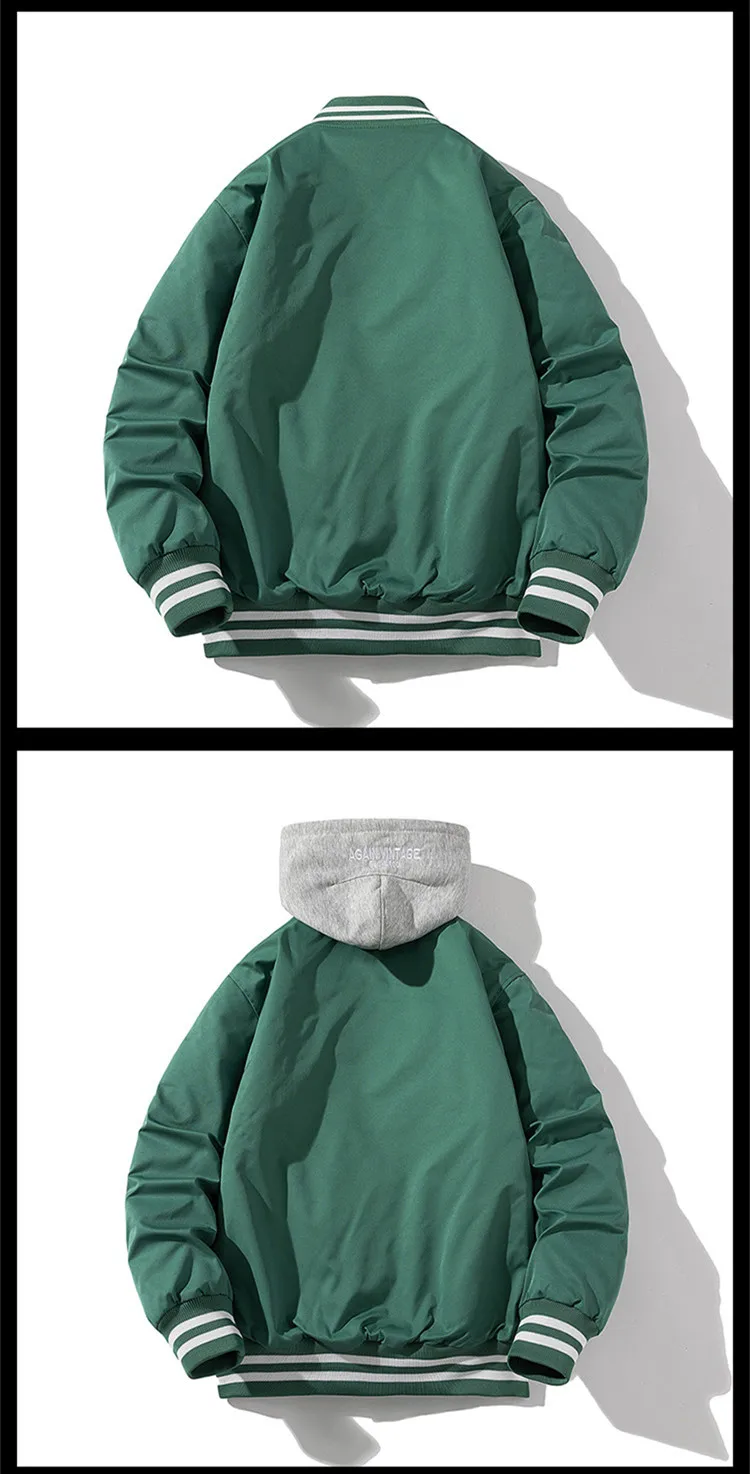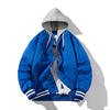 Men Women Varsity Jacket Autumn Winter Solid Color Baseball Jacket Fashion Casual Hooded College Parkas Windbreak Button Blue