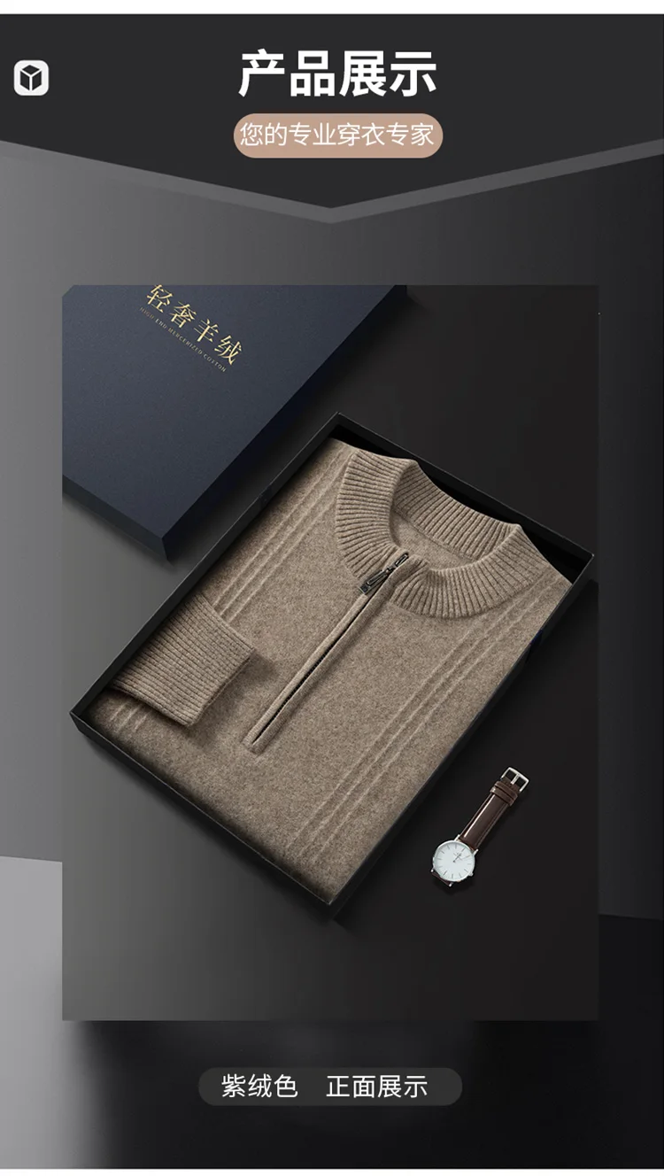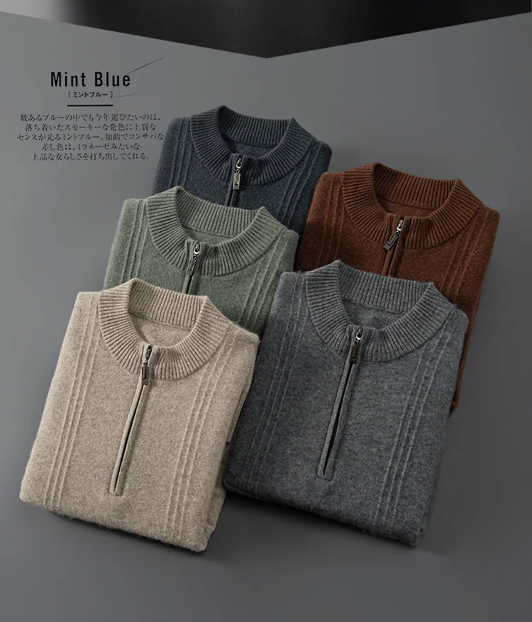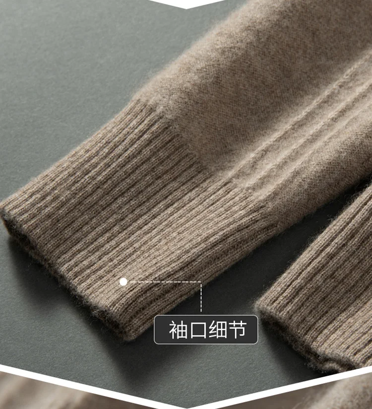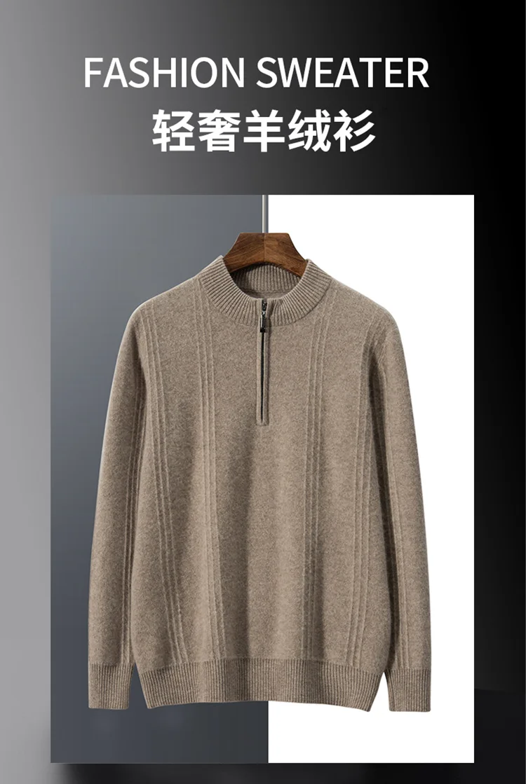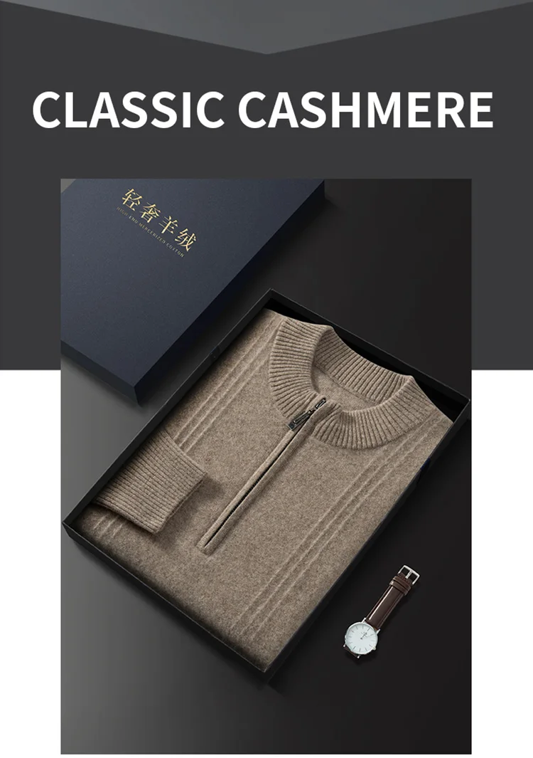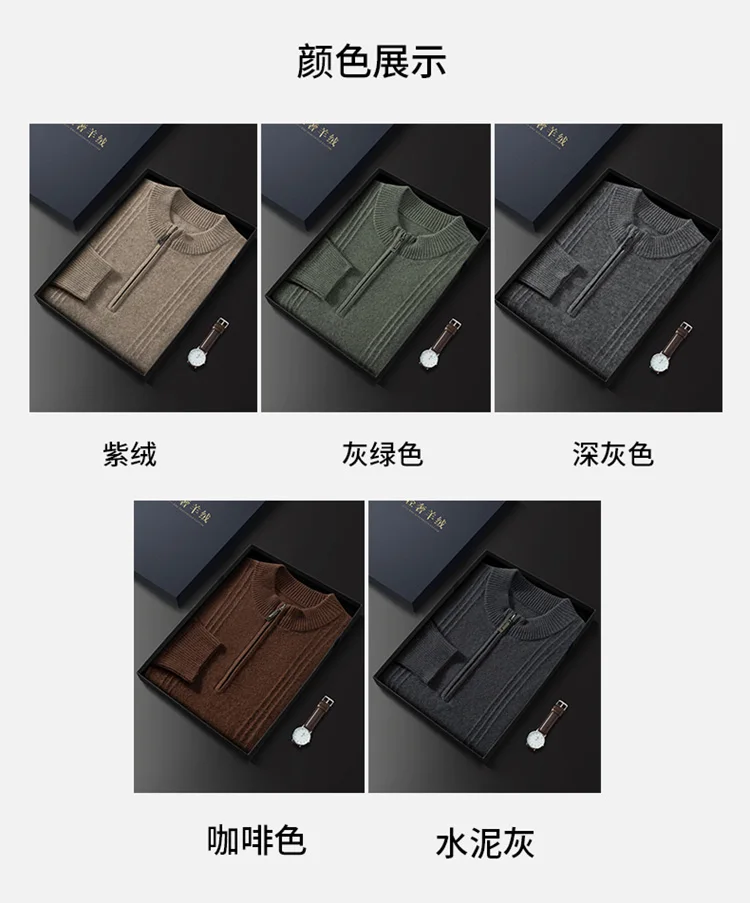 Men’s 100% Cashmere Sweater Solid Color Knitted Long Sleeved Casual Business Men’s Pure Cashmere Pullover Sweater Half High Coll