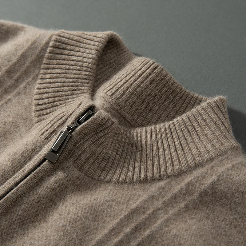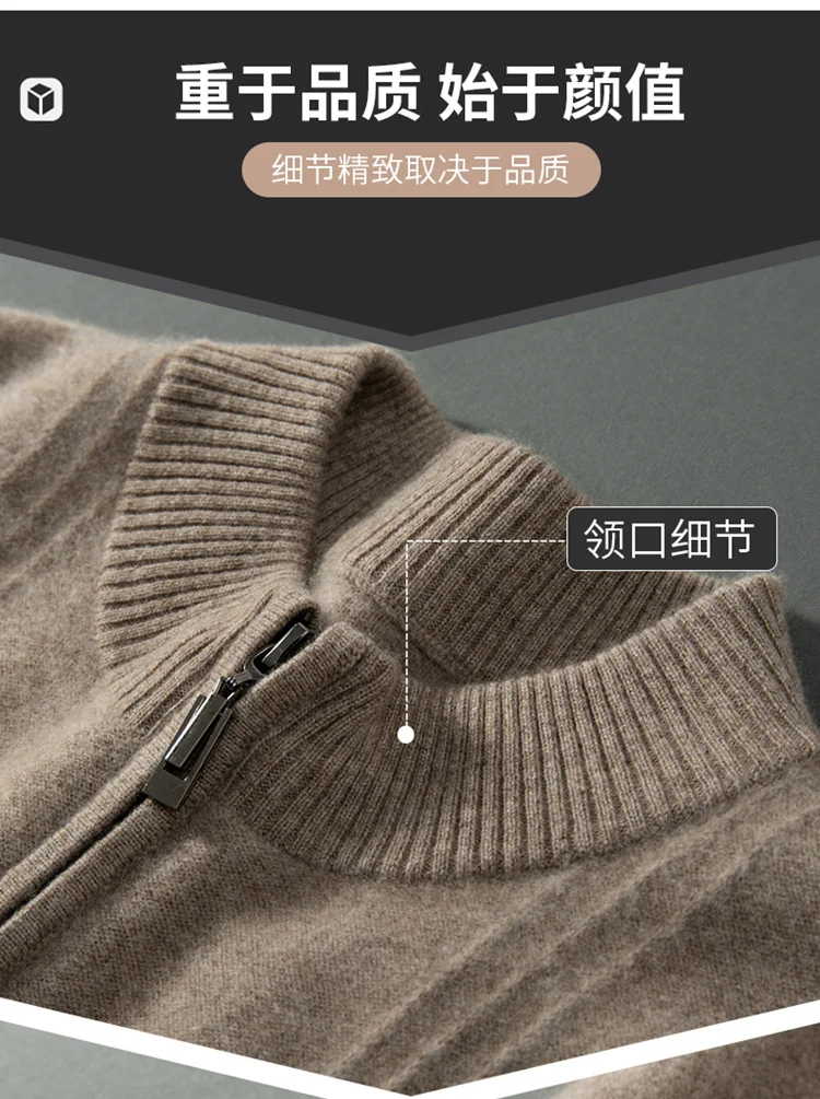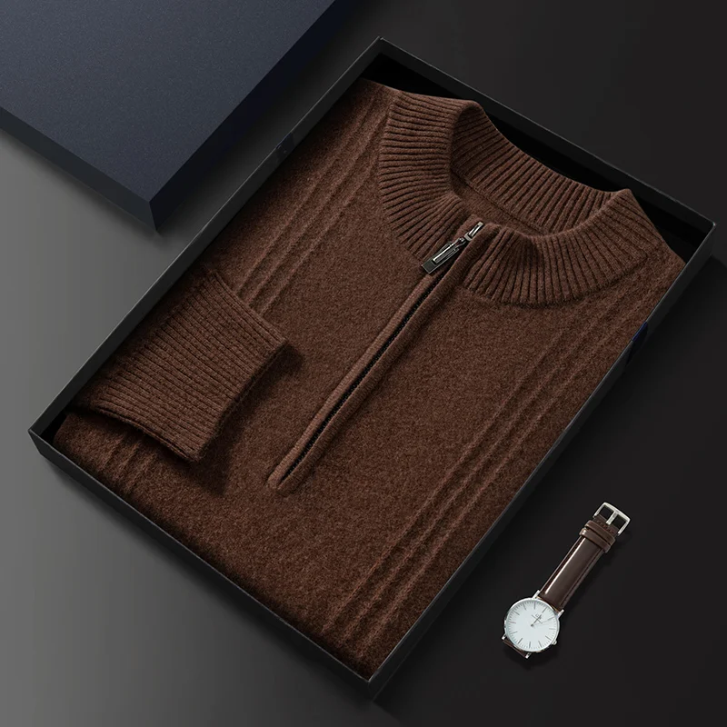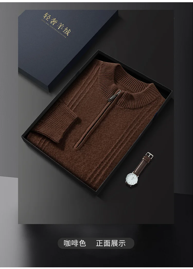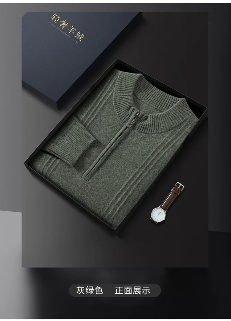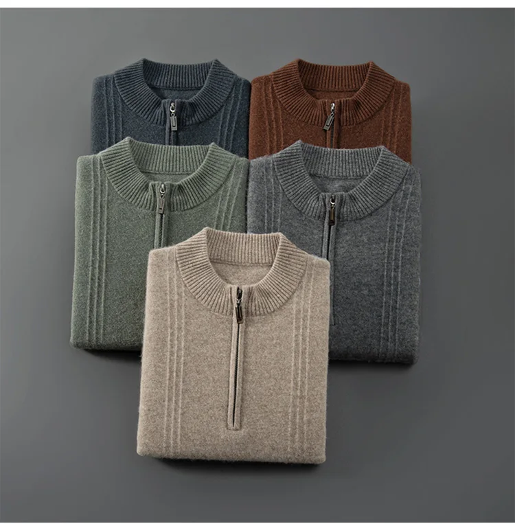 Men’s 100% Cashmere Sweater Solid Color Knitted Long Sleeved Casual Business Men’s Pure Cashmere Pullover Sweater Half High Coll