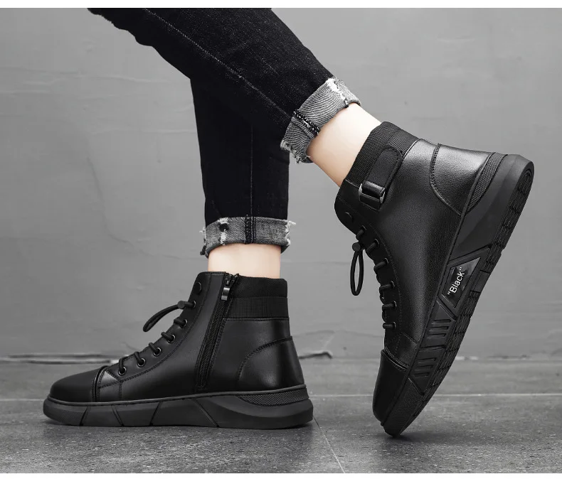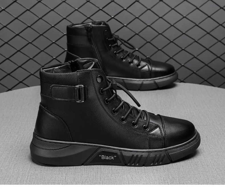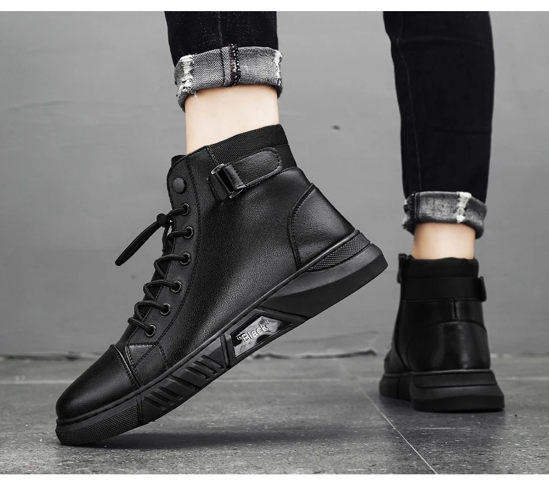 Mens Boots PU Leather Shoes for Men Outdoor All-match High-top Hard Wearing Large Size Shoes For Male Sapatos Masculinos