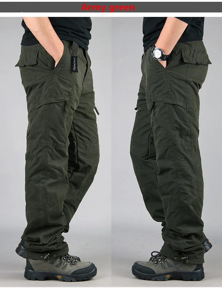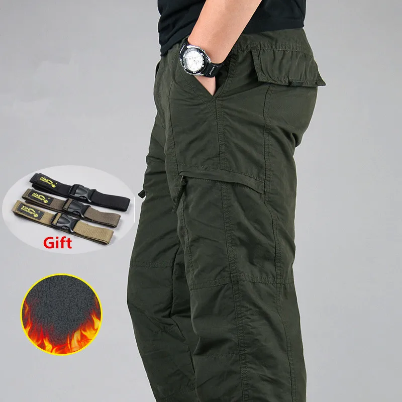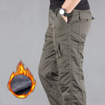 Men’s Cargo Pants Winter Thicken Fleece Cargo Pants Men Casual Cotton Military Tactical Baggy Pants Warm Trousers Plus size 3XL