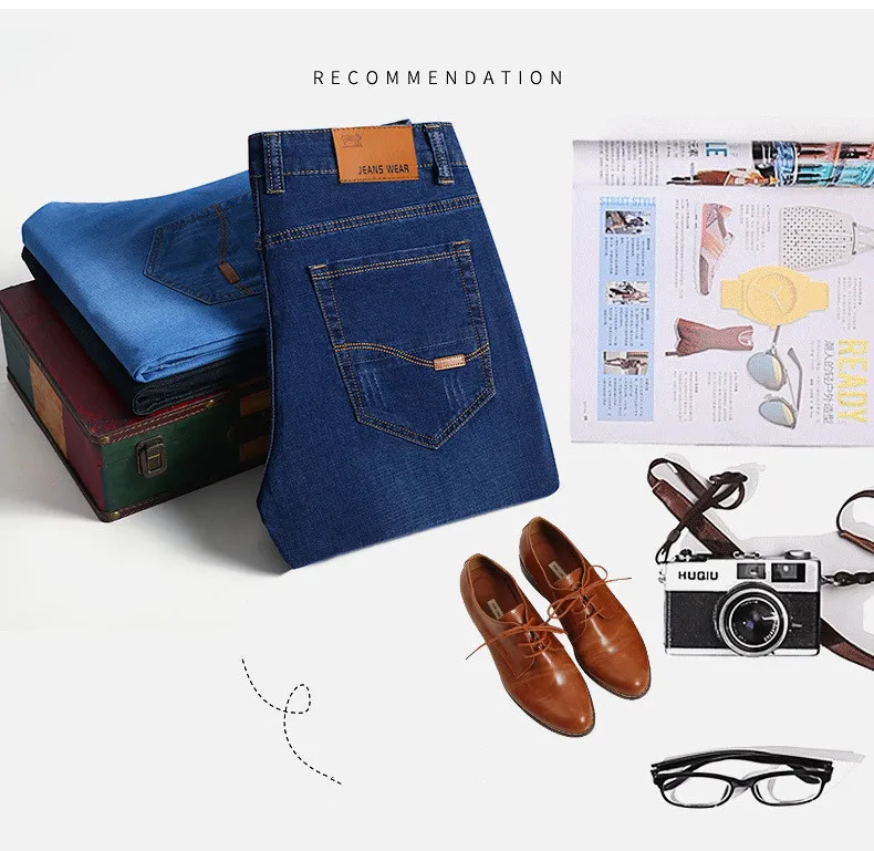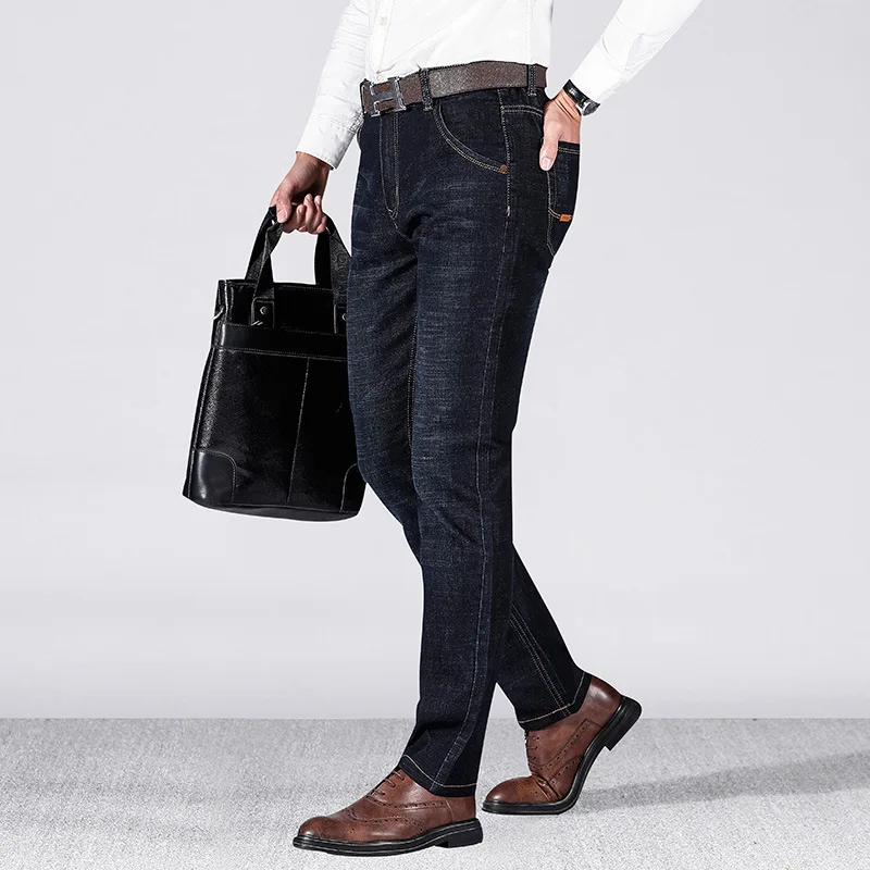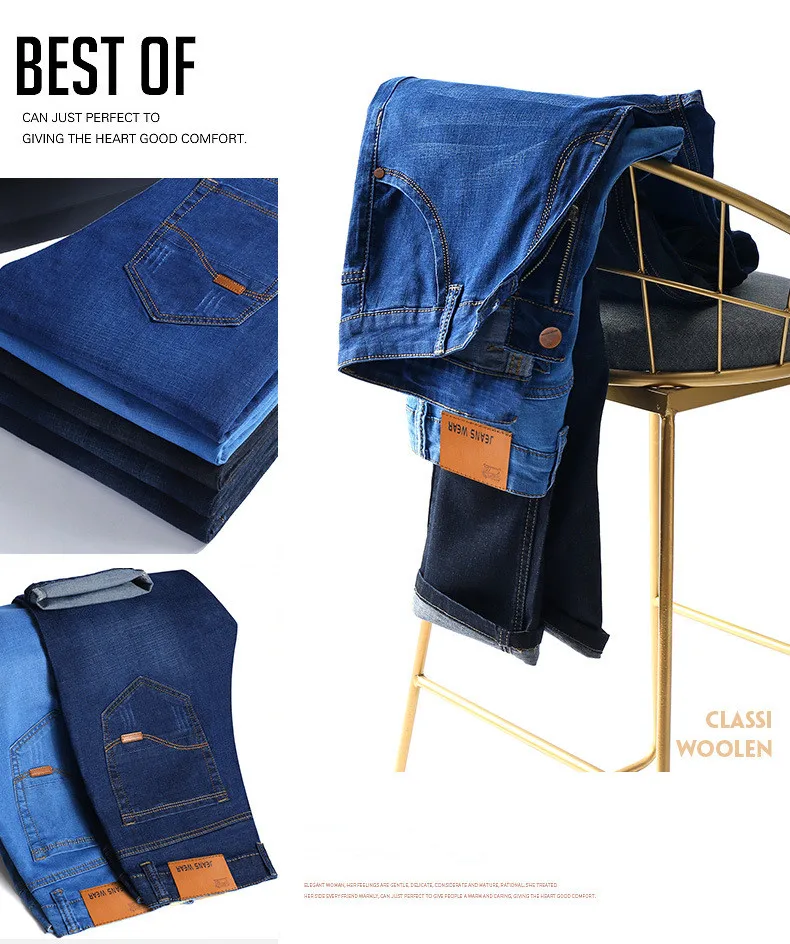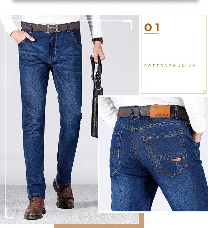 Men’s Classic Style Business Softener Jeans Pants New Fashion Straight Stretch Denim Long Trousers Male Brand Pants Plus Size 40