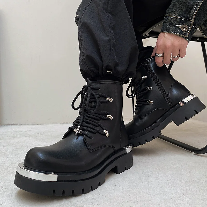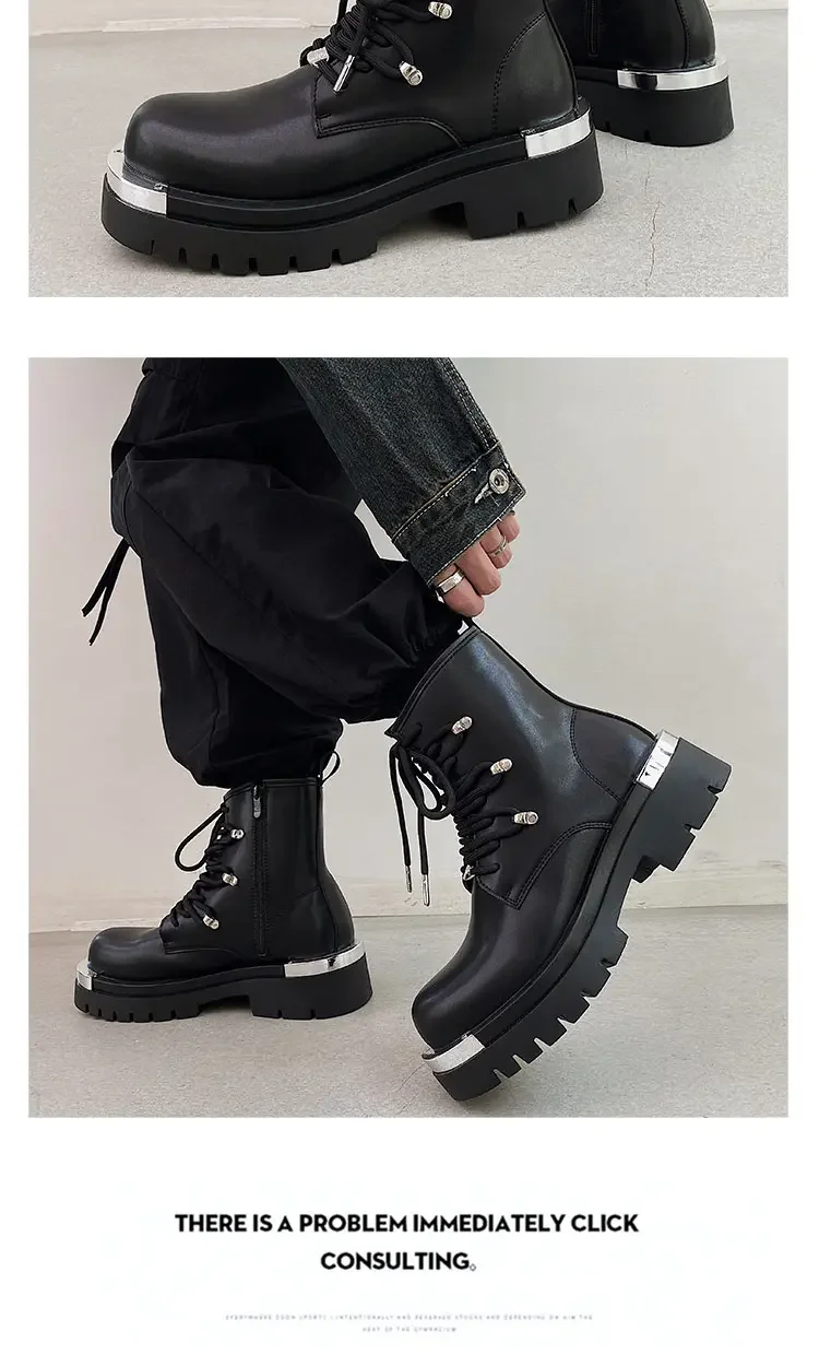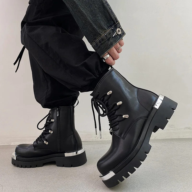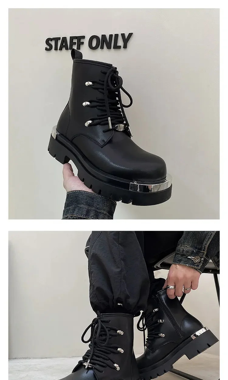 Men’s Combat Boots Thick Bottom Platform Shoes Men Ankle Boots Lace Up Autumn Winter Shoes Motorcycle Boots Man Punk Shoes Metal