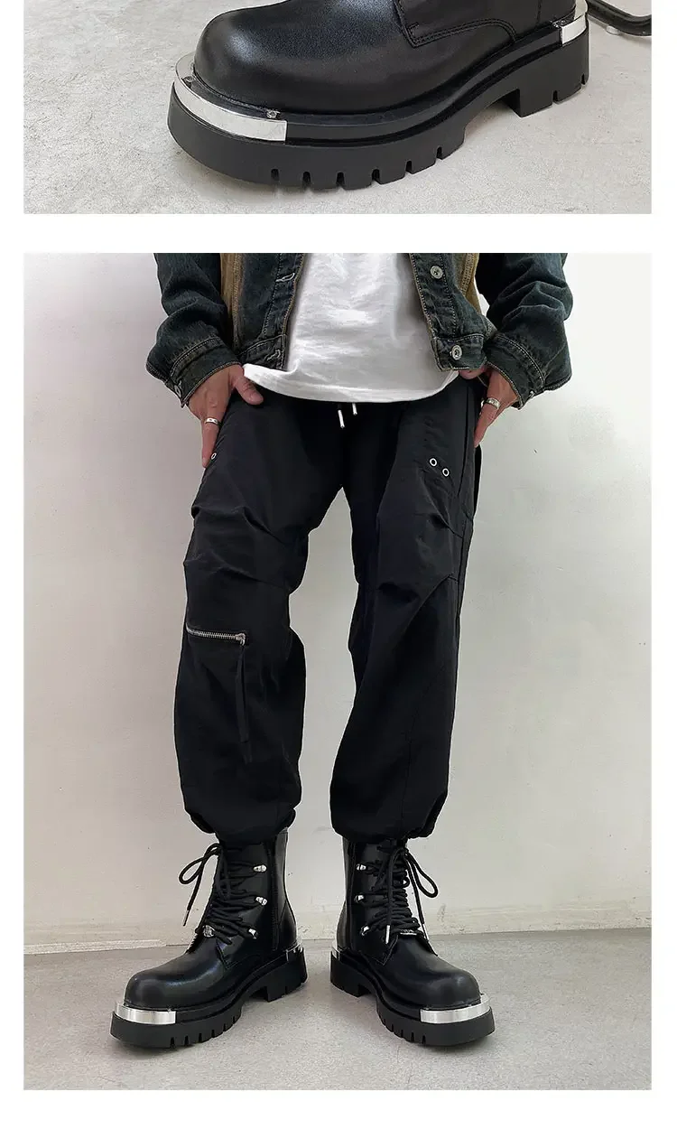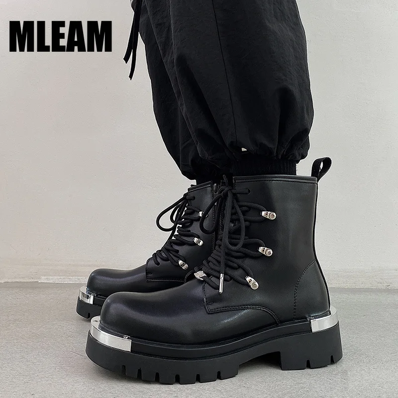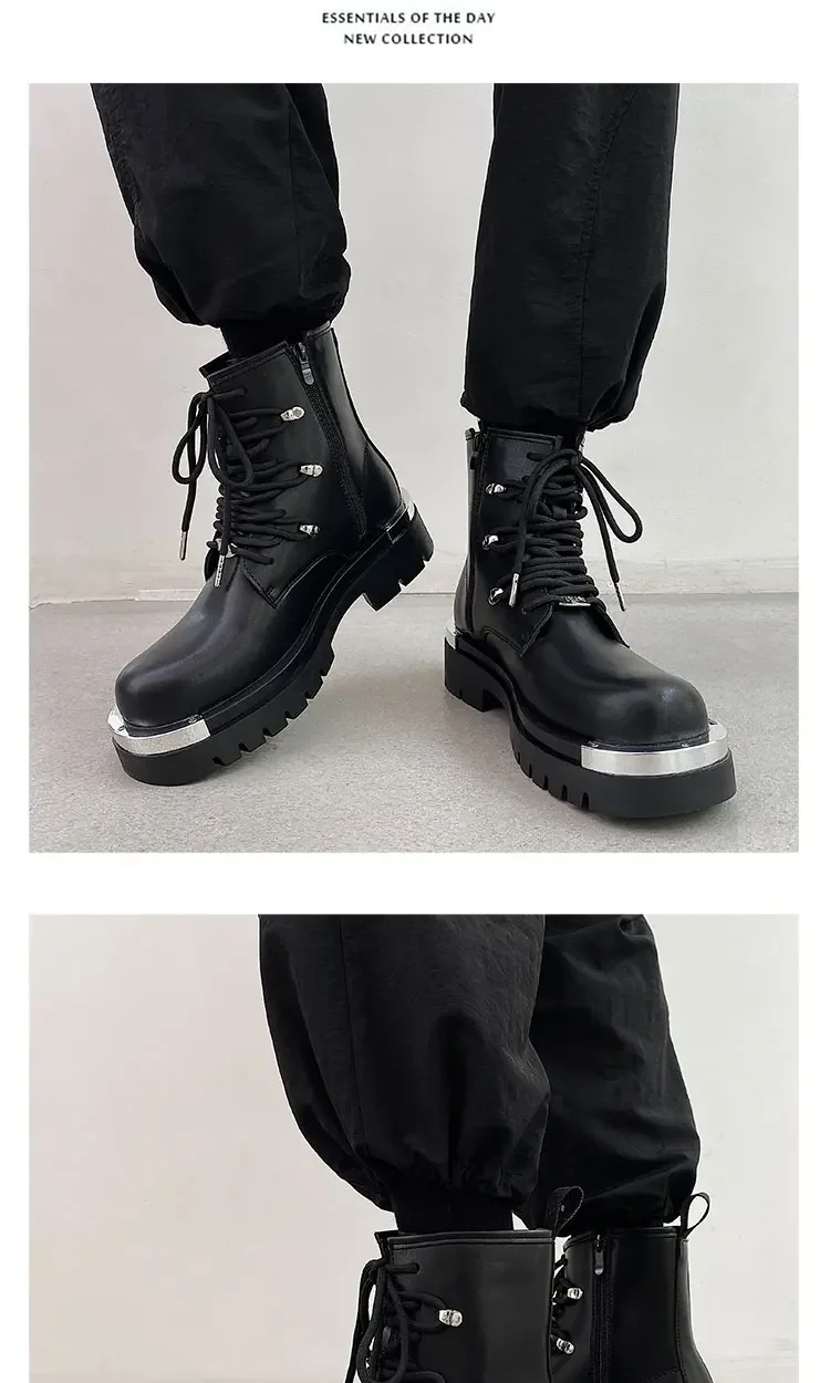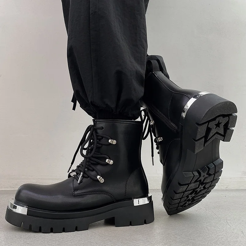 Men’s Combat Boots Thick Bottom Platform Shoes Men Ankle Boots Lace Up Autumn Winter Shoes Motorcycle Boots Man Punk Shoes Metal