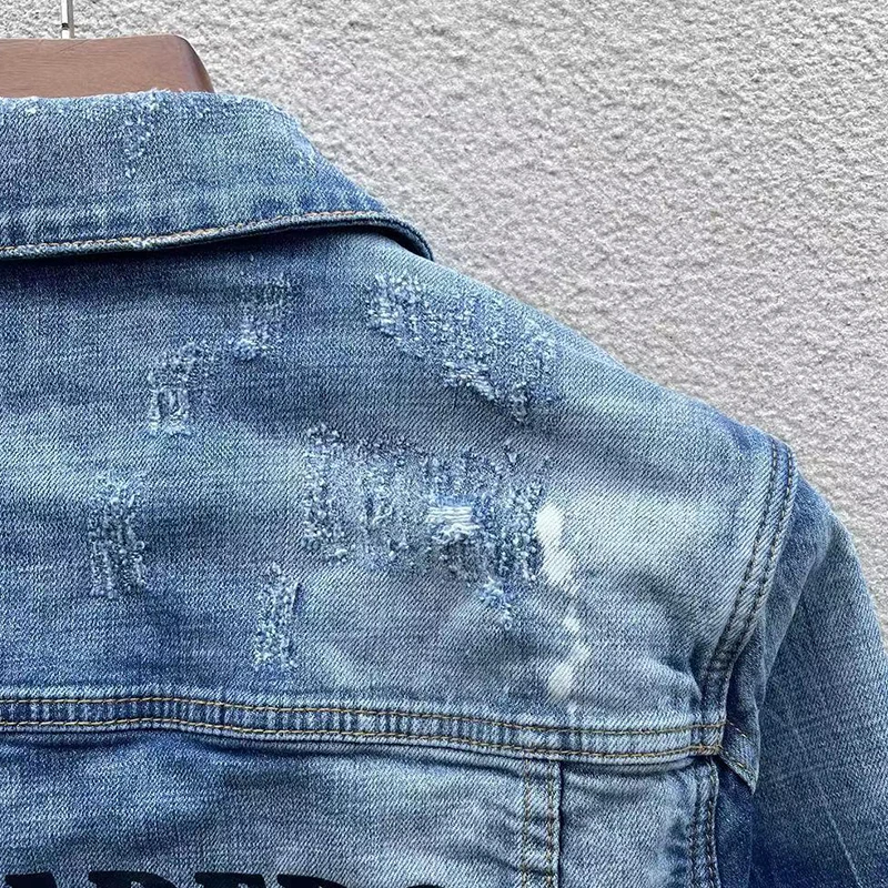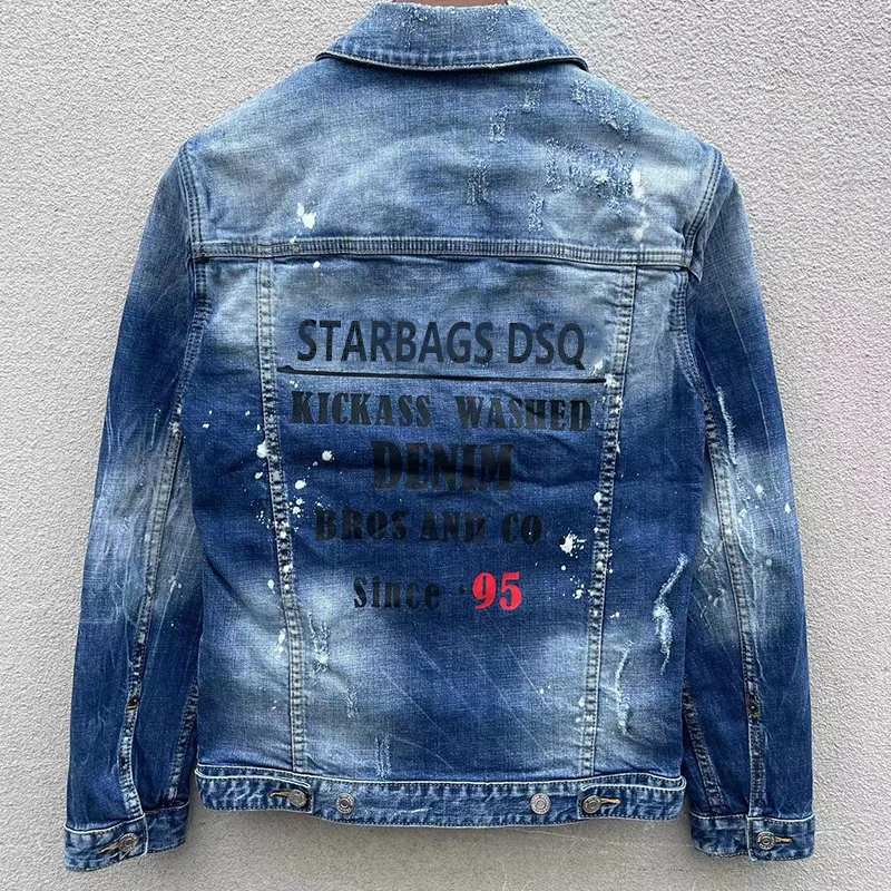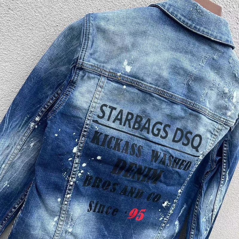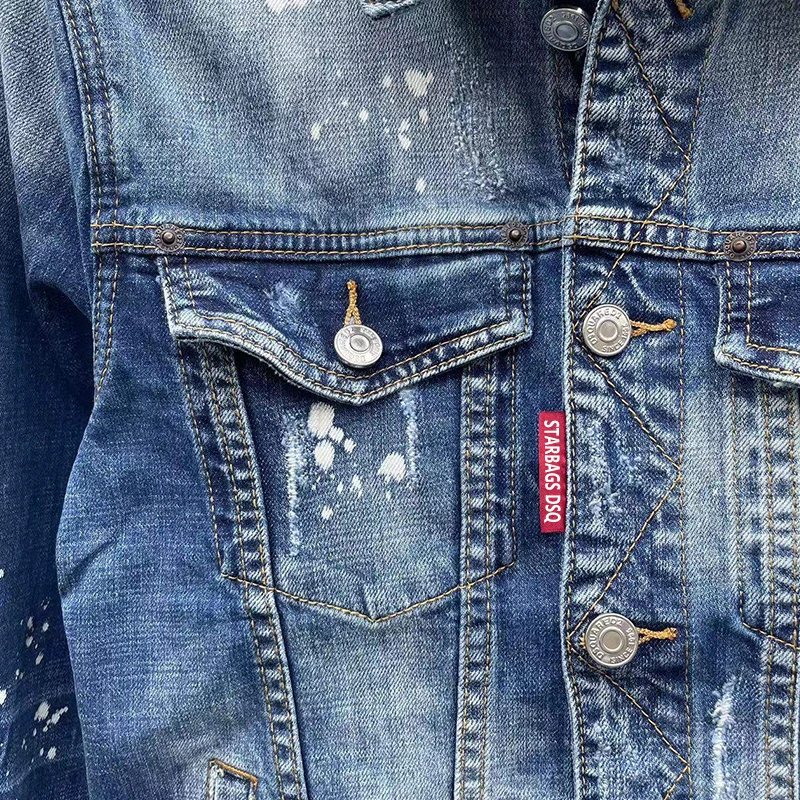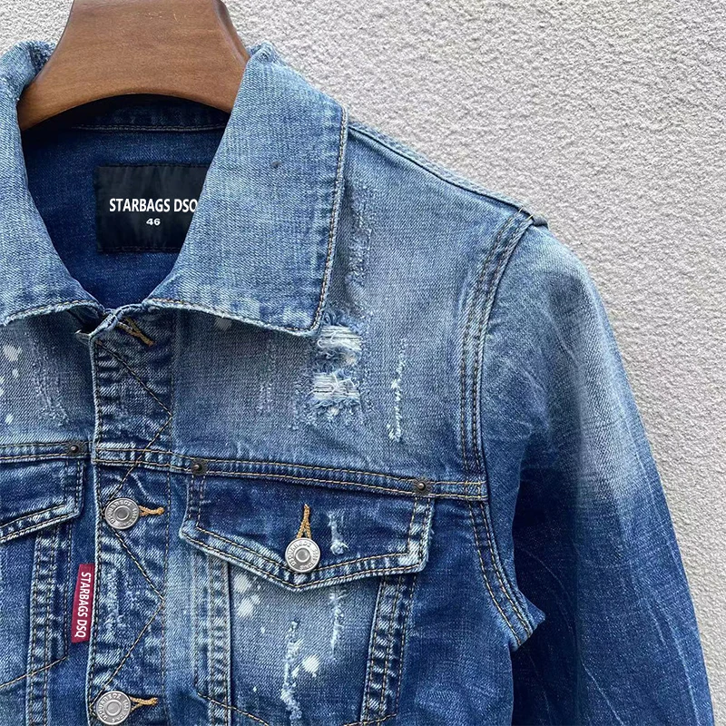 Men’s denim jacket starbags dsq1902 punk hole torn paint, splashed ink, heavily washed patch, slim fit jeans coat rock jacket