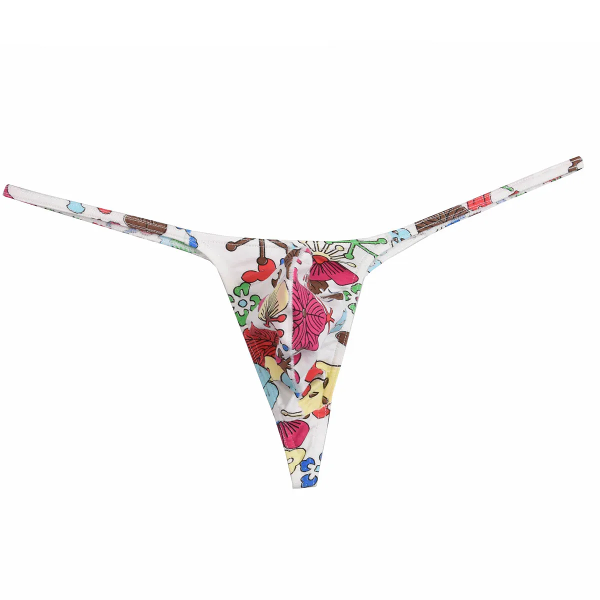 Men’s Enhanced Pouch Flowery Print Cotton Jockstrap Thongs Bikini Underwear G-Strings Men Fashion Male Thong Underwear