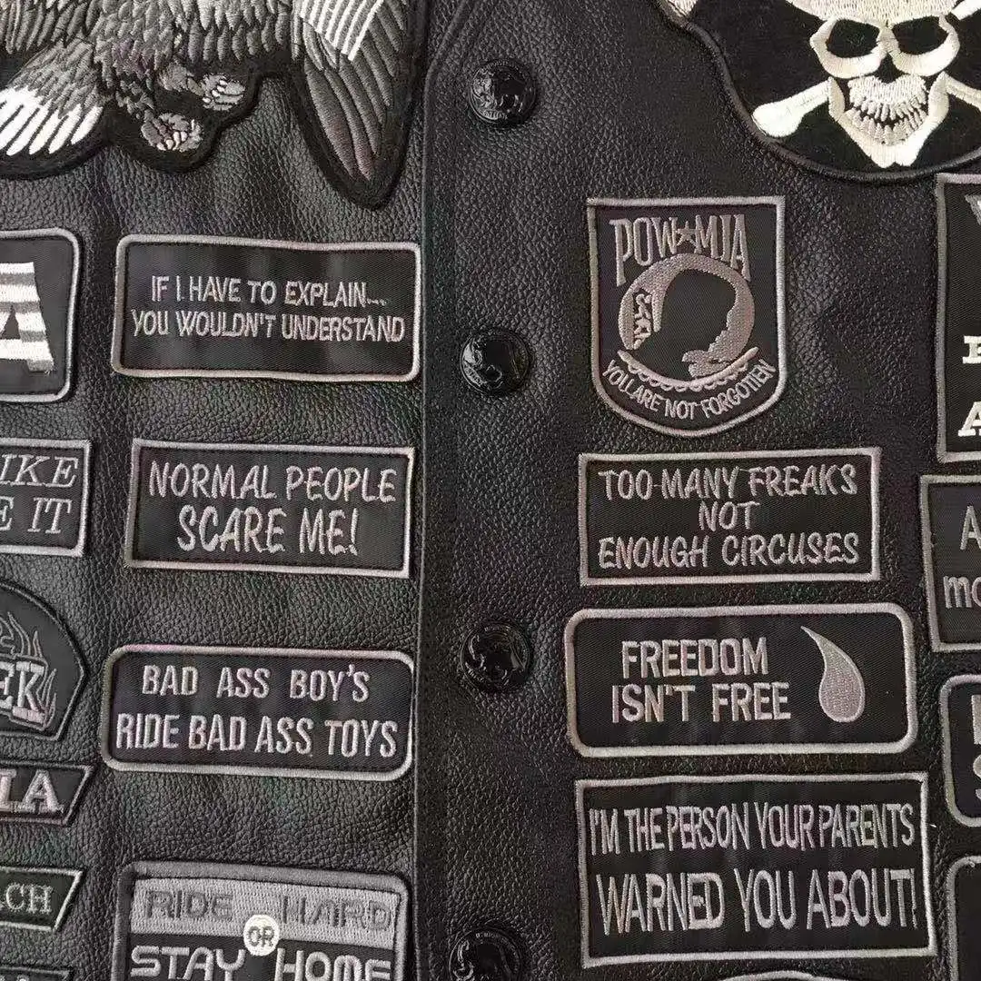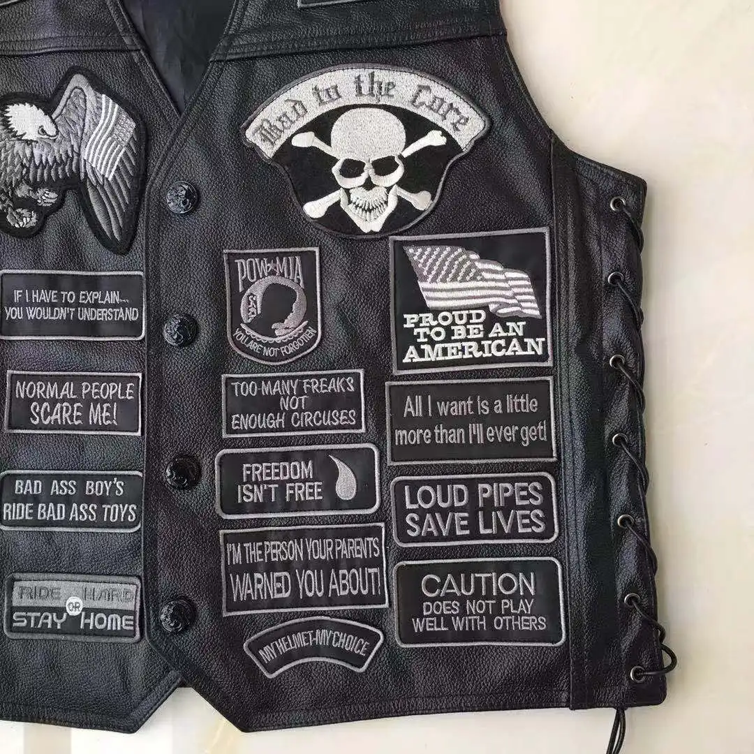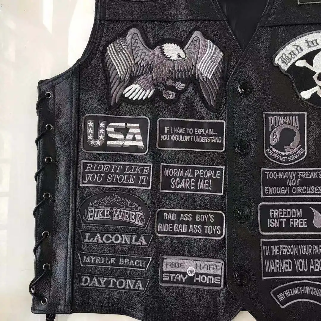 Men’s First Layer Cowhide Vest Motorcycle Vest Leather Vest Embroidered Badge Men Clothing