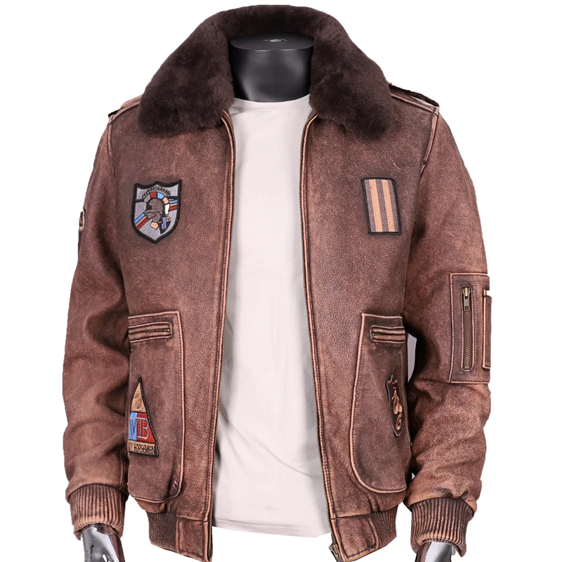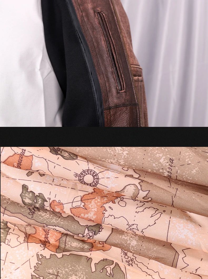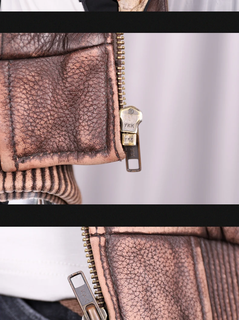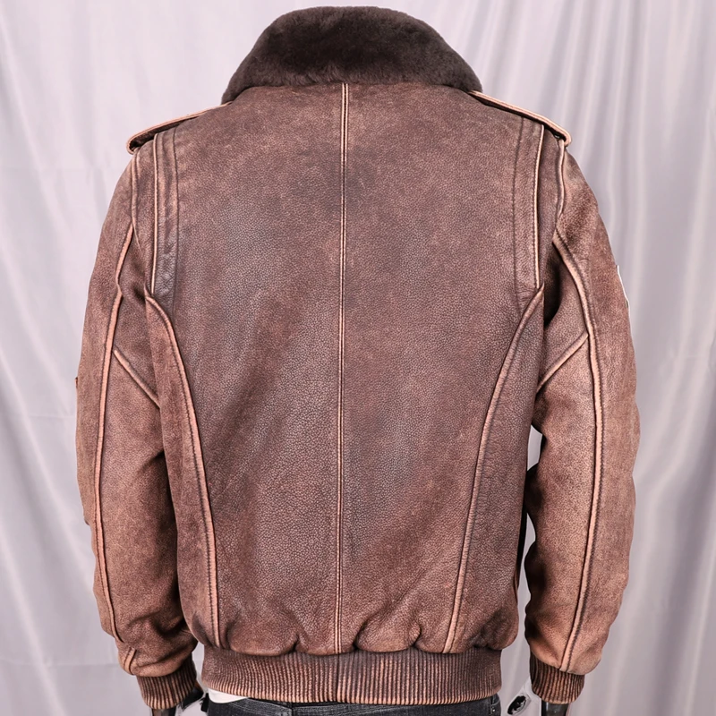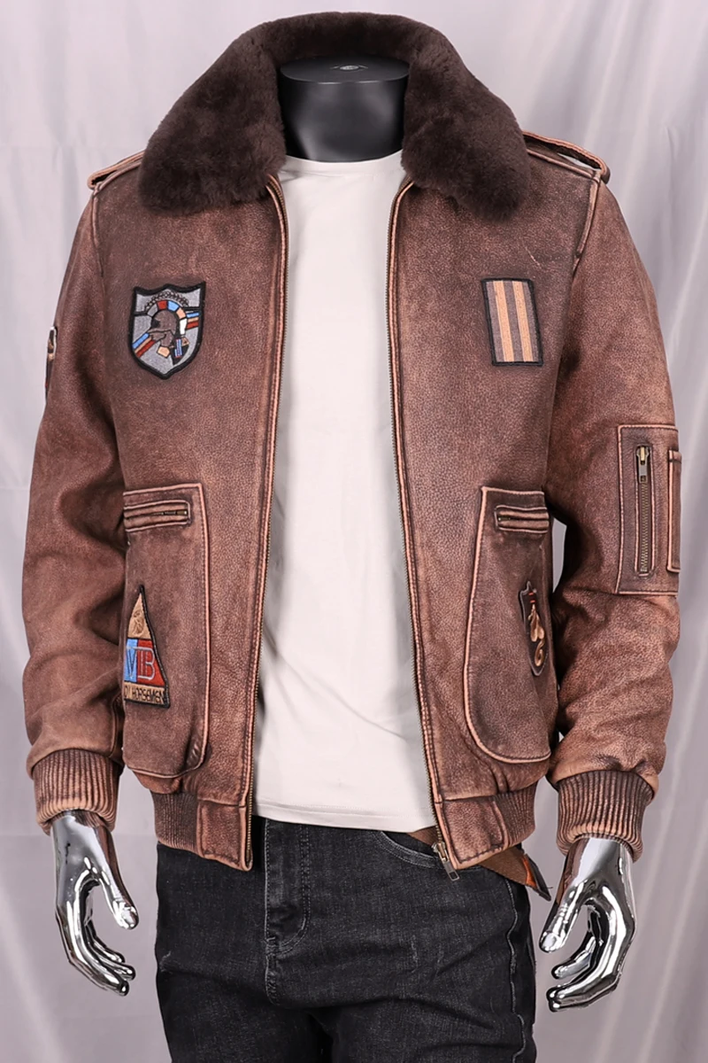 Men’s Genuine Leather Coat High Top 100% Leather Layer Washed And Worn Multi Standard Flight Suit Fur Collar Winter Jacket