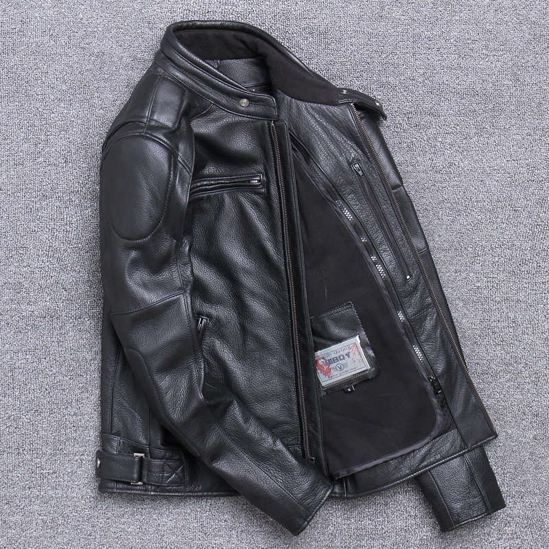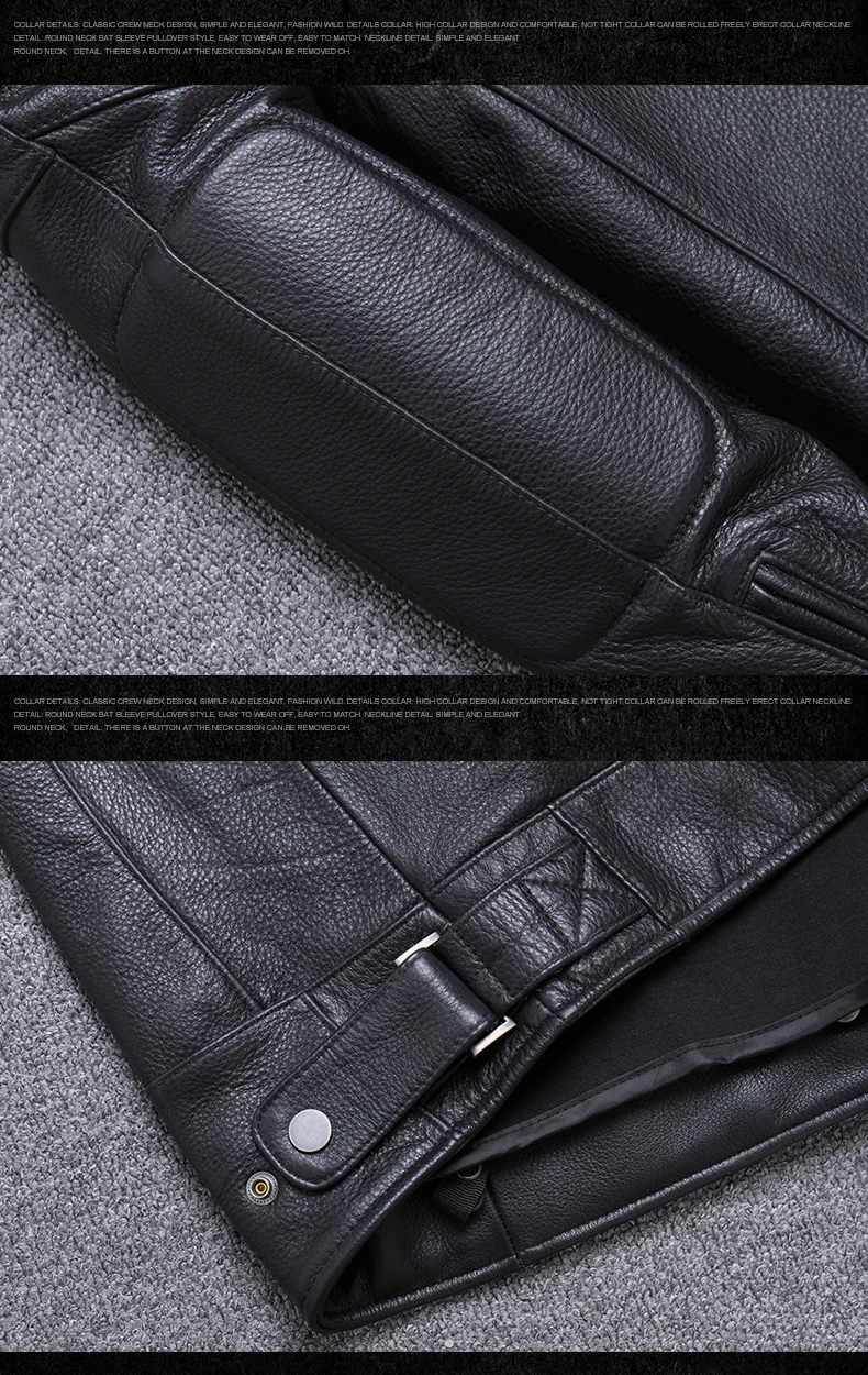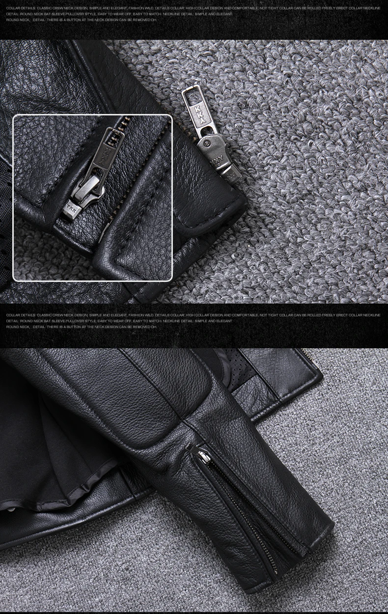 Men’s Genuine Leather Jacket Brand Designer Thick Cow Leather Classic Bomber Jacket Vintage Warm Motorcycle Biker Black Coat