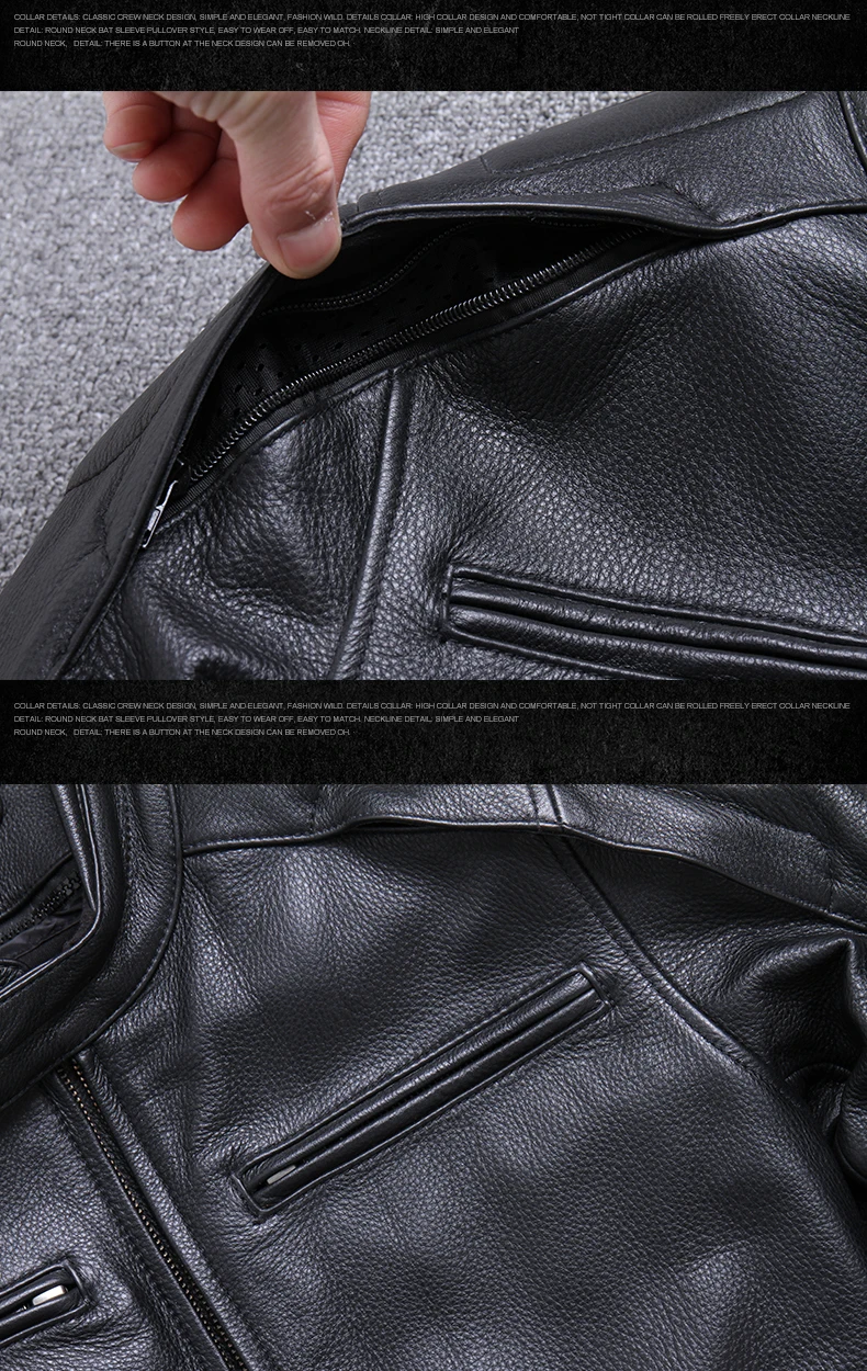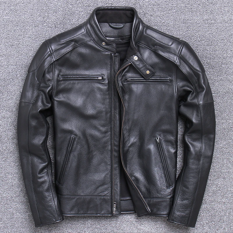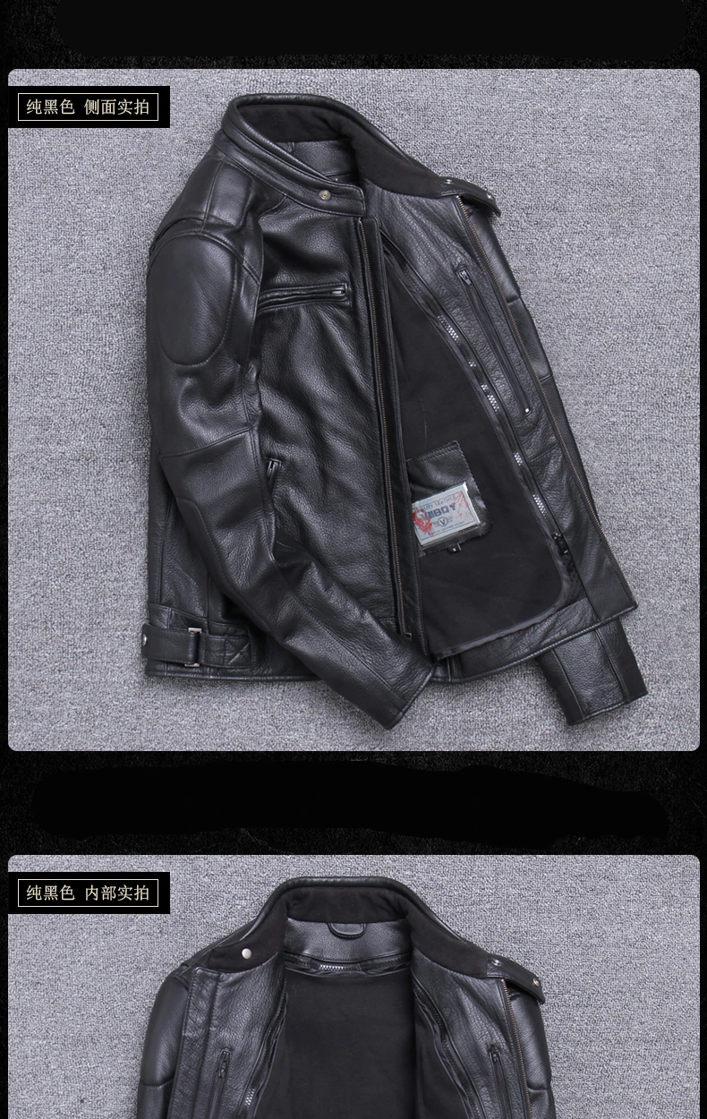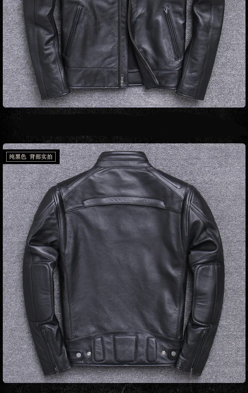 Men’s Genuine Leather Jacket Brand Designer Thick Cow Leather Classic Bomber Jacket Vintage Warm Motorcycle Biker Black Coat