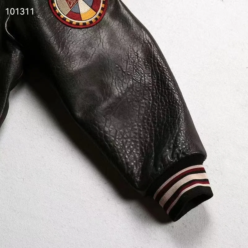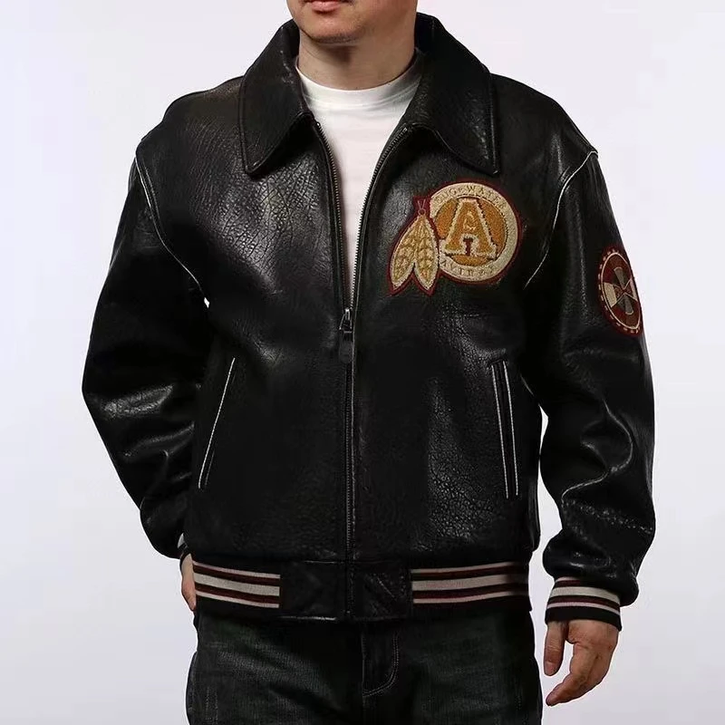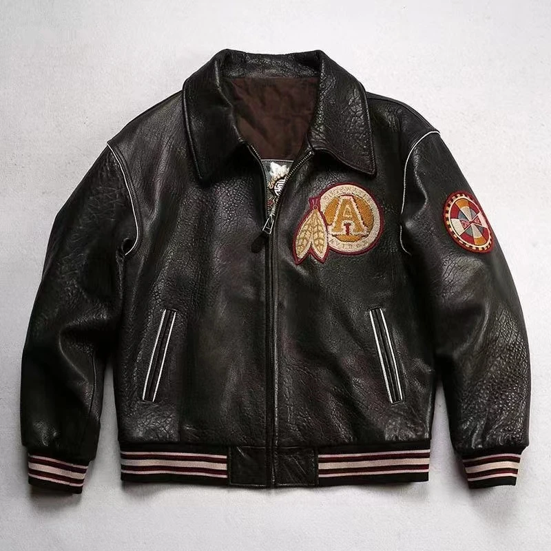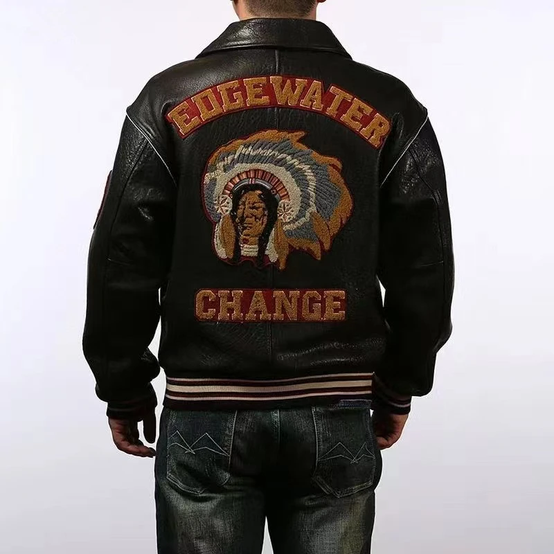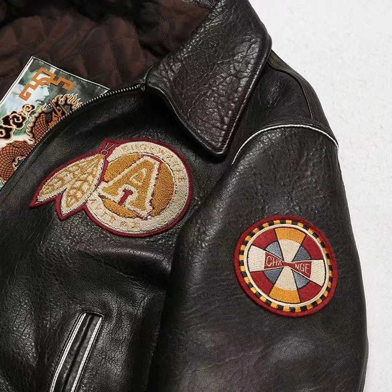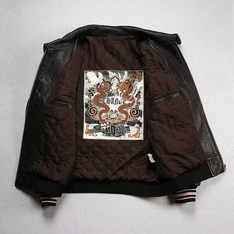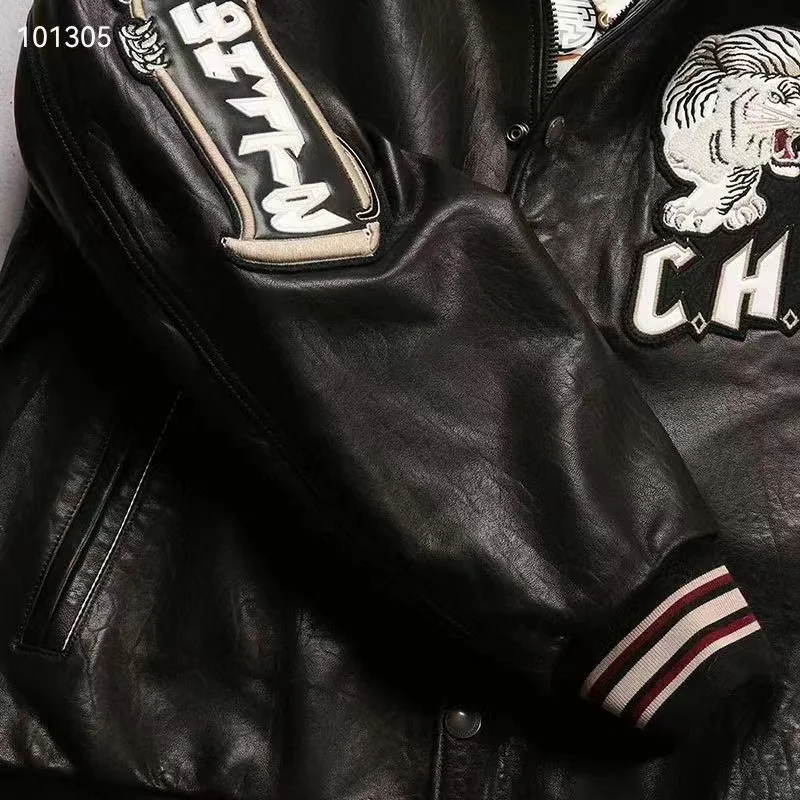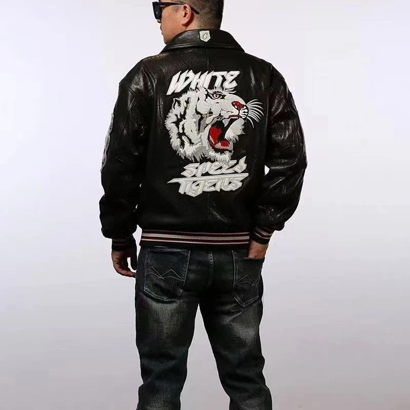 Men’s Italy Sheep Leather Jacket USA Size Embroidered Speed Tiger Autumn Winter Flight Coat