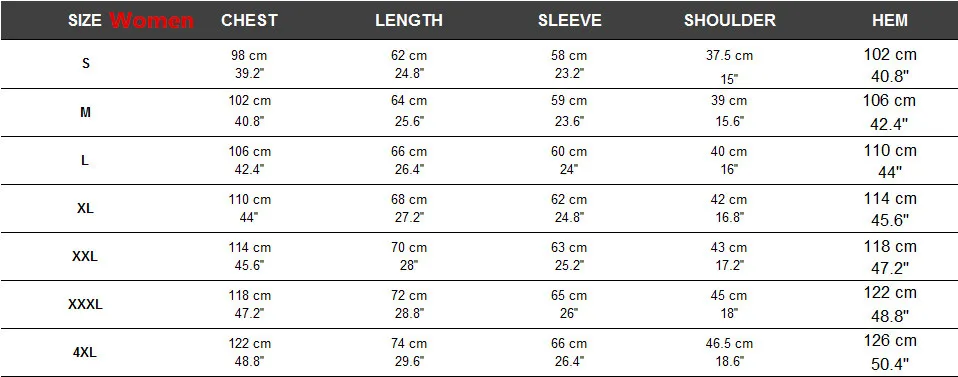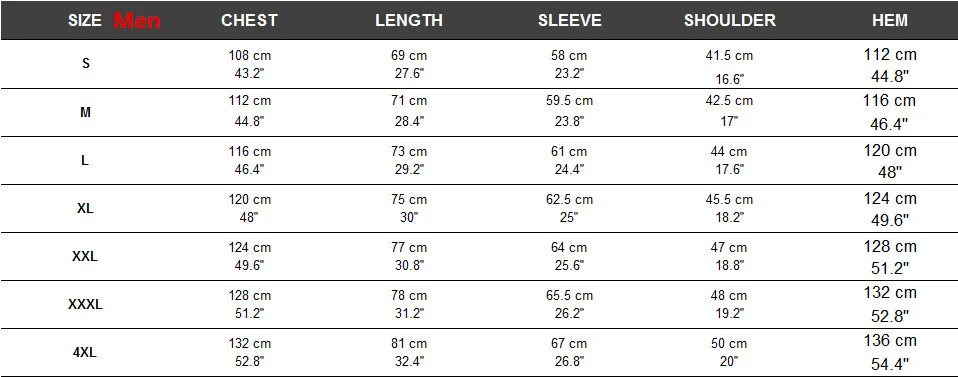 (There are 1-3cm margin of error, If you are not sure the size, Please send the information of your Height, Weight and Chest to me, I will help you choose the correct size. )