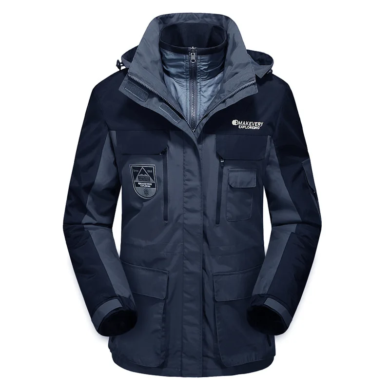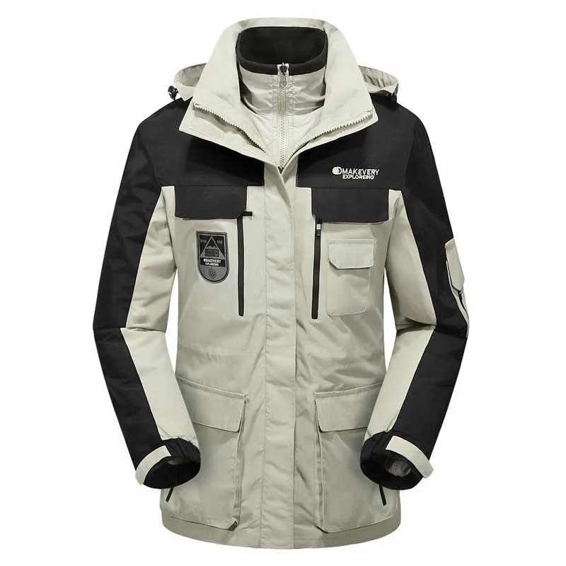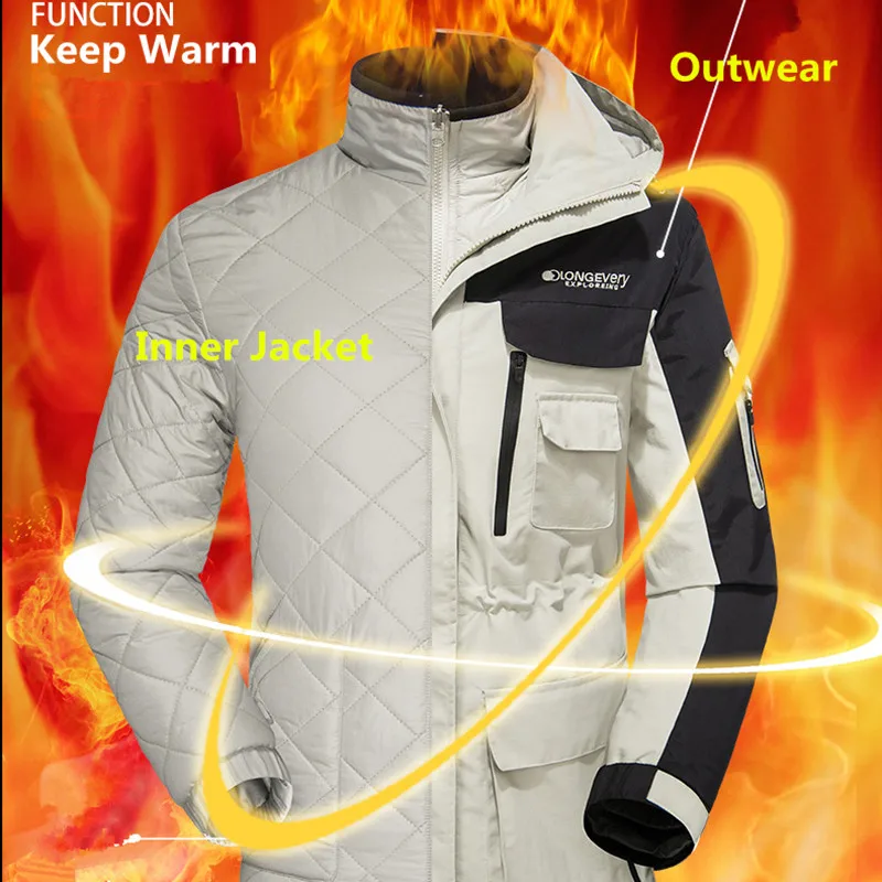 Men’s Jacket Winter Waterproof Men’s Hiking Jacket Warm Coat 2 in 1 Skiing Clothes Men’s Thick Hooded Parkas Men’s Plus Velvet