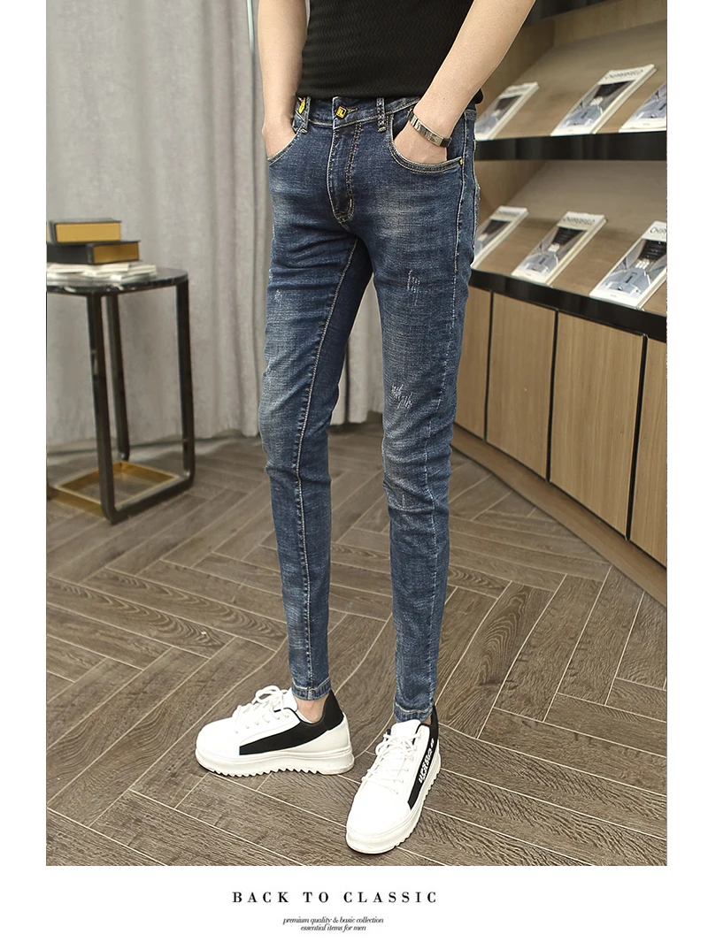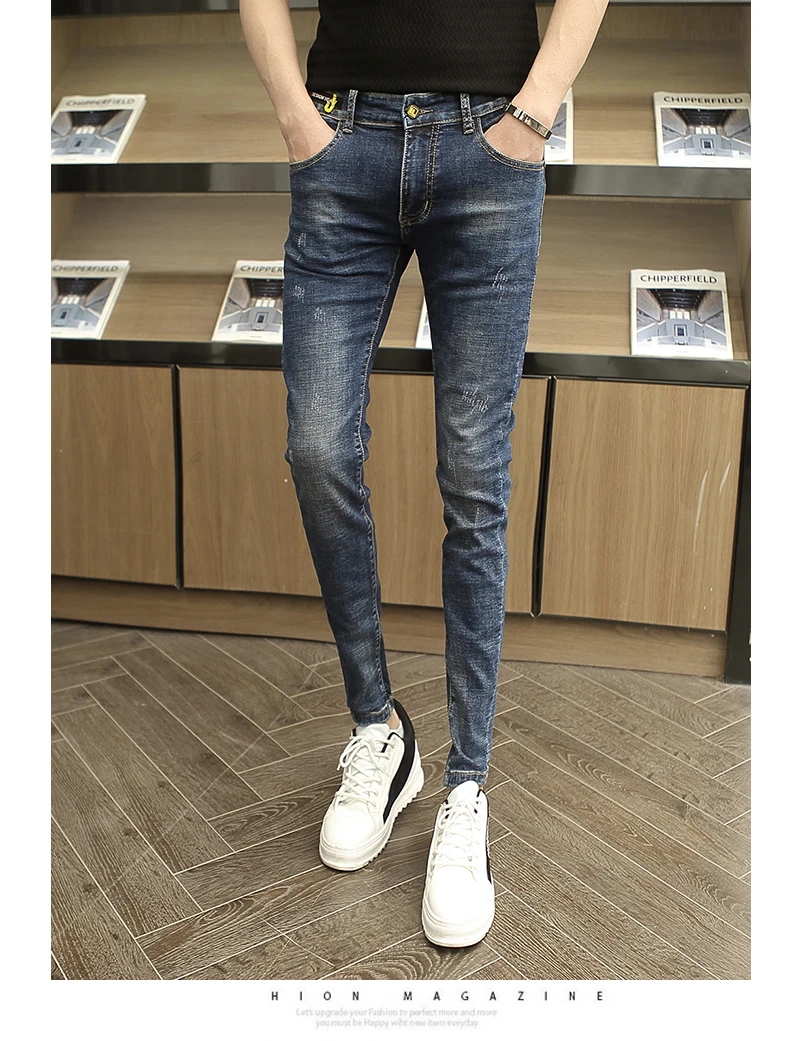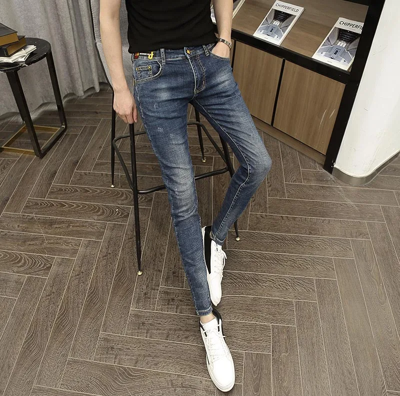 Men’s Jeans 2020 Fashion Trend Korean Stretch Youth Slim Street Teenagers Pencil Feet Casual Men’s Skinny Jeans Men Long Pants