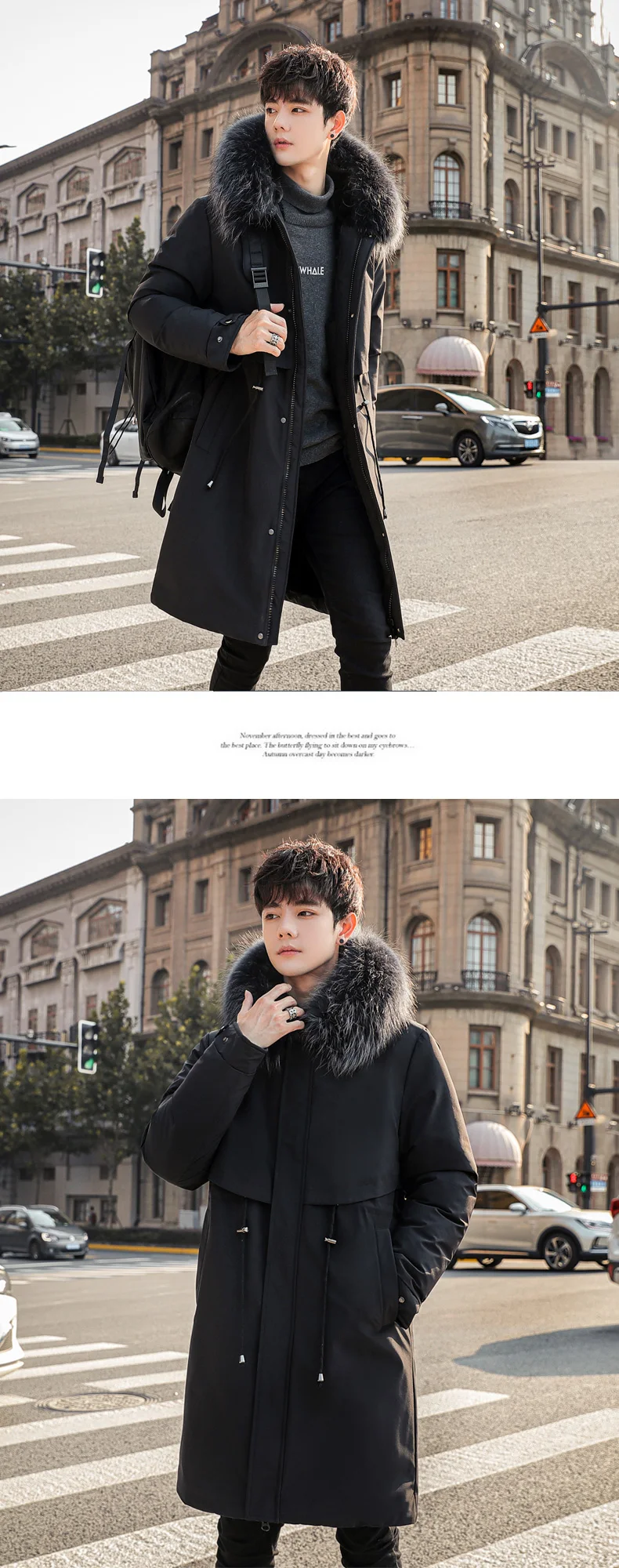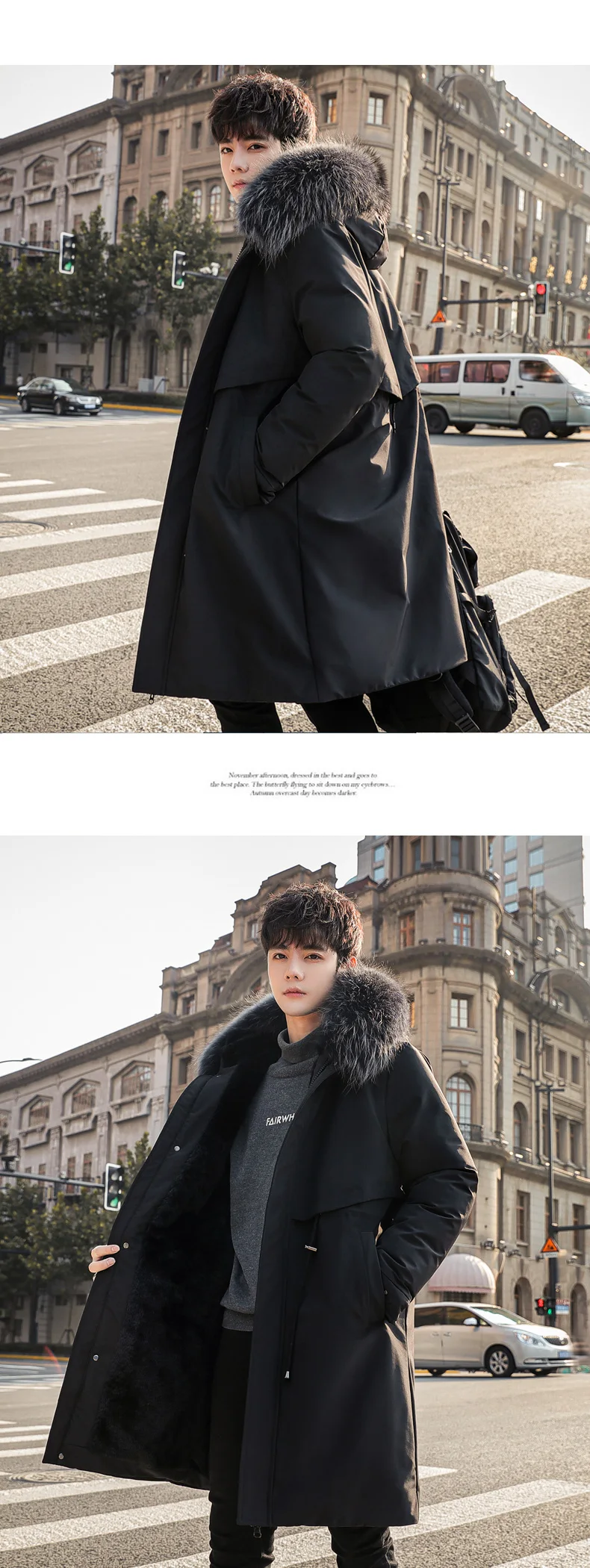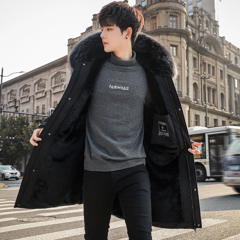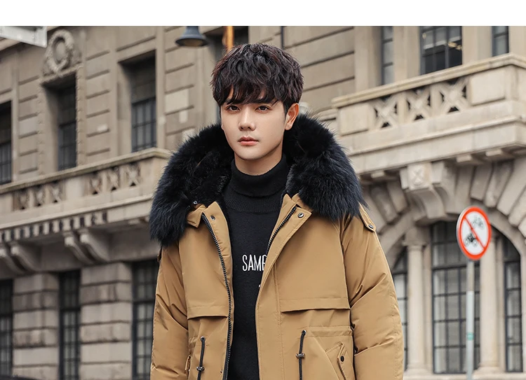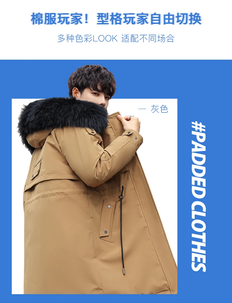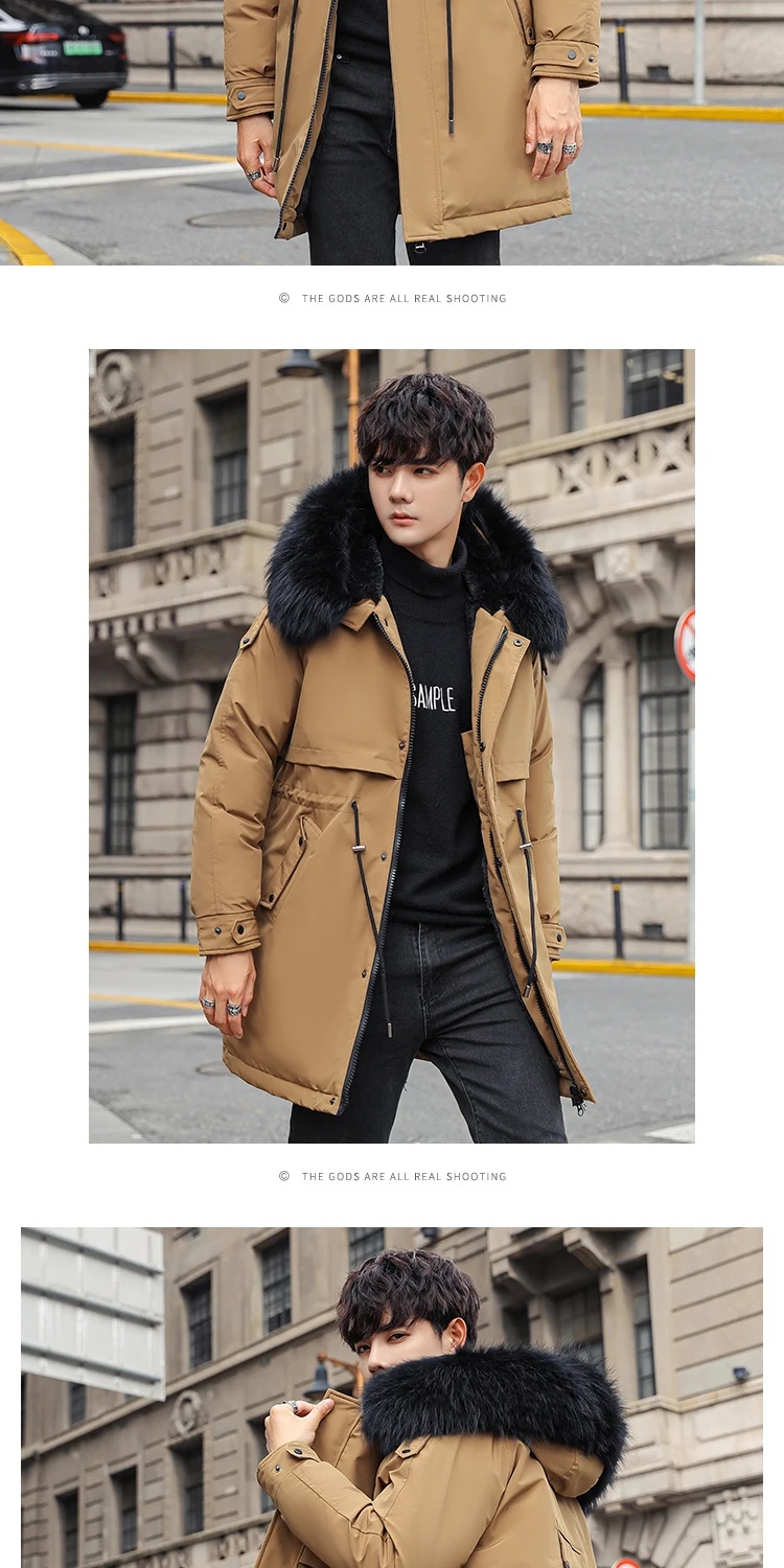 Mens Large Hooded Jackets Big Fur Collar Loose Khaki Parkas Jackets Tunic Winter Long Padded Coats Black Overcoat Trench Coats