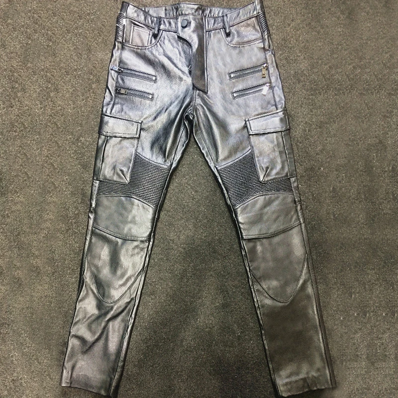 Men’s Leather Pant Biker Pants Motorcycle Slim Leather Skinny Rock Pants Tight Gothic Leather Pants For Men TJ010