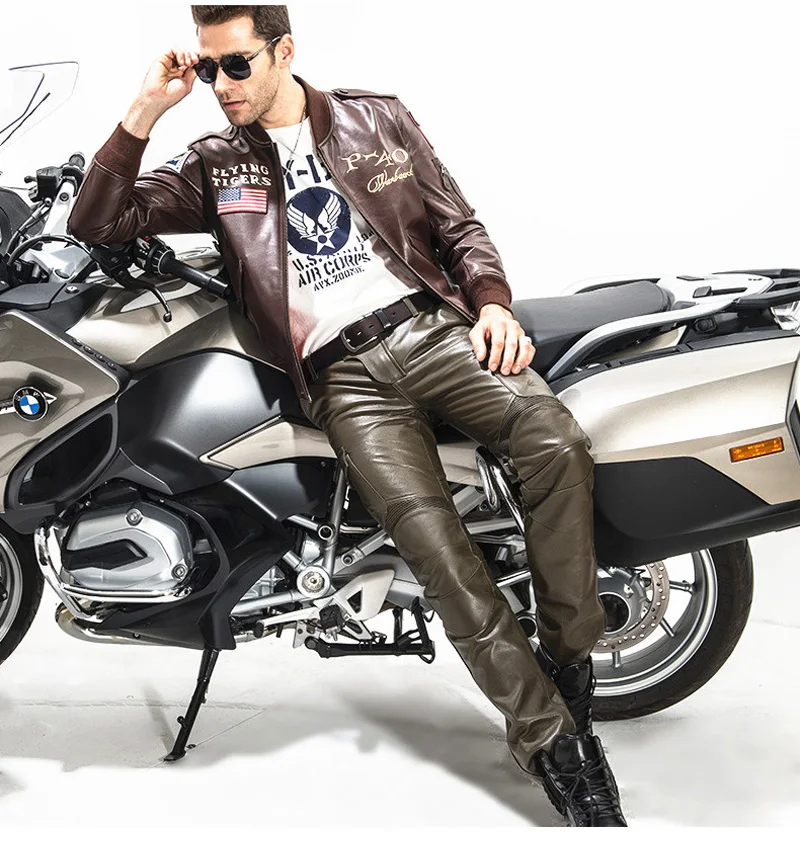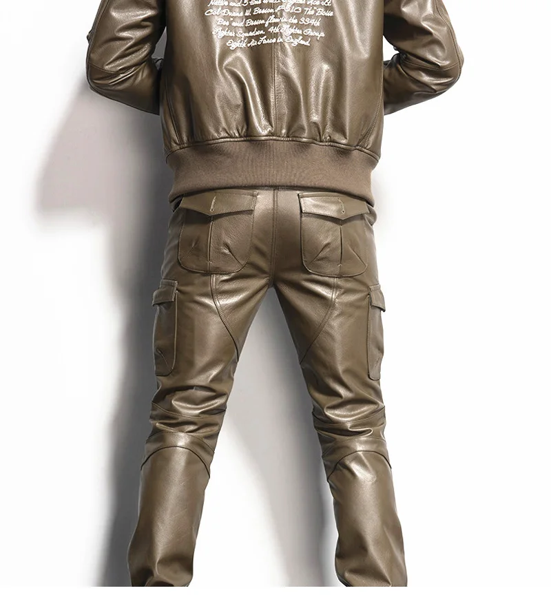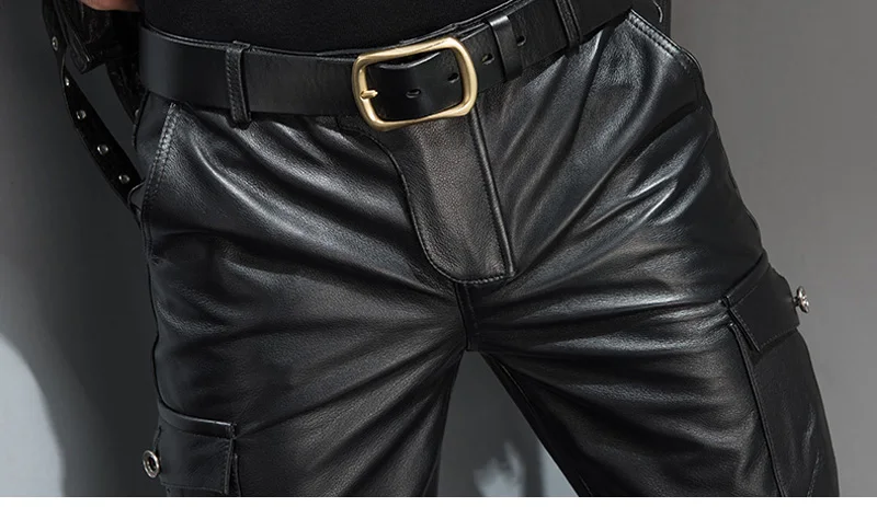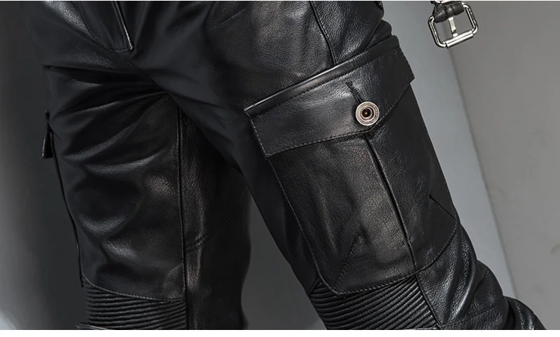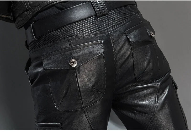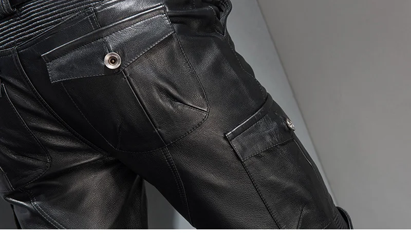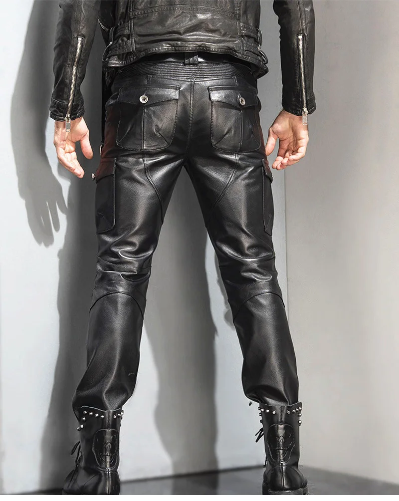 Men’s Leather Pant Slim Leather Skinny Biker Pants Motorcycle Punk Rock Pants Slick Smooth Shiny Pencil Pants TJ07