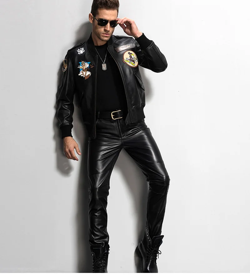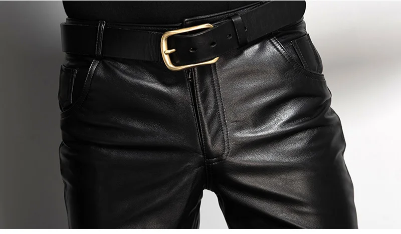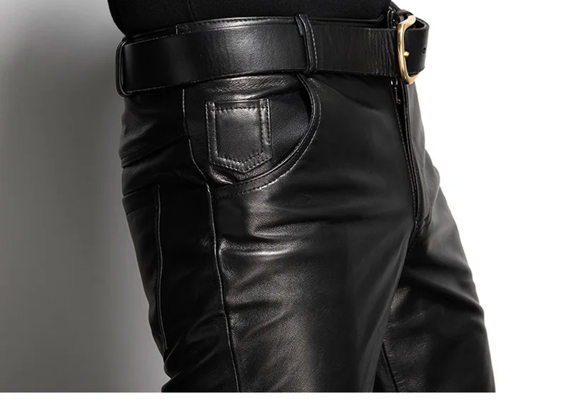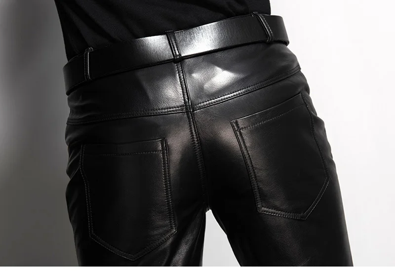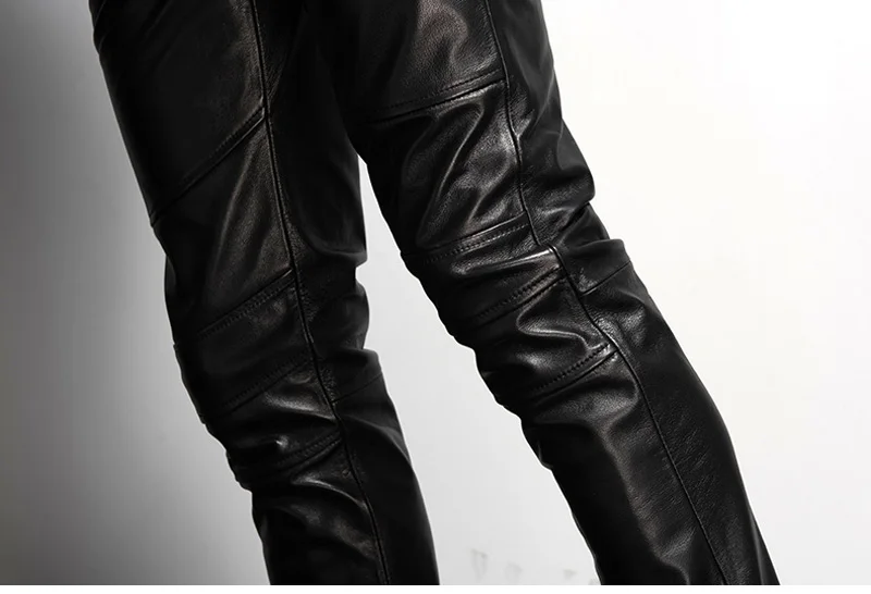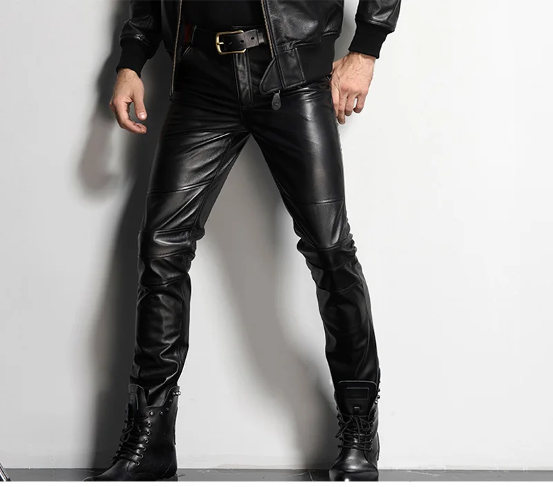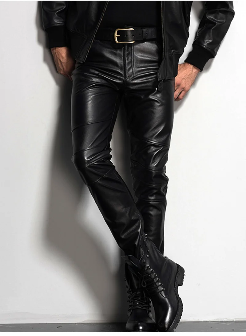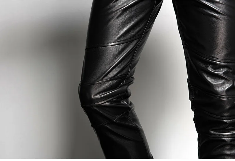 Men’s Leather Pant Slim Leather Skinny Biker Pants Motorcycle Punk Rock Pants Tight Leather Pant Simple soft TJ09
