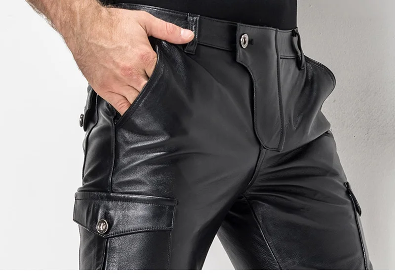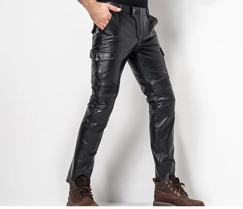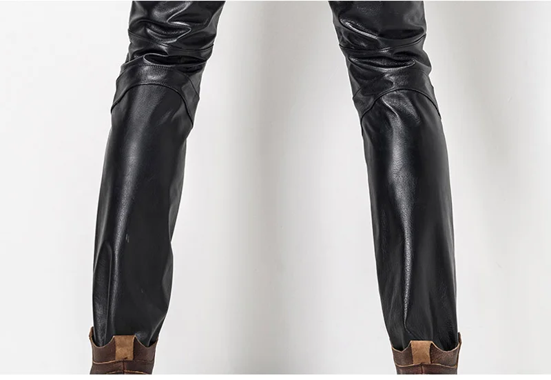 Men’s Leather Pant Slim Skinny Motorcycle Biker Trousers Punk Rock Tight Gothic Tj04