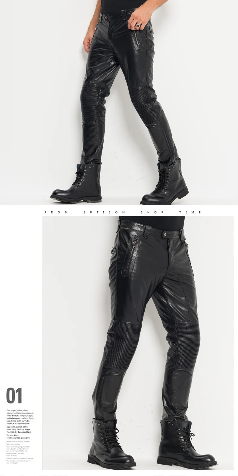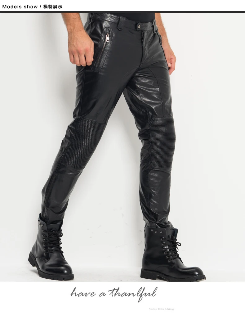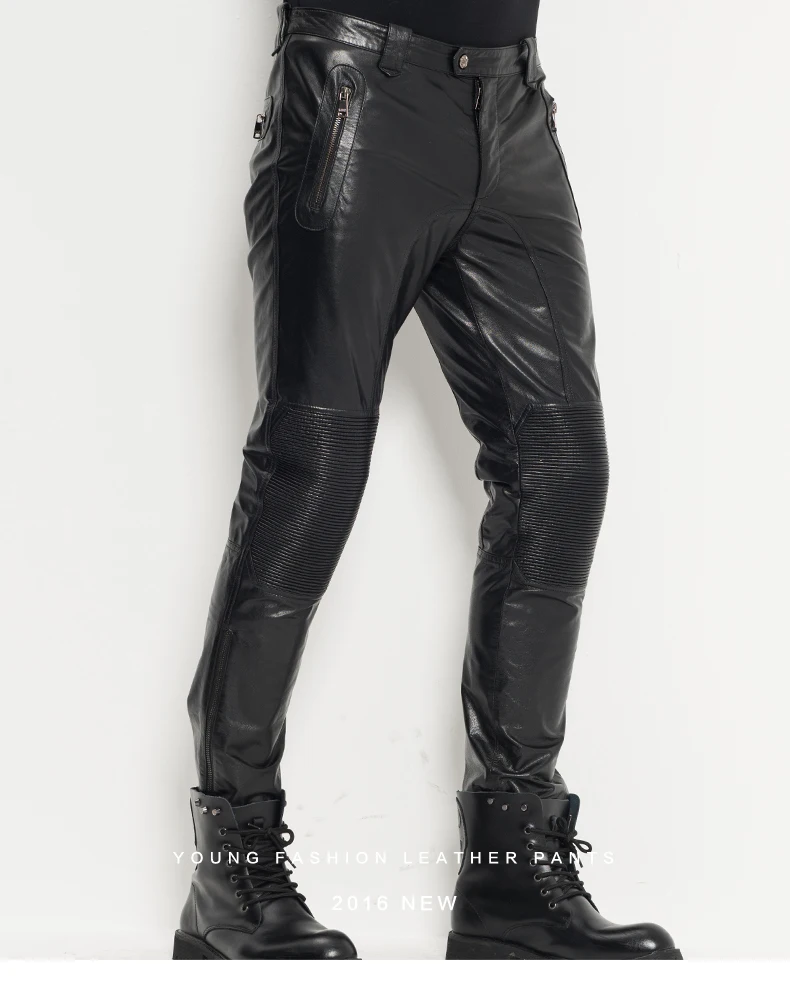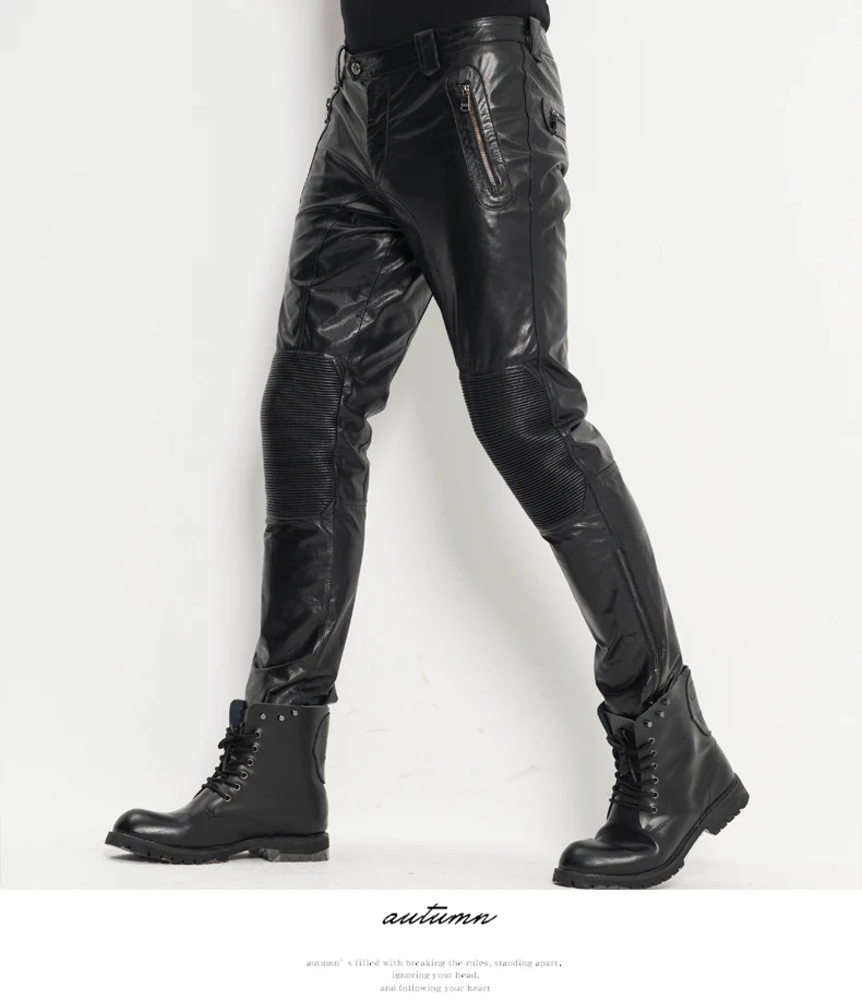 Men’s Leather Pants Moto&Biker Punk Rock Pants Nightclub Slim Sheepskin Leather Trousers WZS005
