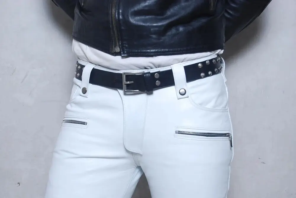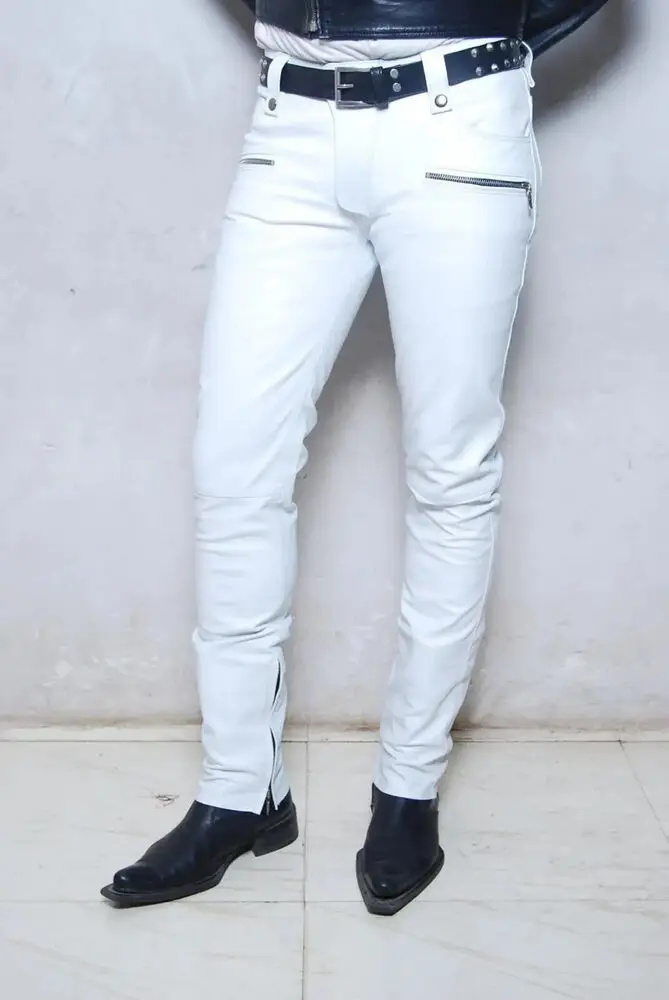 Mens Leather Real Jeans Style White Pant Handmade Soft Lambskin Trousers