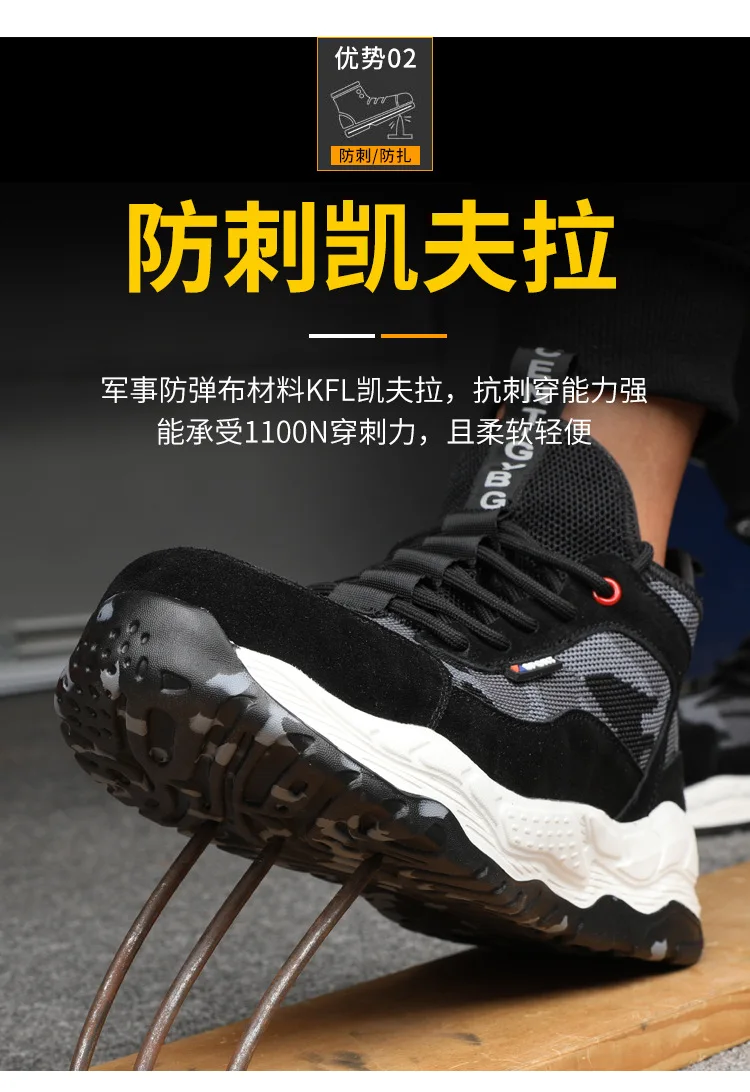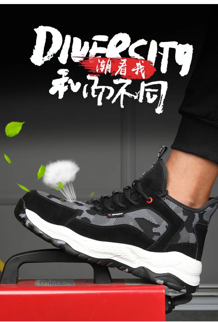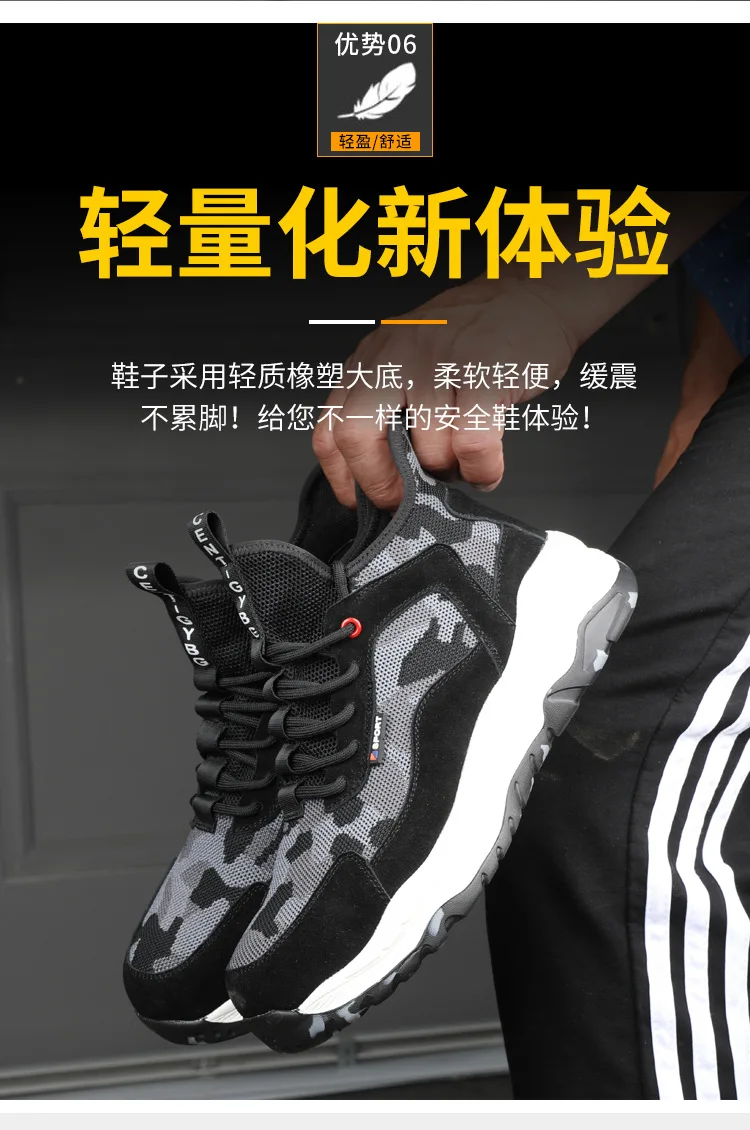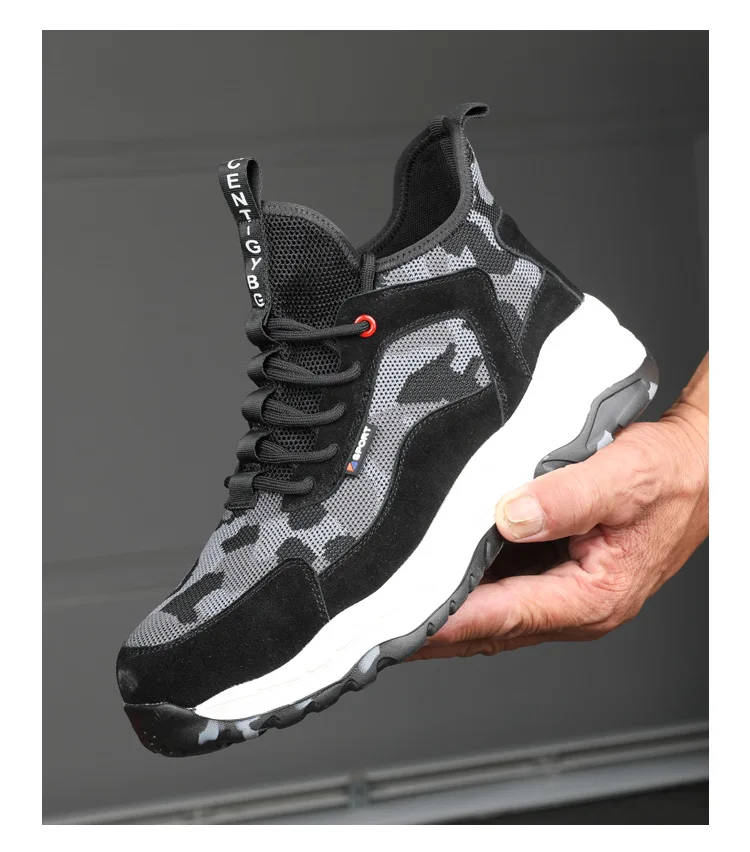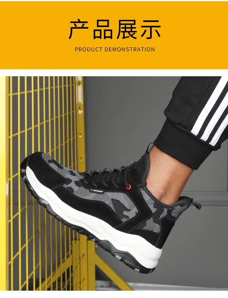 Men’s Lightweight Safety Shoes Mesh Breathable Anti-piercing Work Shoes Sports Shoes Steel Toe Shoes Indestructible Safety Shoes