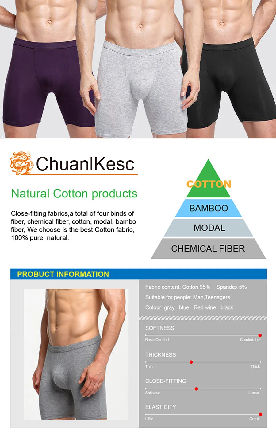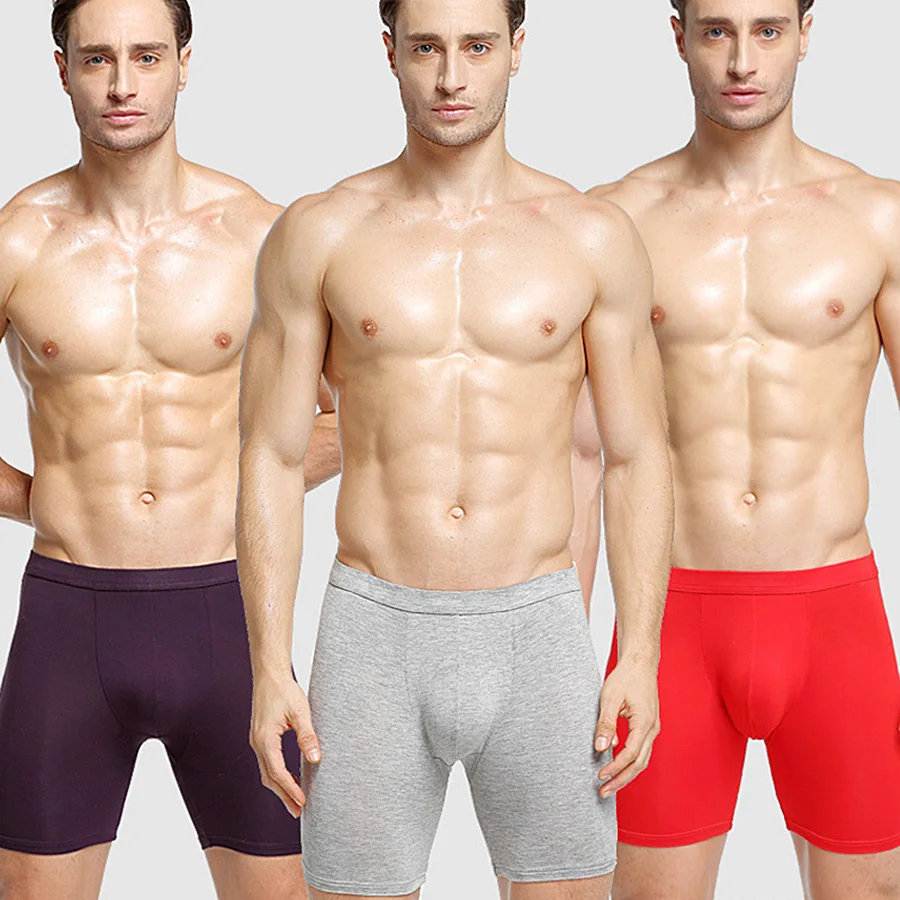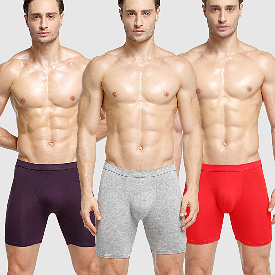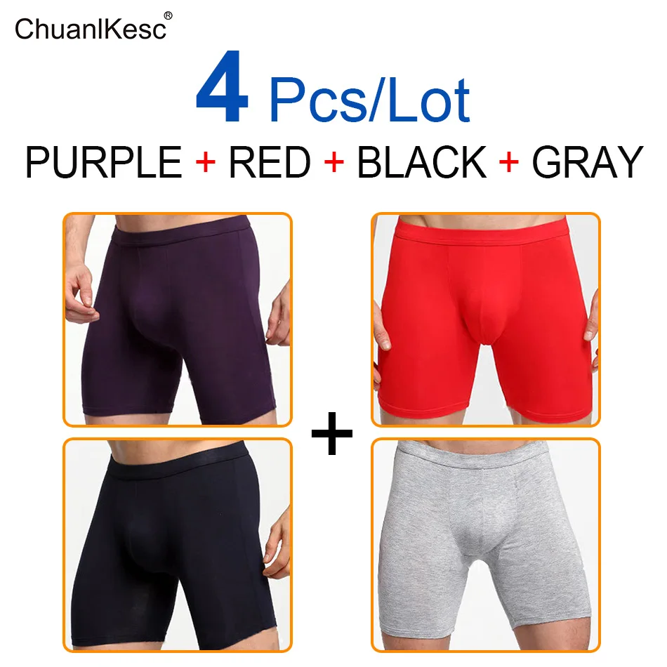 Men’s Long Boxer Pants Large Anti Wear Leg Sports Underpants Running Fitness Youth Soft Cotton Shorts Hot 2020 4 pcs/Lot