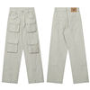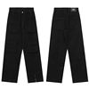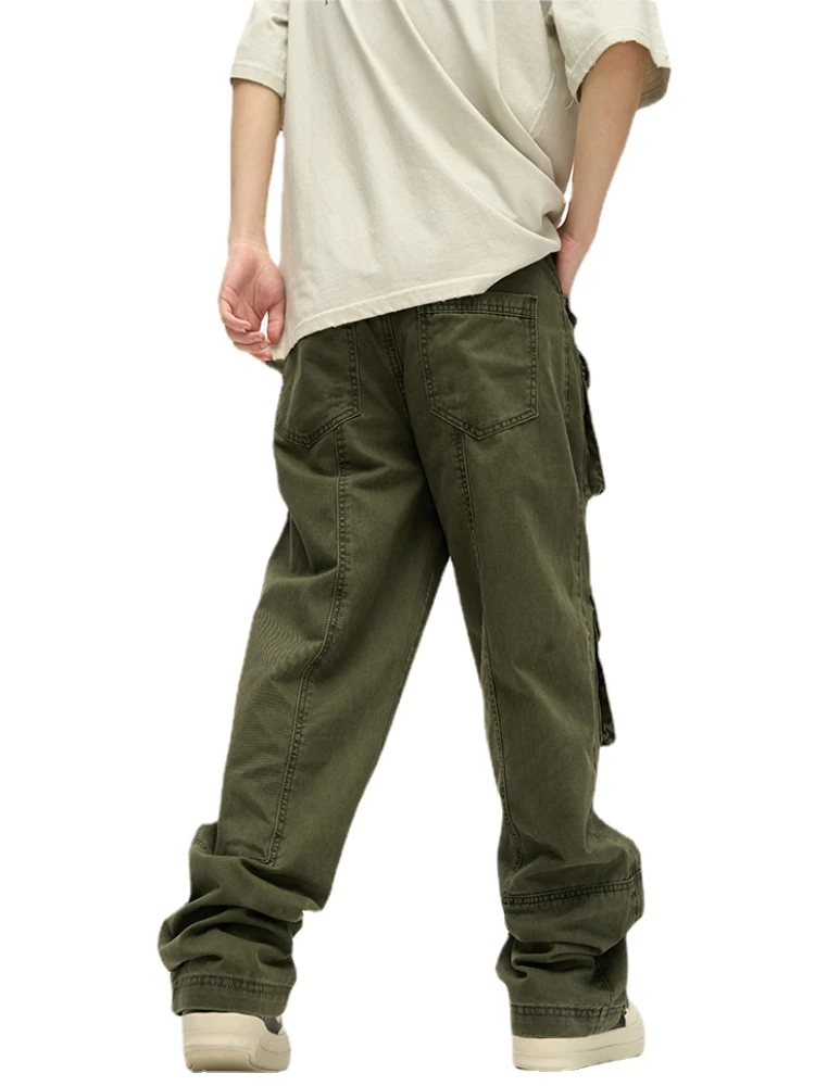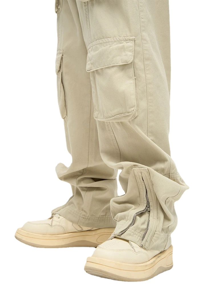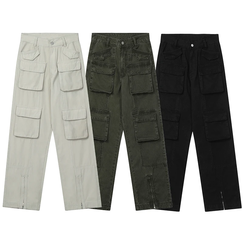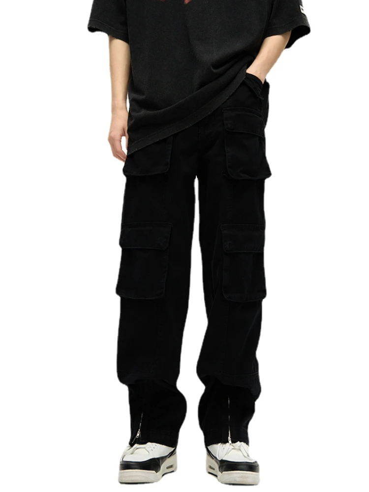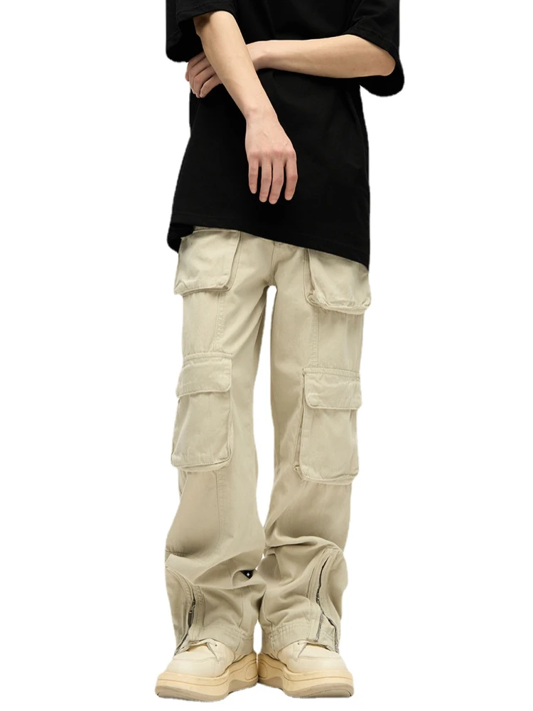 Mens Loose Streetwear Cargo Straight Pants High Street Casual Bottom Zipper Multi-pocket Trousers Hip Hop Safari Style Joggers