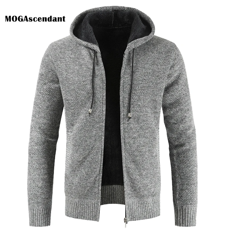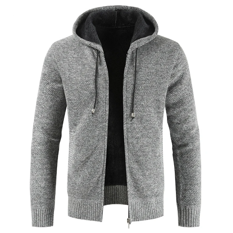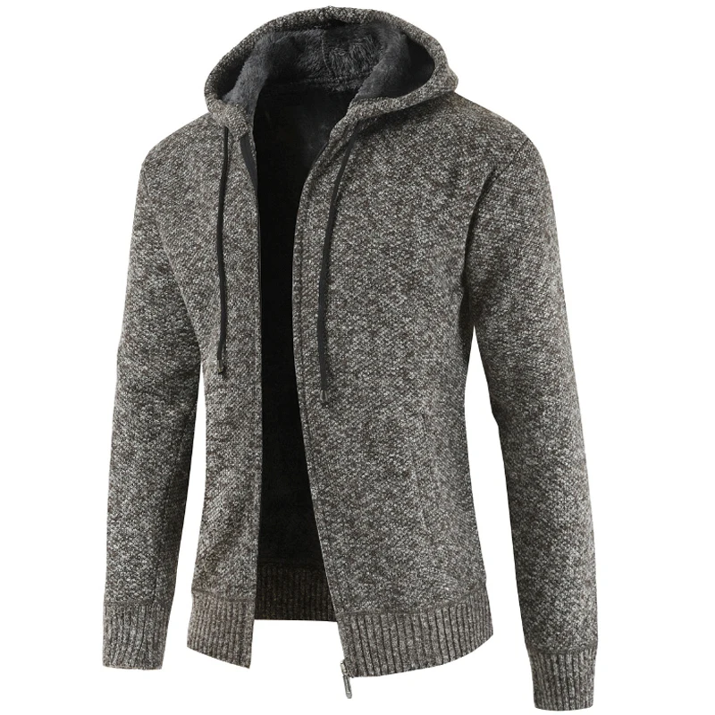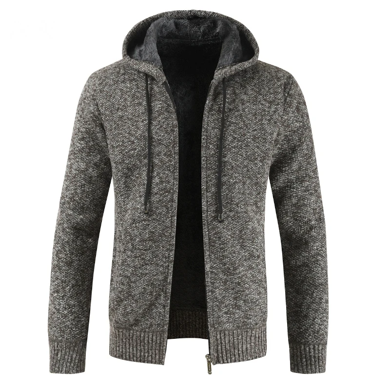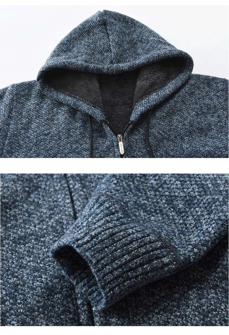 Men’s Outwear Winter Jackets Cardigan Casual Patchwork Hooded Zipper Sweatercoats Male Fashion Thick Wool Liner Jacket