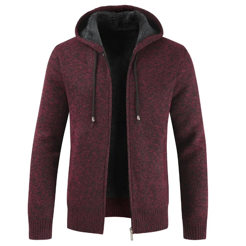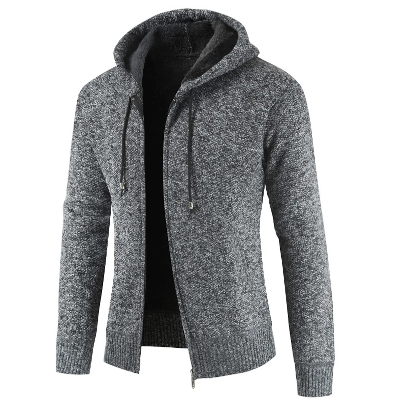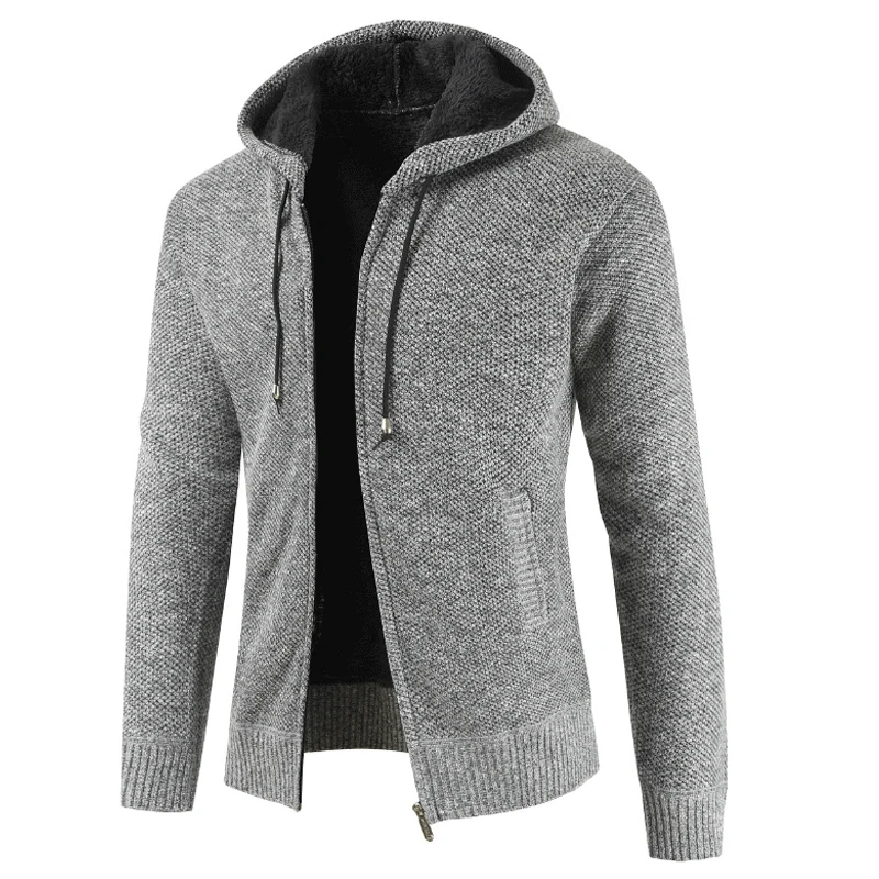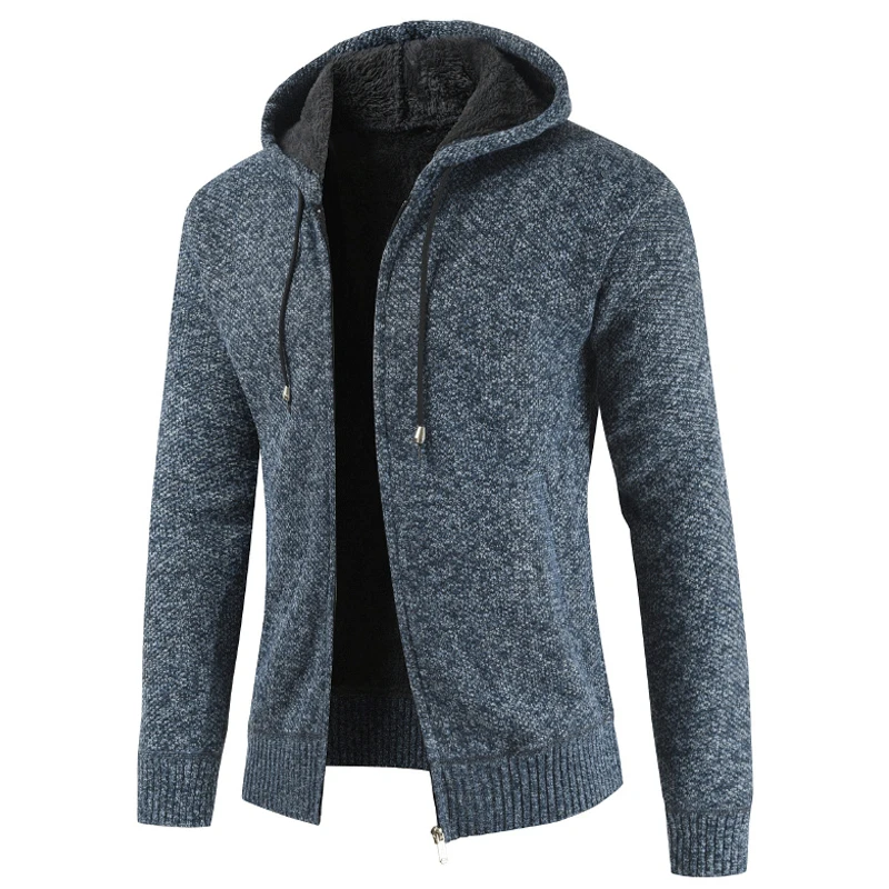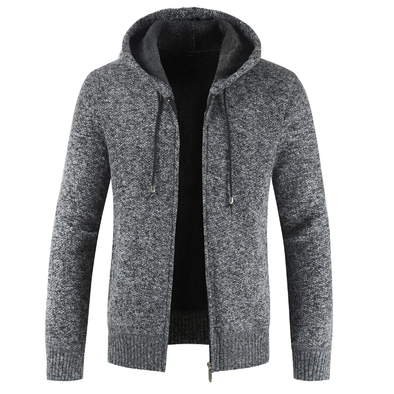 Men’s Outwear Winter Jackets Cardigan Casual Patchwork Hooded Zipper Sweatercoats Male Fashion Thick Wool Liner Jacket