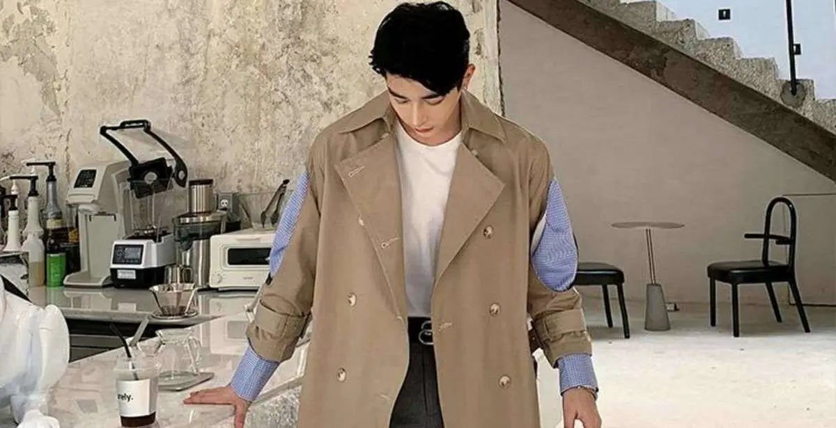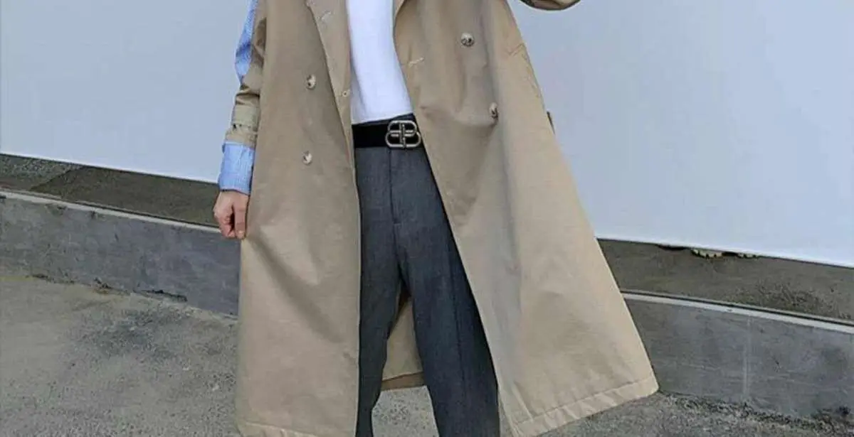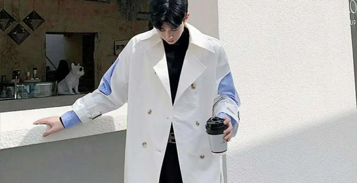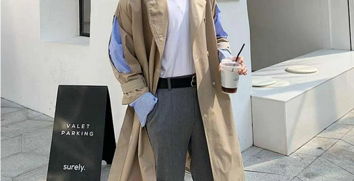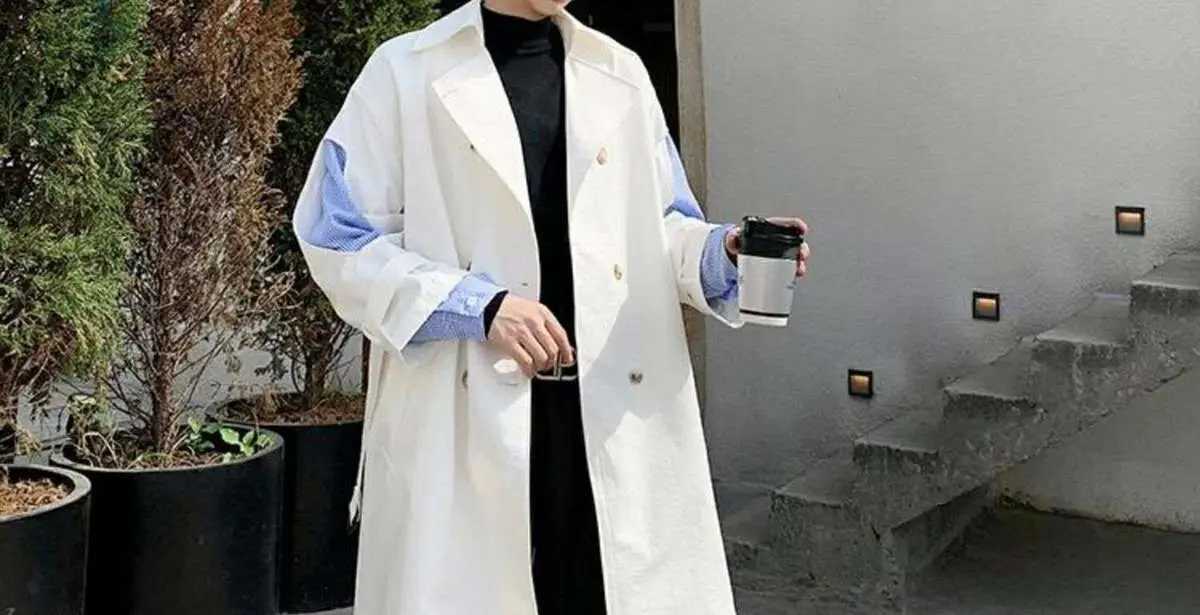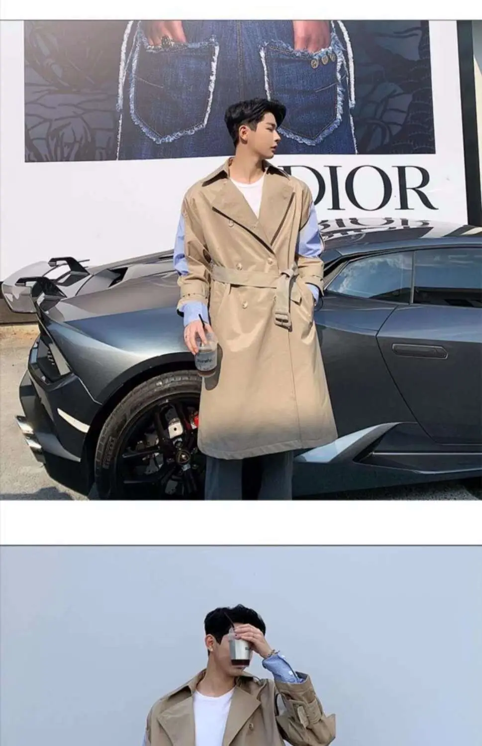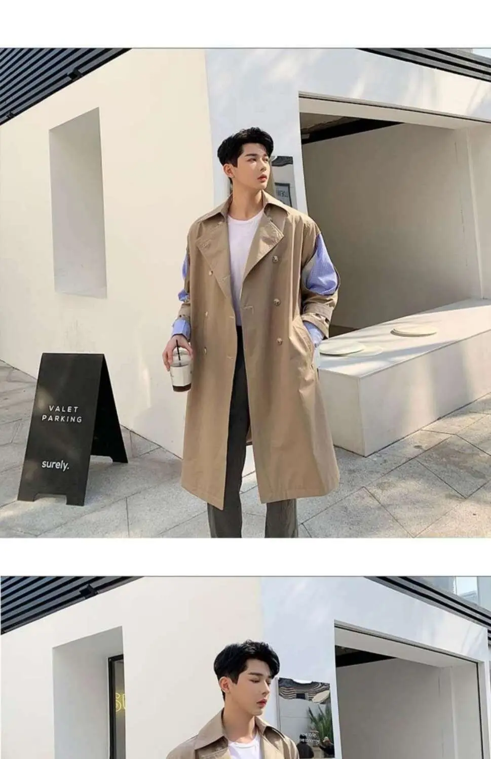 Men’s Patchwork Fake Two Pieces Trench Coat Autumn New Trendy Windbreaker For Male Vintage Fashion Korean Long Coat
