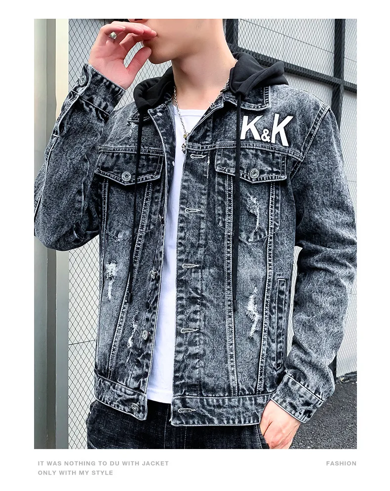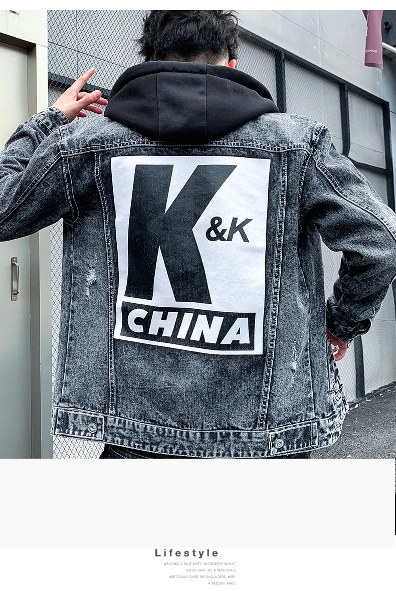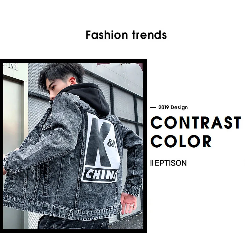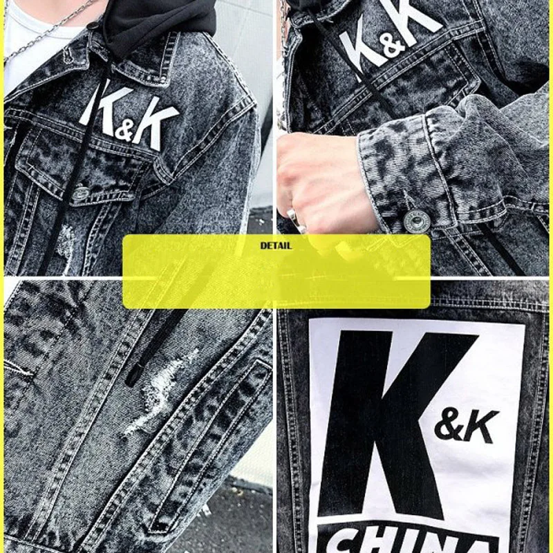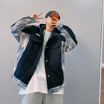 Men’s Personality Casual Jacket 2021 Autumn Winter Printed Korean Denim Tide Brand Autumn Sweater Thicken Denim Jacket
